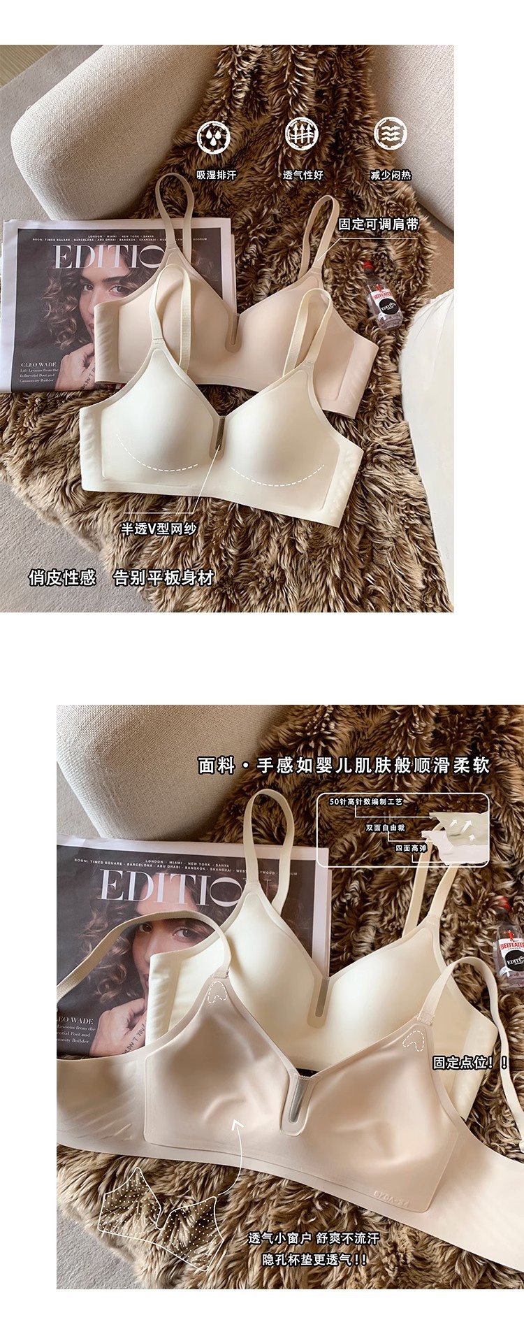 정품 여름 속옷 얇은 여성 고정 컵은 강철 반지가없는 컵 원활한 젤리 스트립 원피스 얇은 브래지어를 실행하지 않습니다.