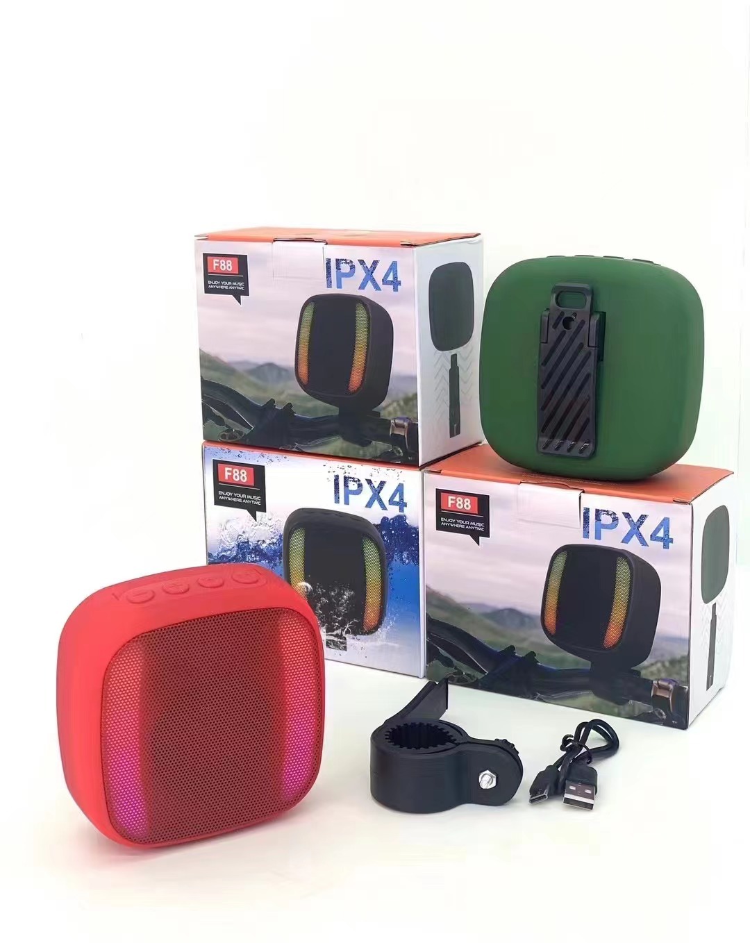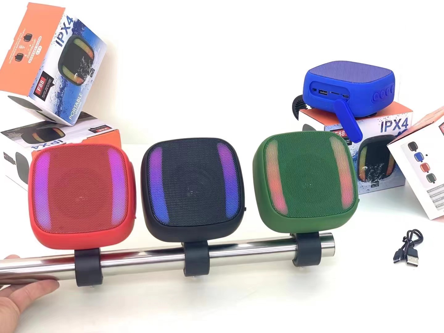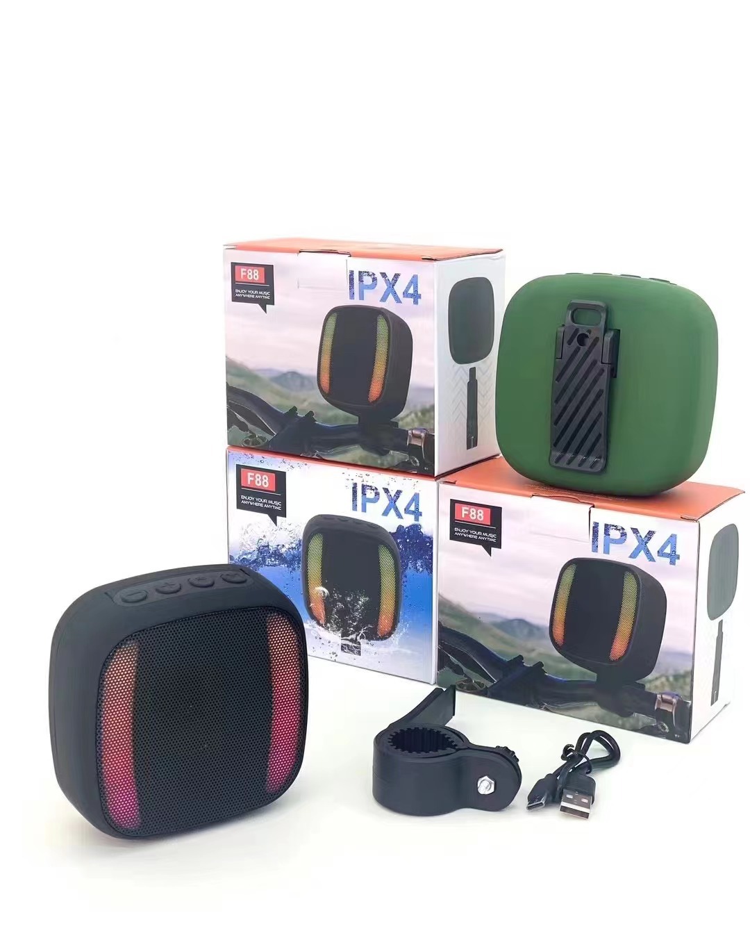 새로운 야외 승마 블루투스 스피커 RGB 깜박이는 빛 IPX4 방수 TWS 카드 오디오 자전거 오토바이