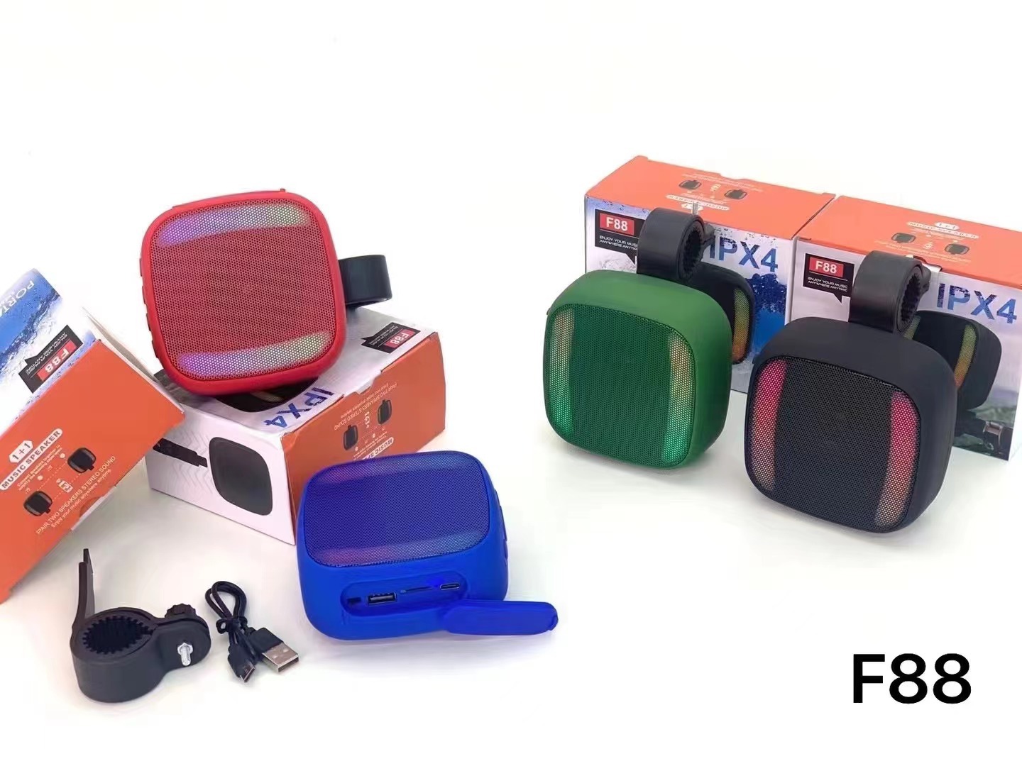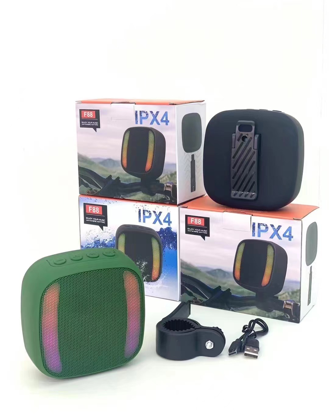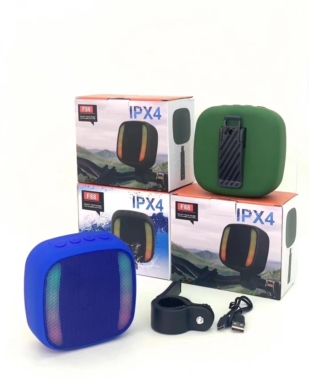 새로운 야외 승마 블루투스 스피커 RGB 깜박이는 빛 IPX4 방수 TWS 카드 오디오 자전거 오토바이