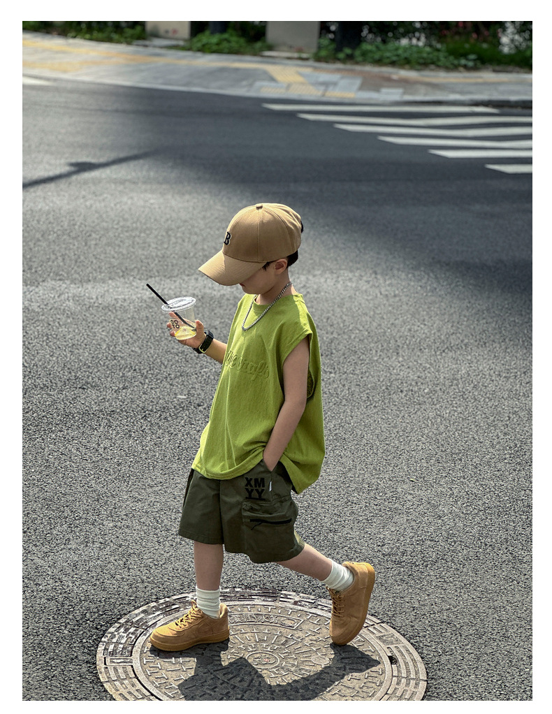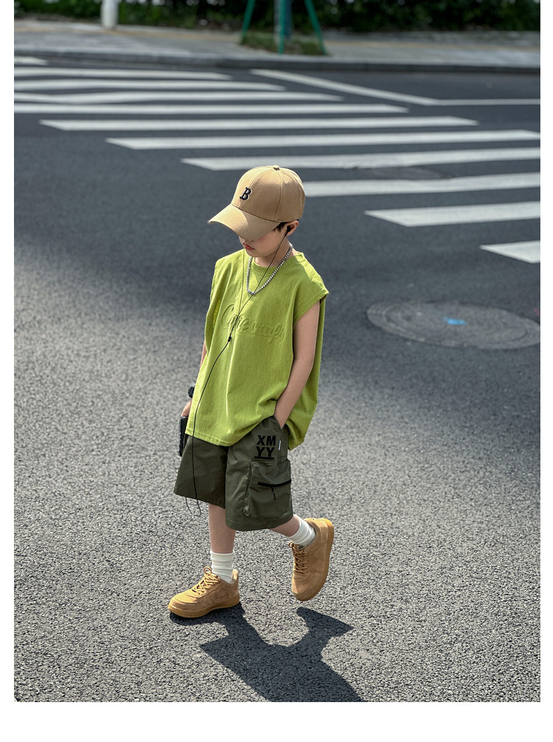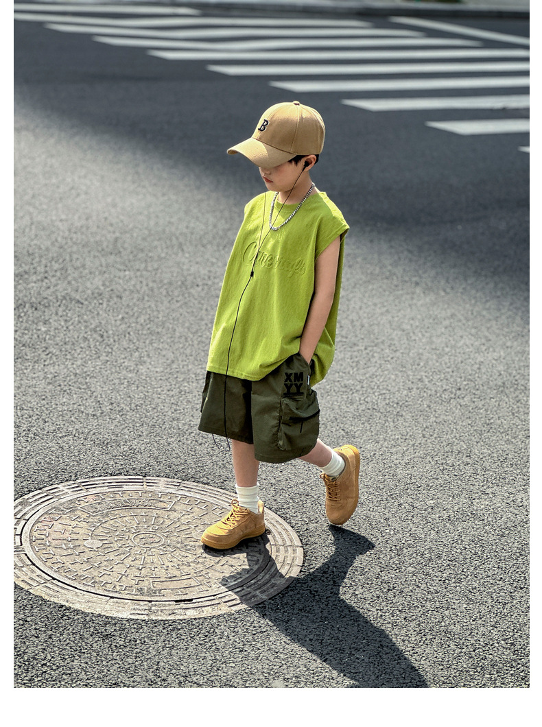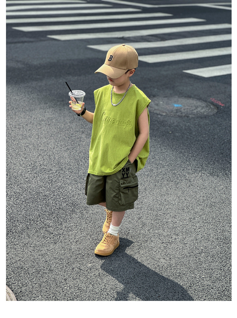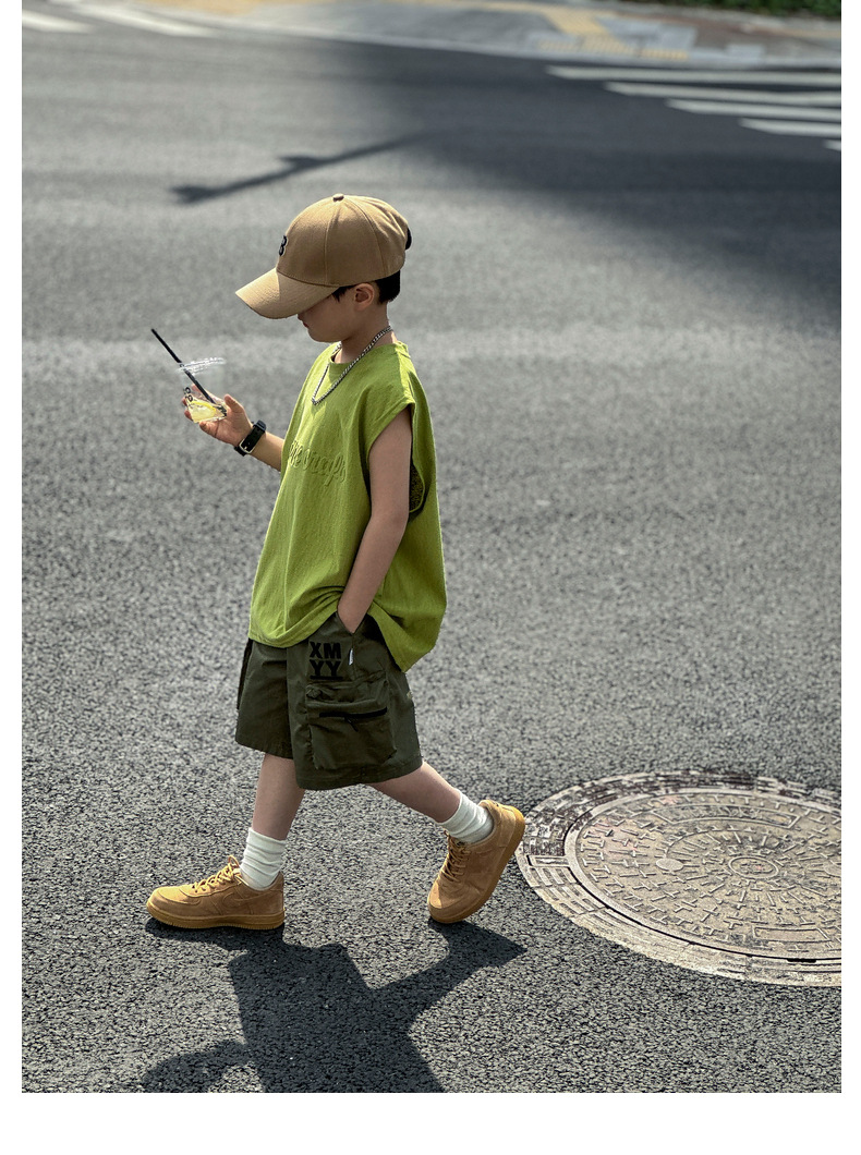 남아 여름옷 신상 2025 중대형 아동 민소매 투피스 세트 트렌디 브랜드 남자아이 아동 루즈핏 조끼 여름스토어 가기