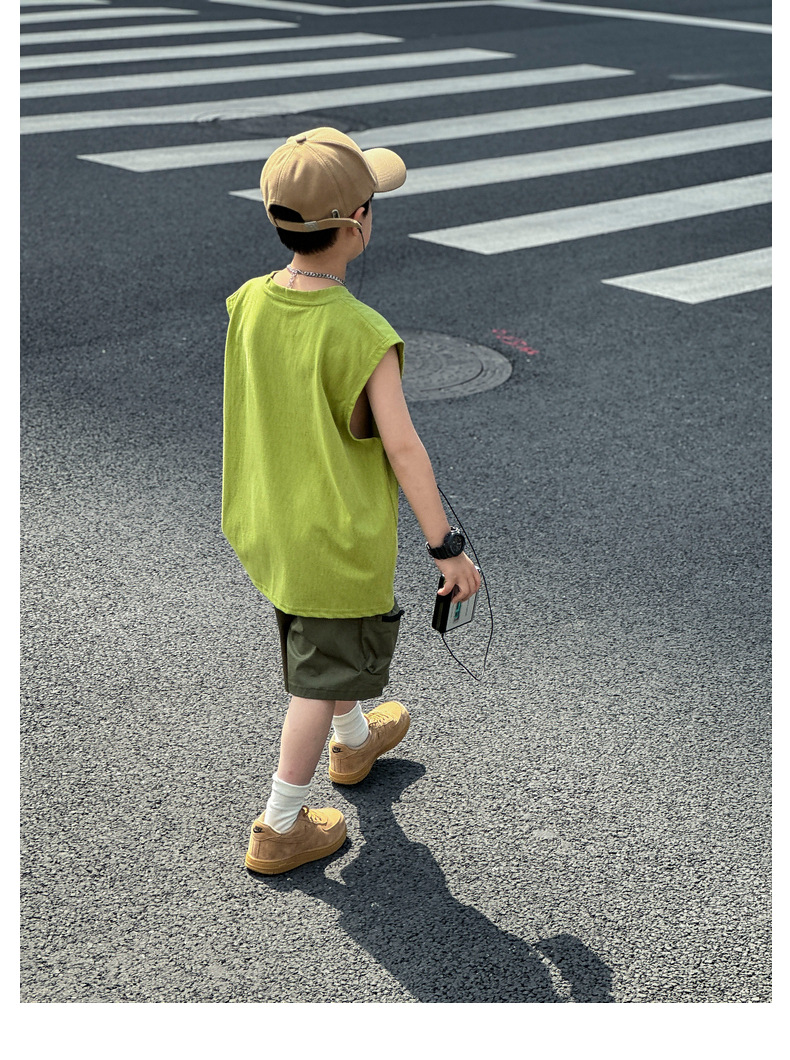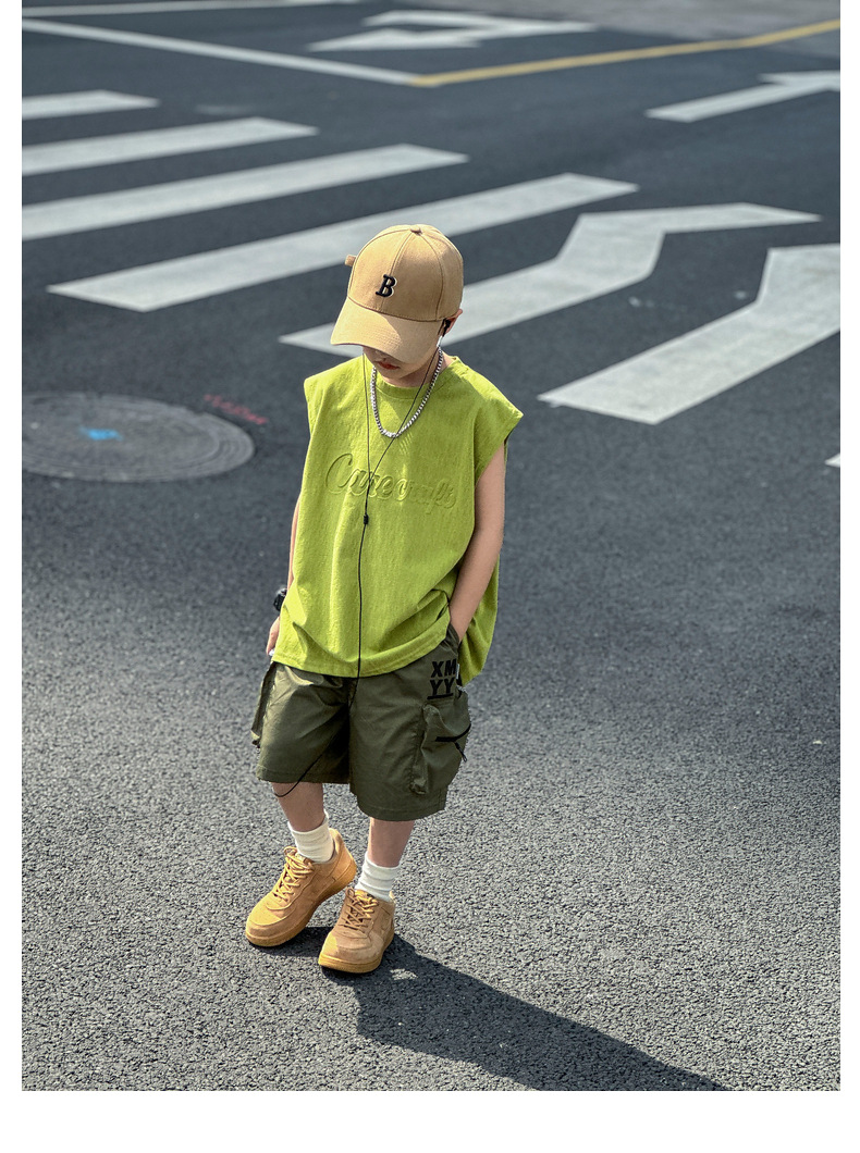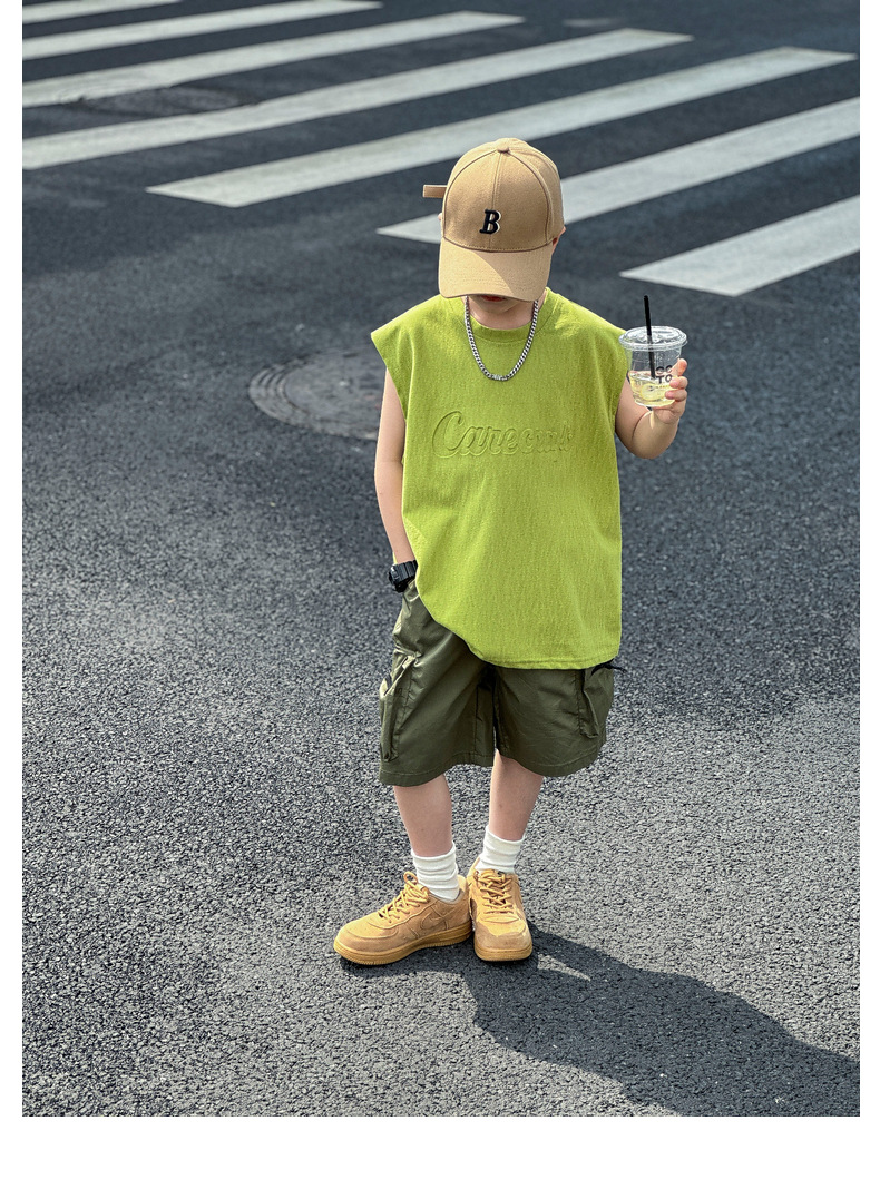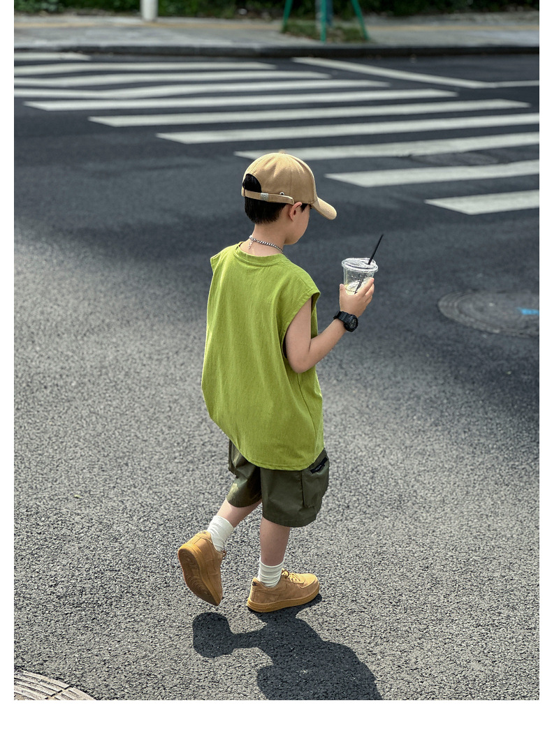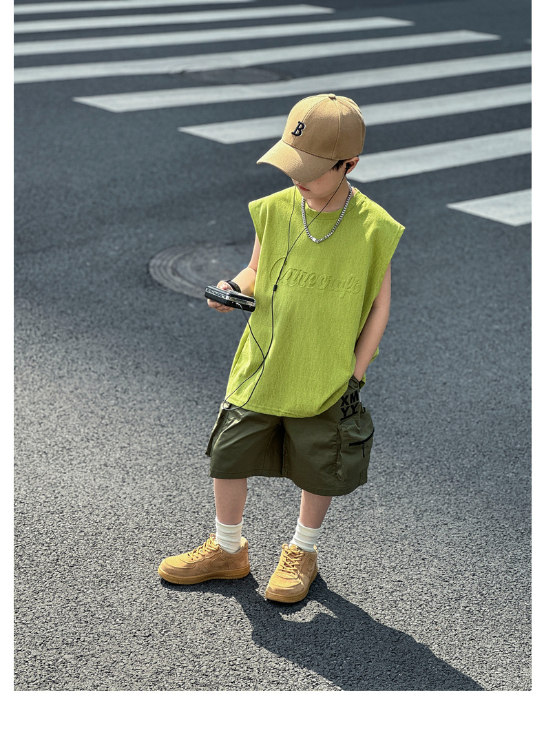 남아 여름옷 신상 2025 중대형 아동 민소매 투피스 세트 트렌디 브랜드 남자아이 아동 루즈핏 조끼 여름스토어 가기