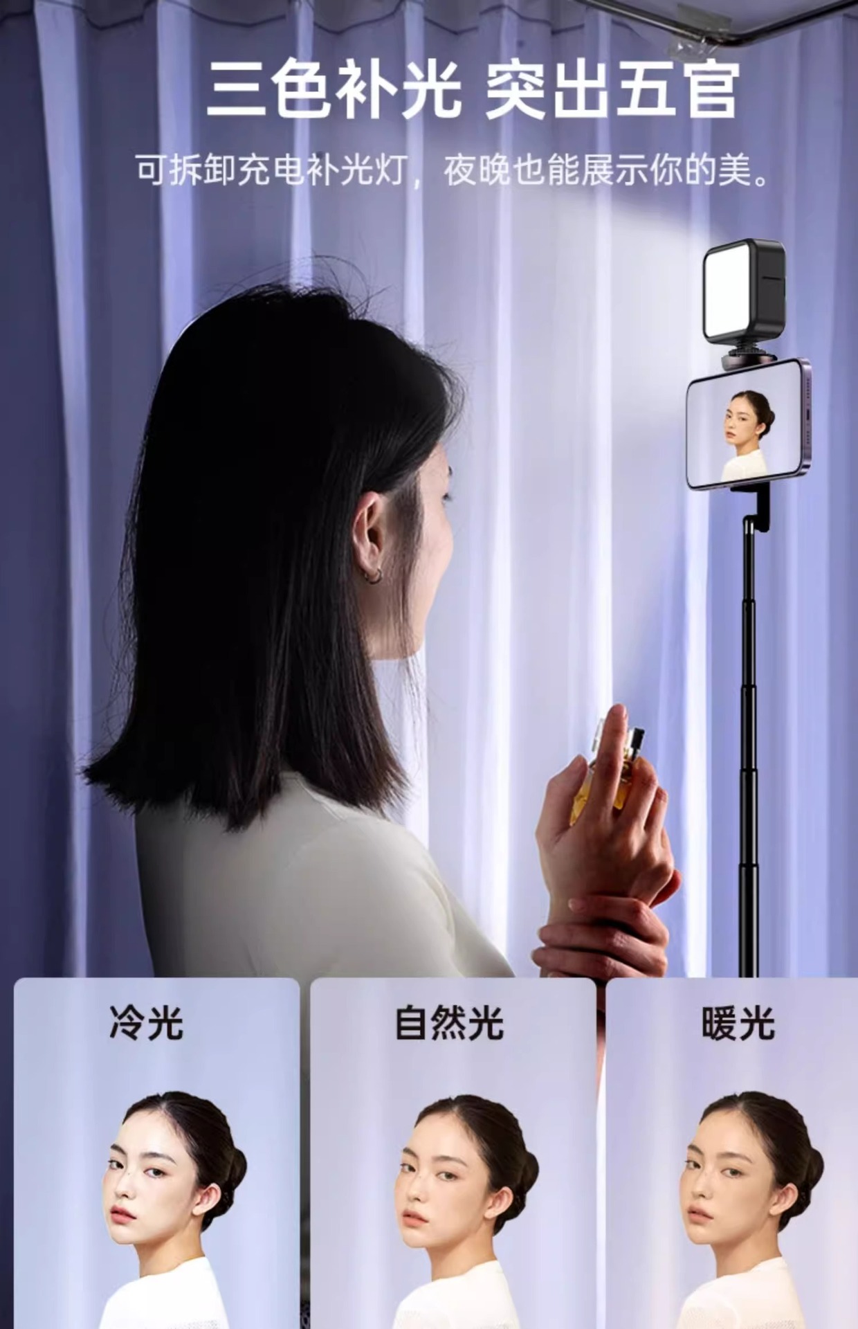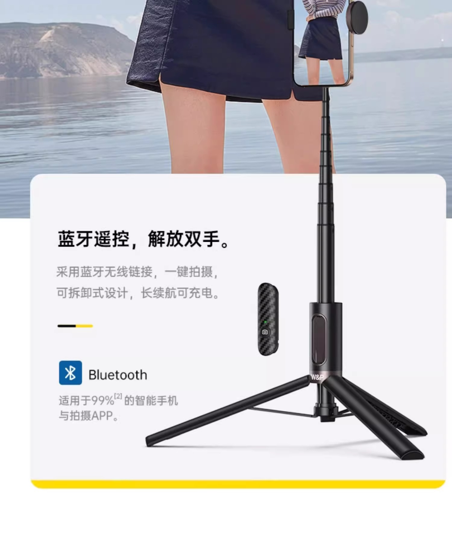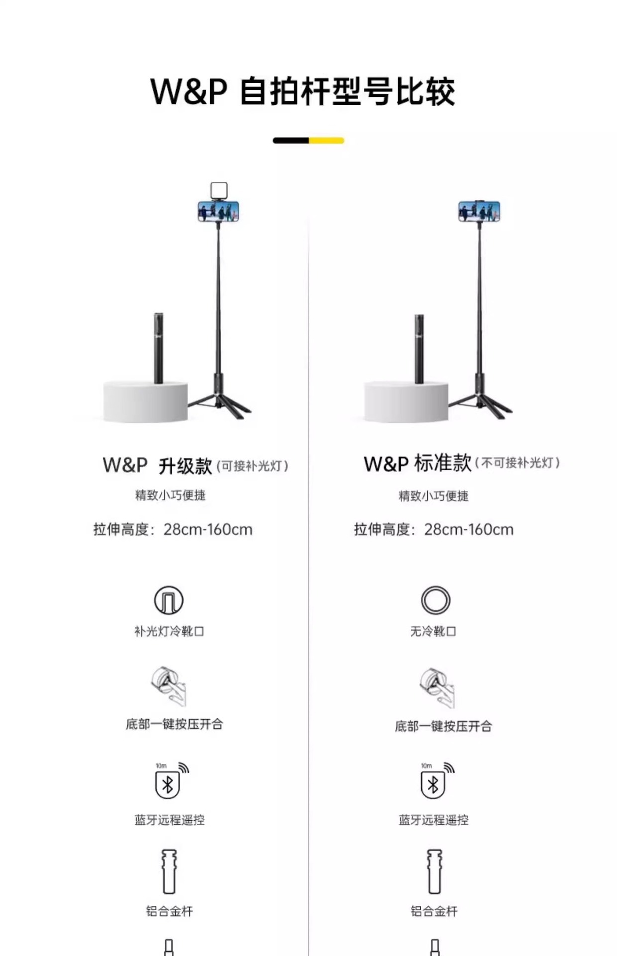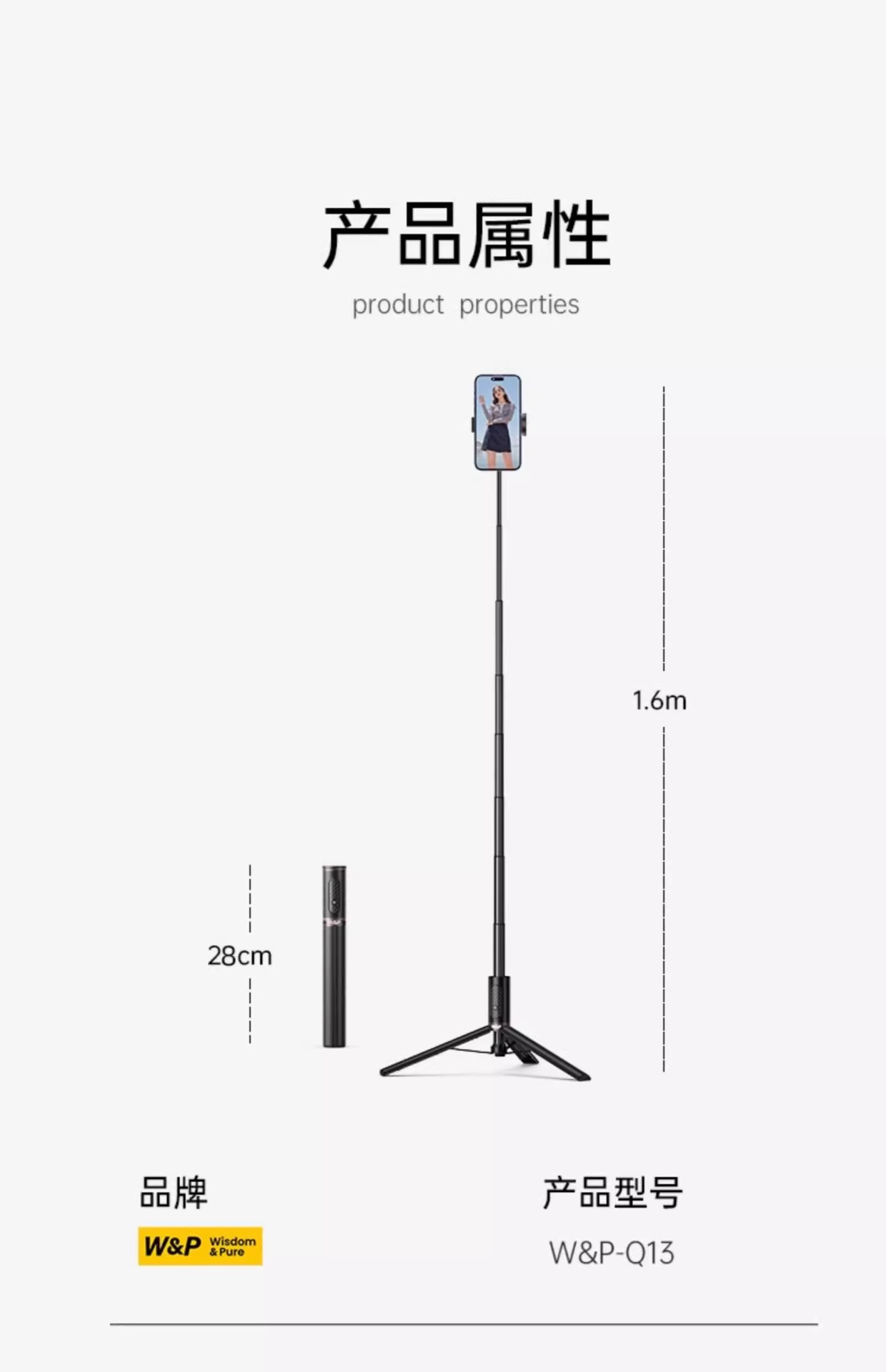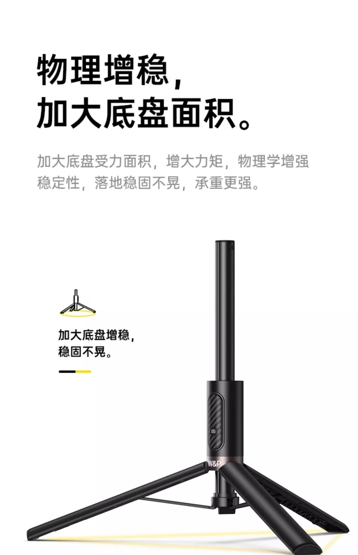 W&P 휴대폰 셀카봉, 플로어 스탠드 삼각대, 조명, 라이브 방송 스탠드, 핸드헬드 사진 촬영 도구, 블루투스 컨트롤 기능
