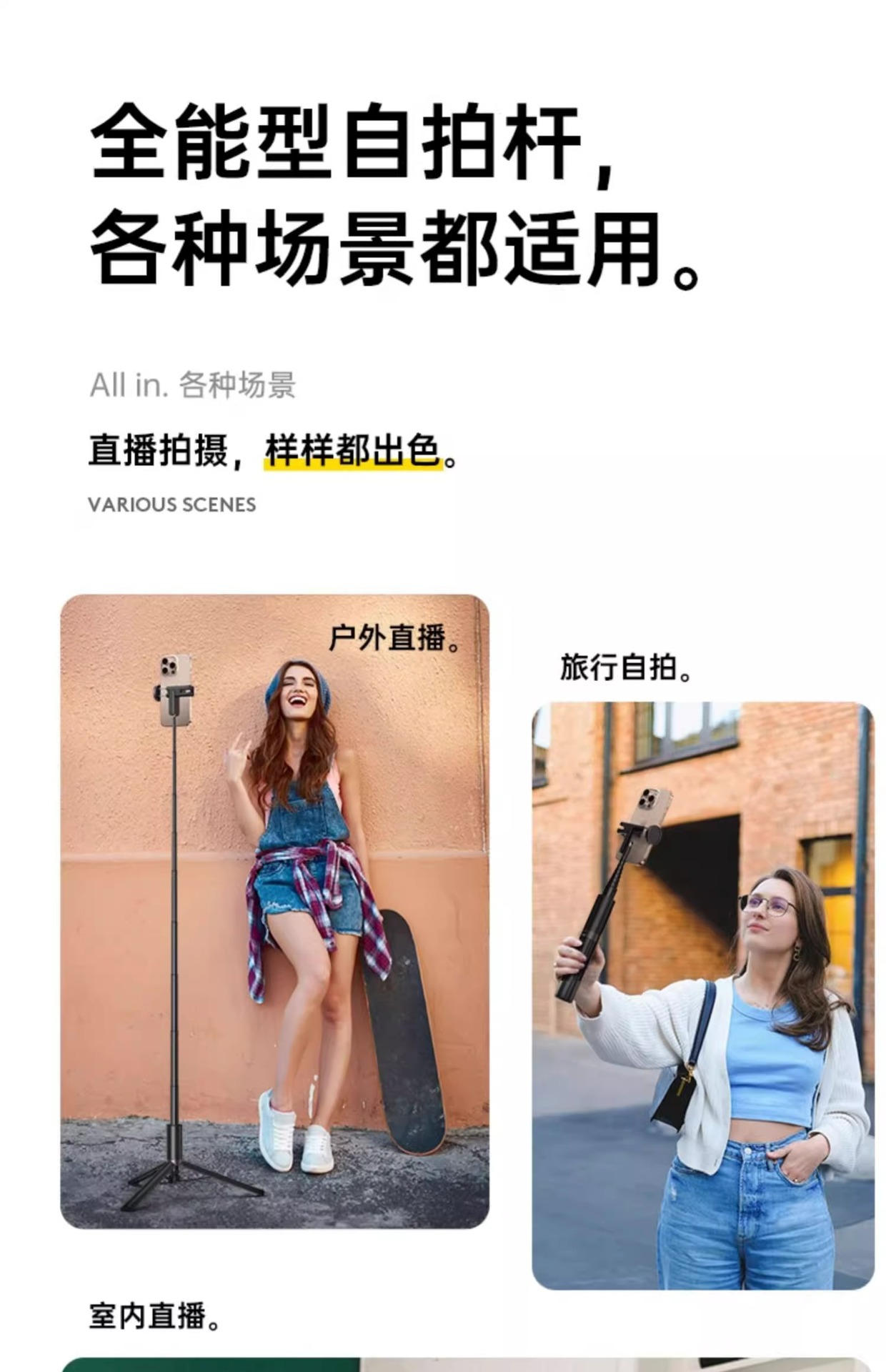 W&P 휴대폰 셀카봉, 플로어 스탠드 삼각대, 조명, 라이브 방송 스탠드, 핸드헬드 사진 촬영 도구, 블루투스 컨트롤 기능스토어 가기