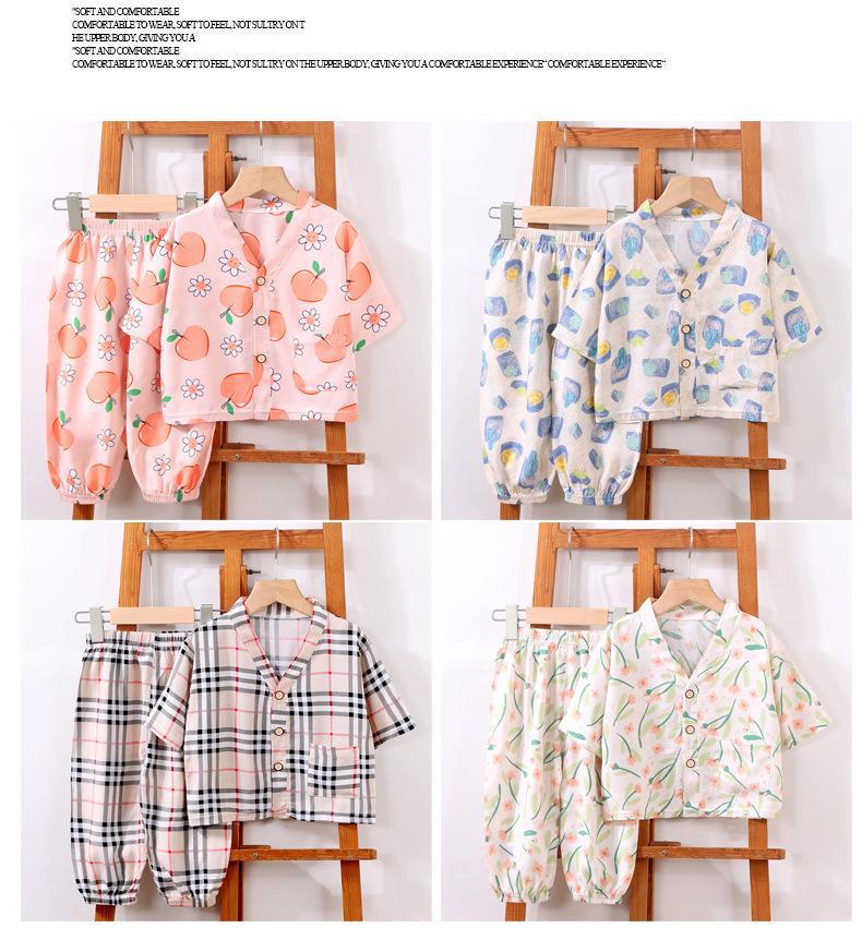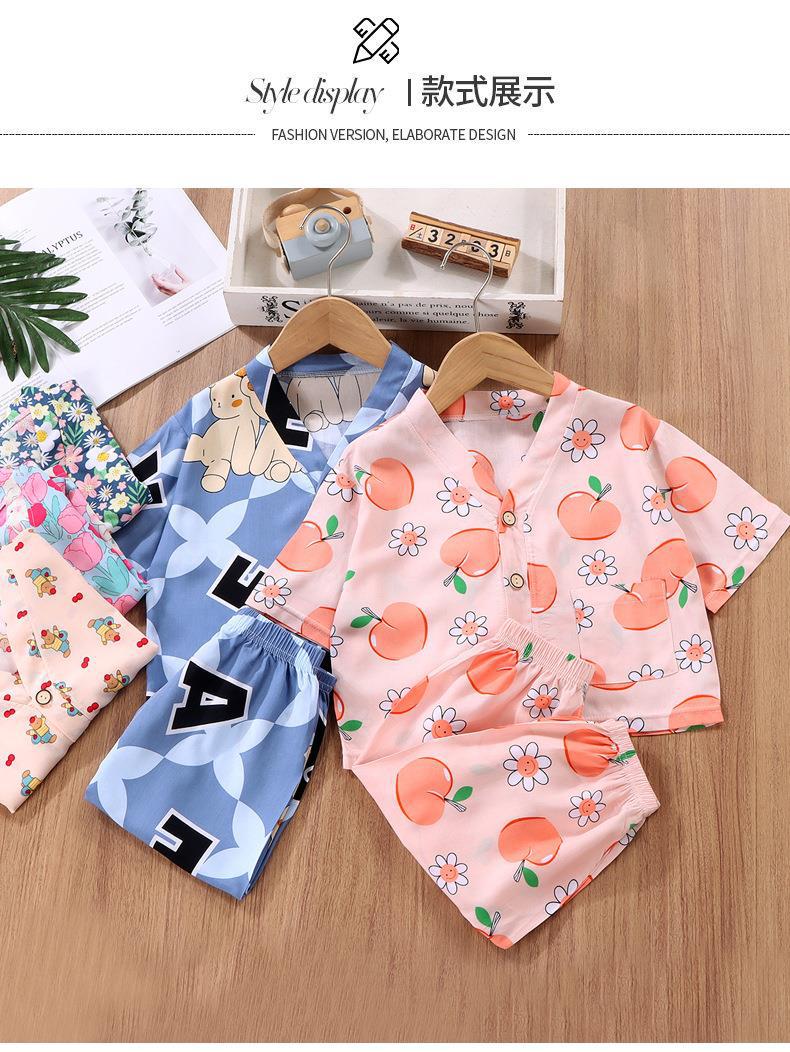새로운 어린이 면 실크 세트 남성과 여성 캐주얼 느슨한 얇은 에어컨 의류 어린이 가정 의류 세트스토어 가기