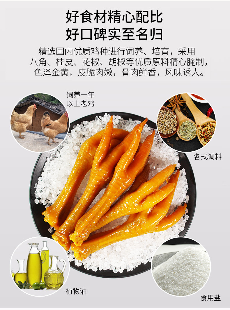 Nannuoxin 소금 구운 닭 발톱 고기 닭 발톱 절인 닭 발톱 단일 발톱 광동 전문 닭 발 간식 레저 간식 도매