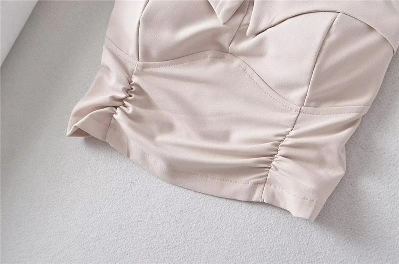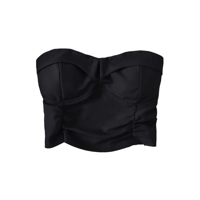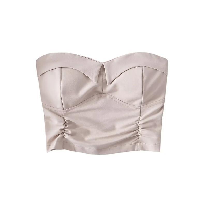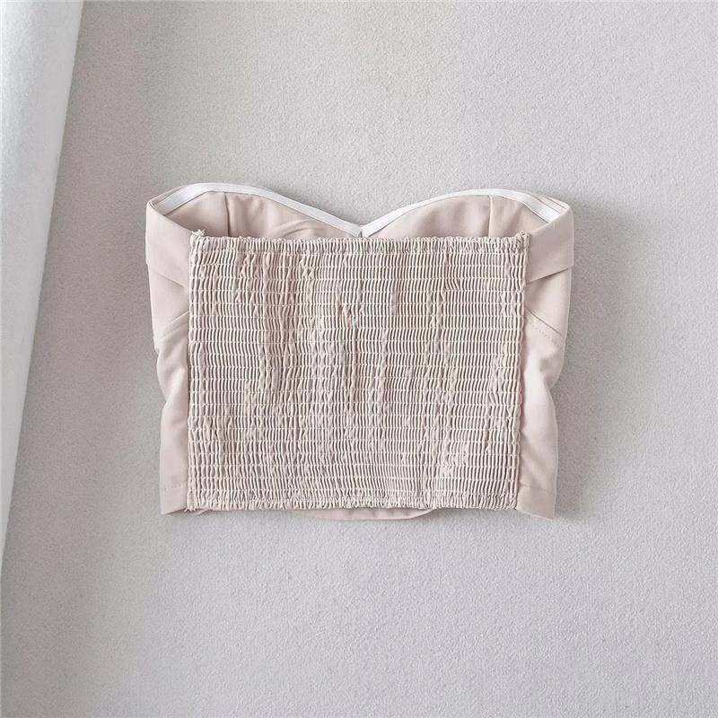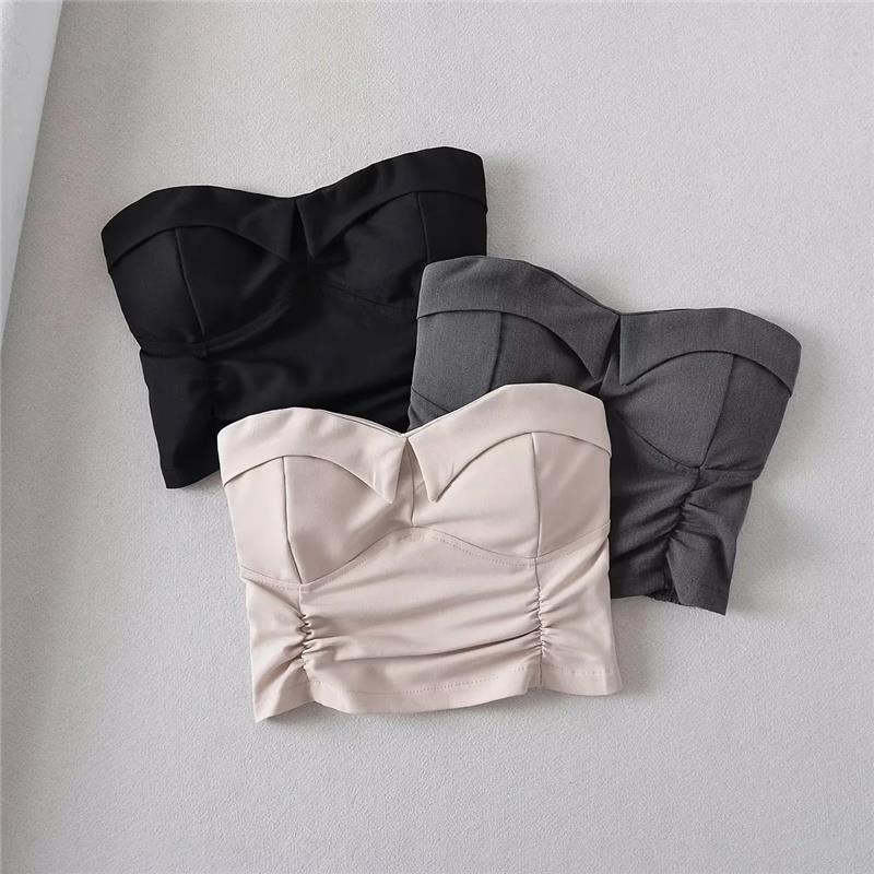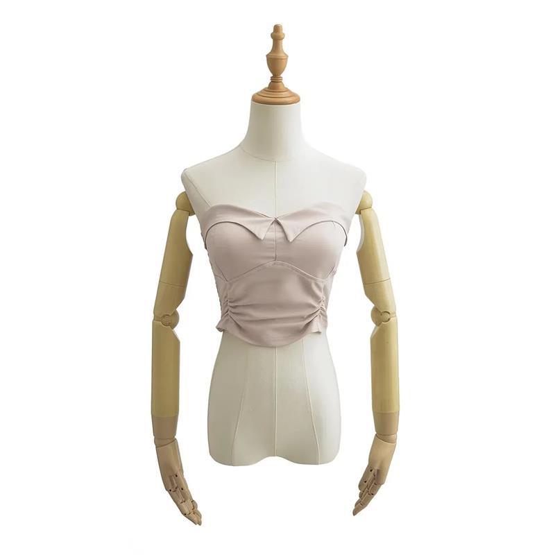 뜨거운 소녀 달콤한 멋진 디자인 주름 튜브 탑 여름 새로운 슬림 핏 단색 짧은 배꼽 섹시한 조끼 탑