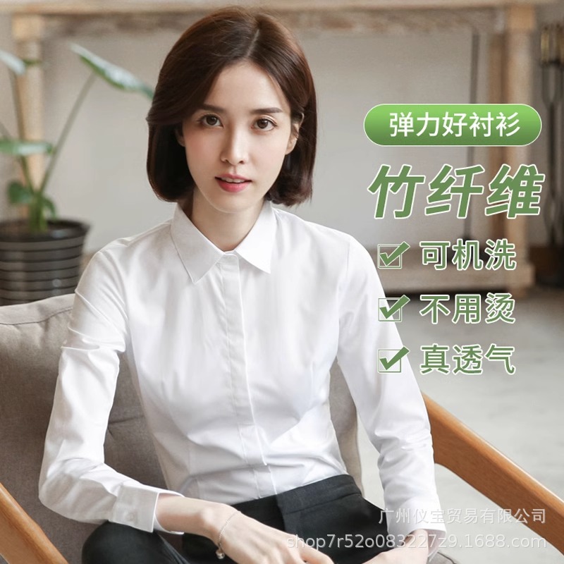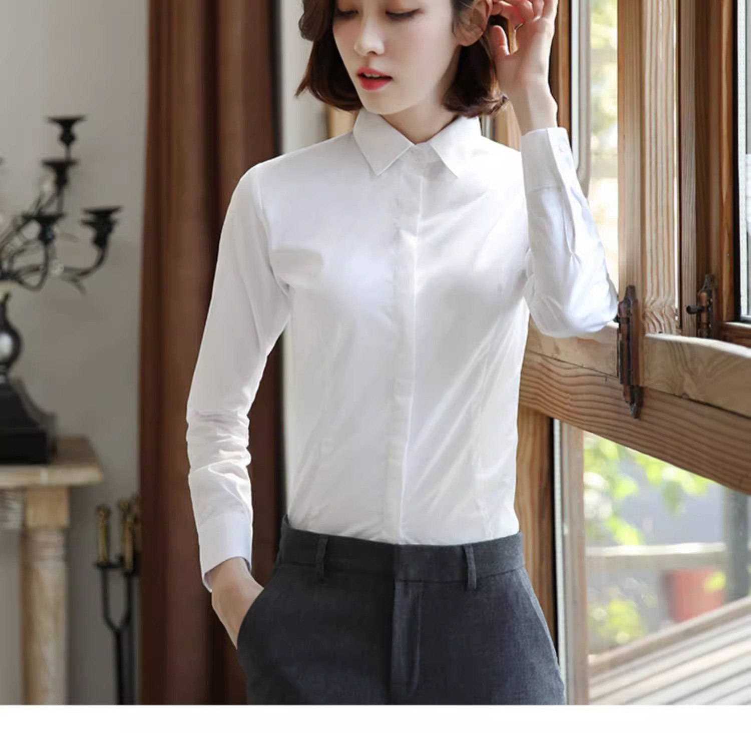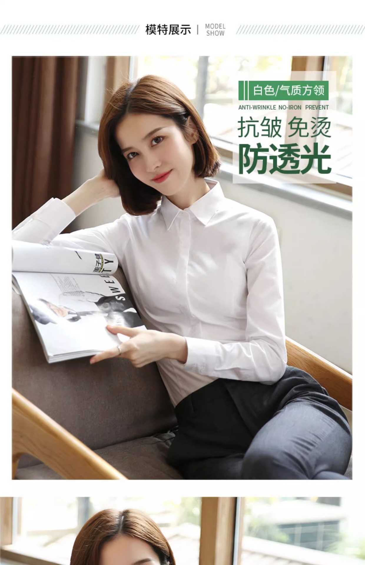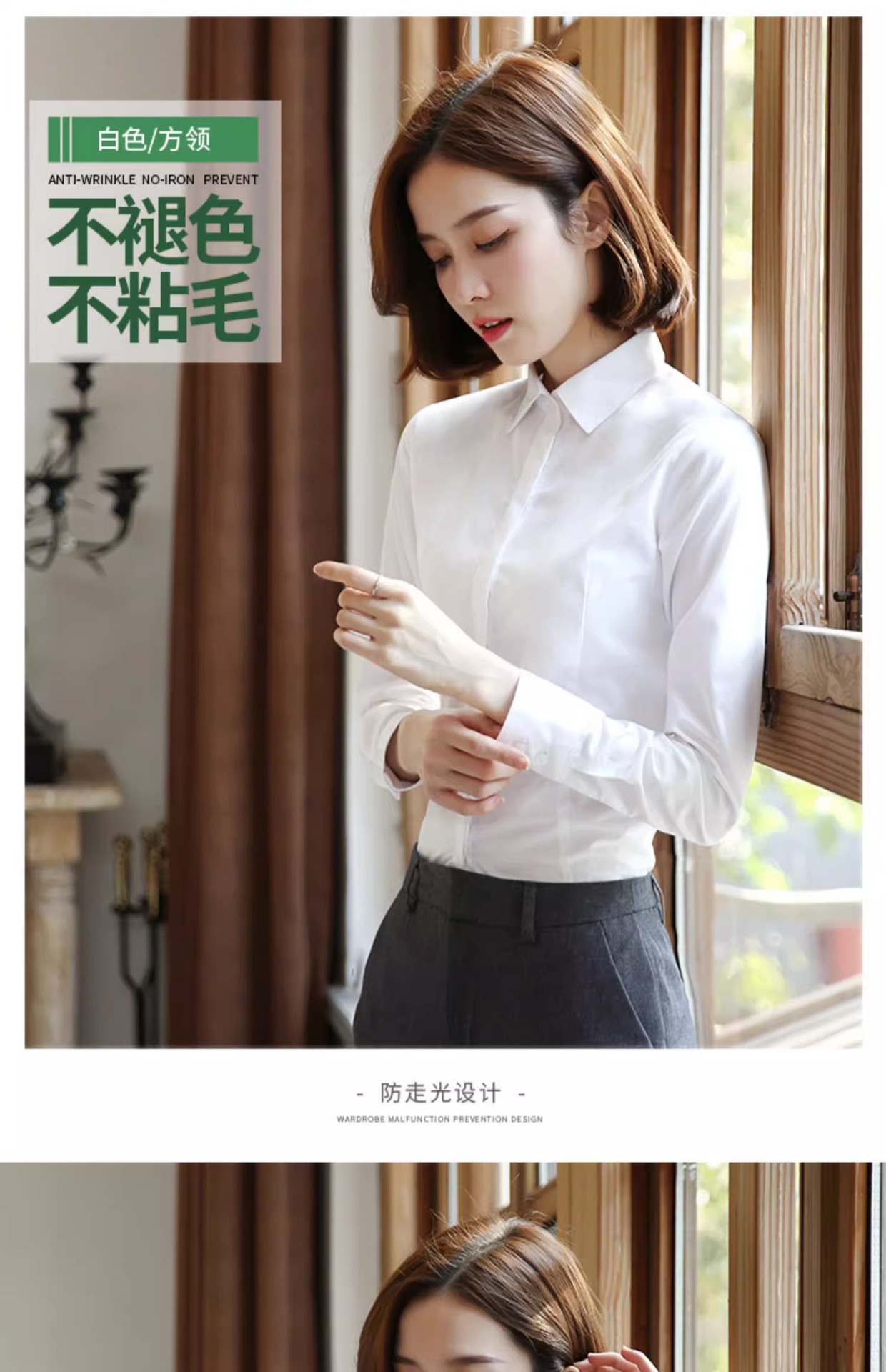 스트레치 화이트 셔츠 여성용 긴팔 프로페셔널 2023 봄과 여름 새로운 탑 툴링 스퀘어 칼라 셔츠 여성용 원피스 작업복스토어 가기