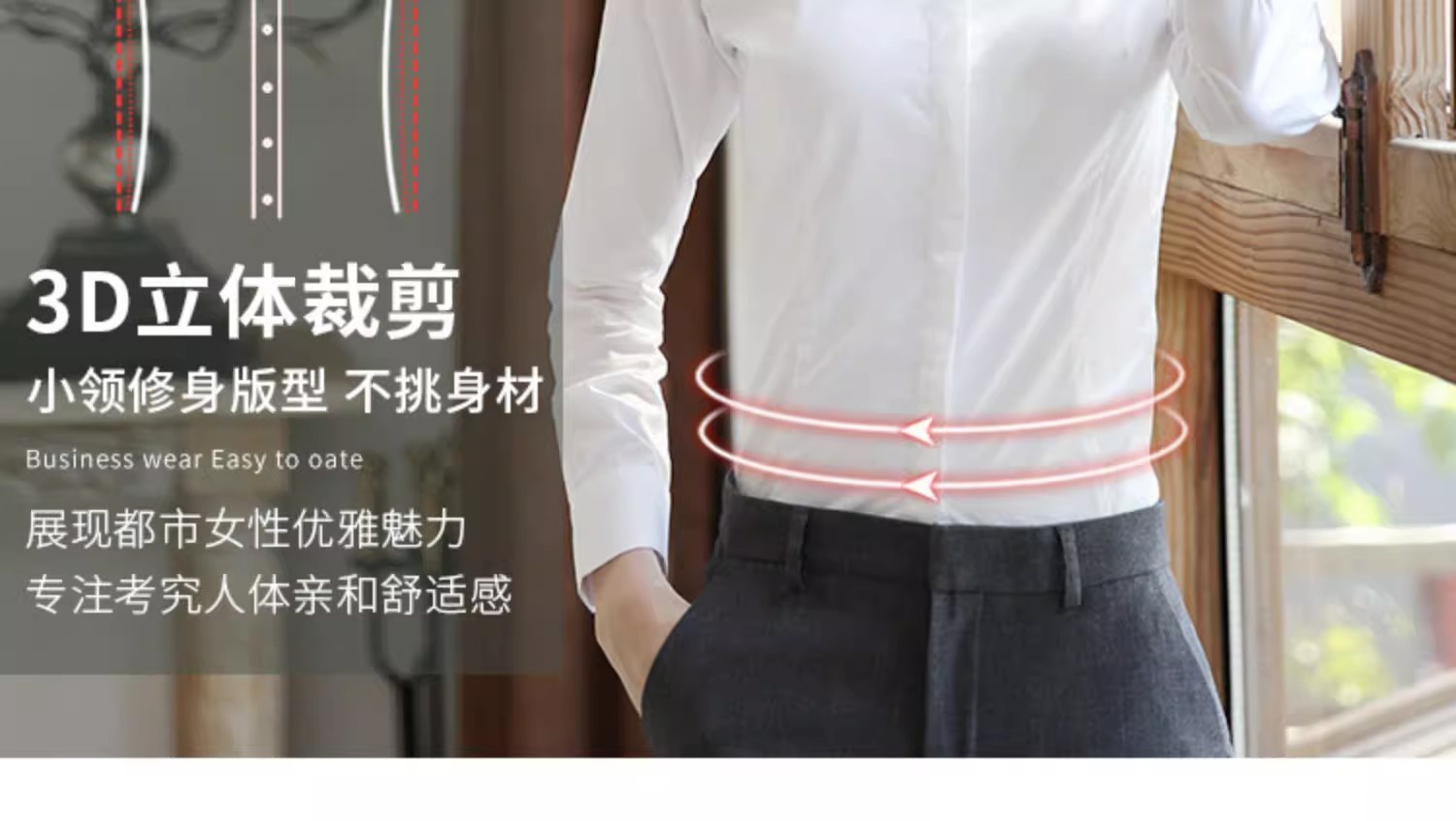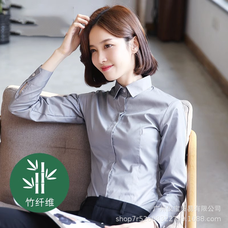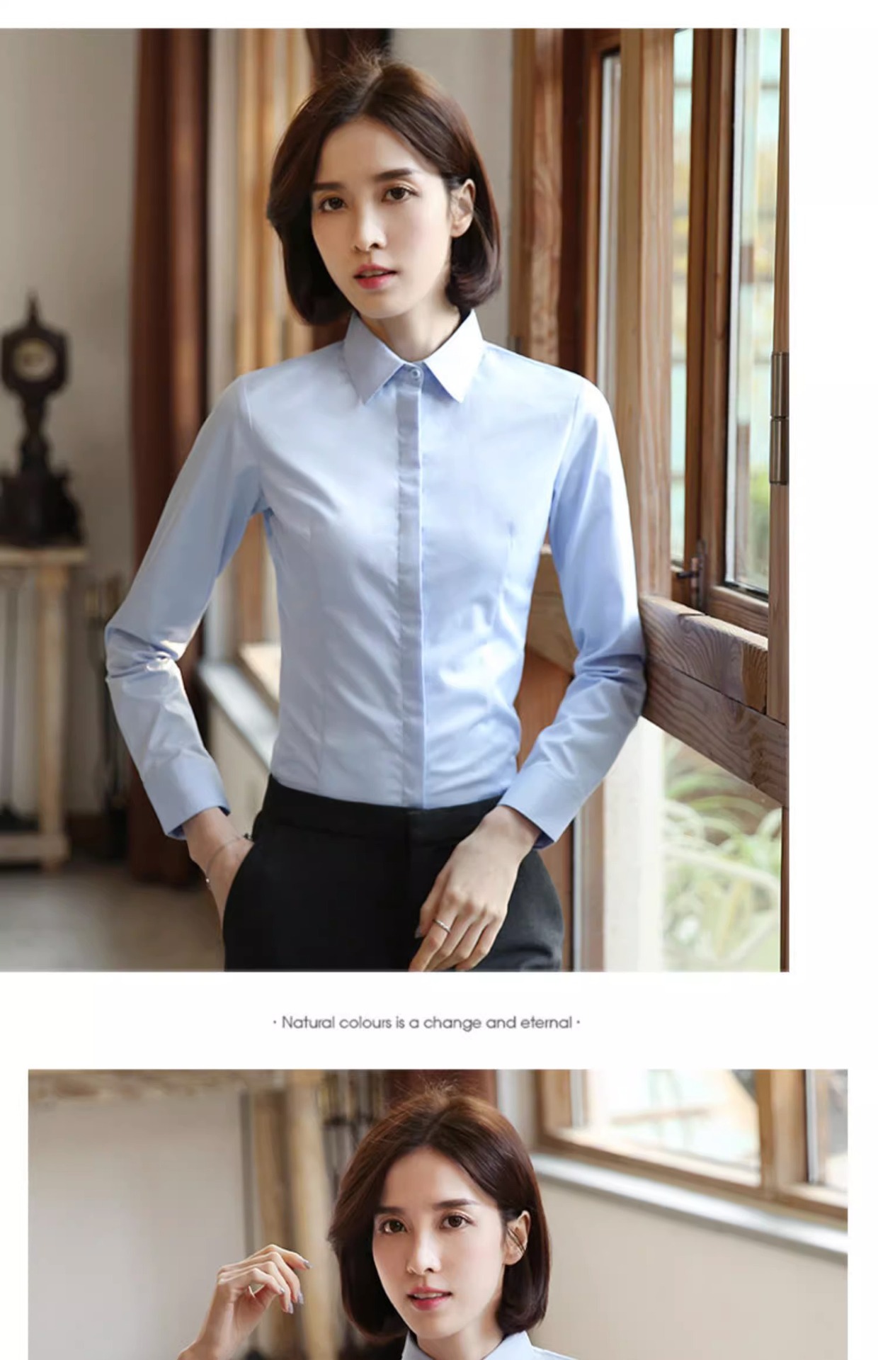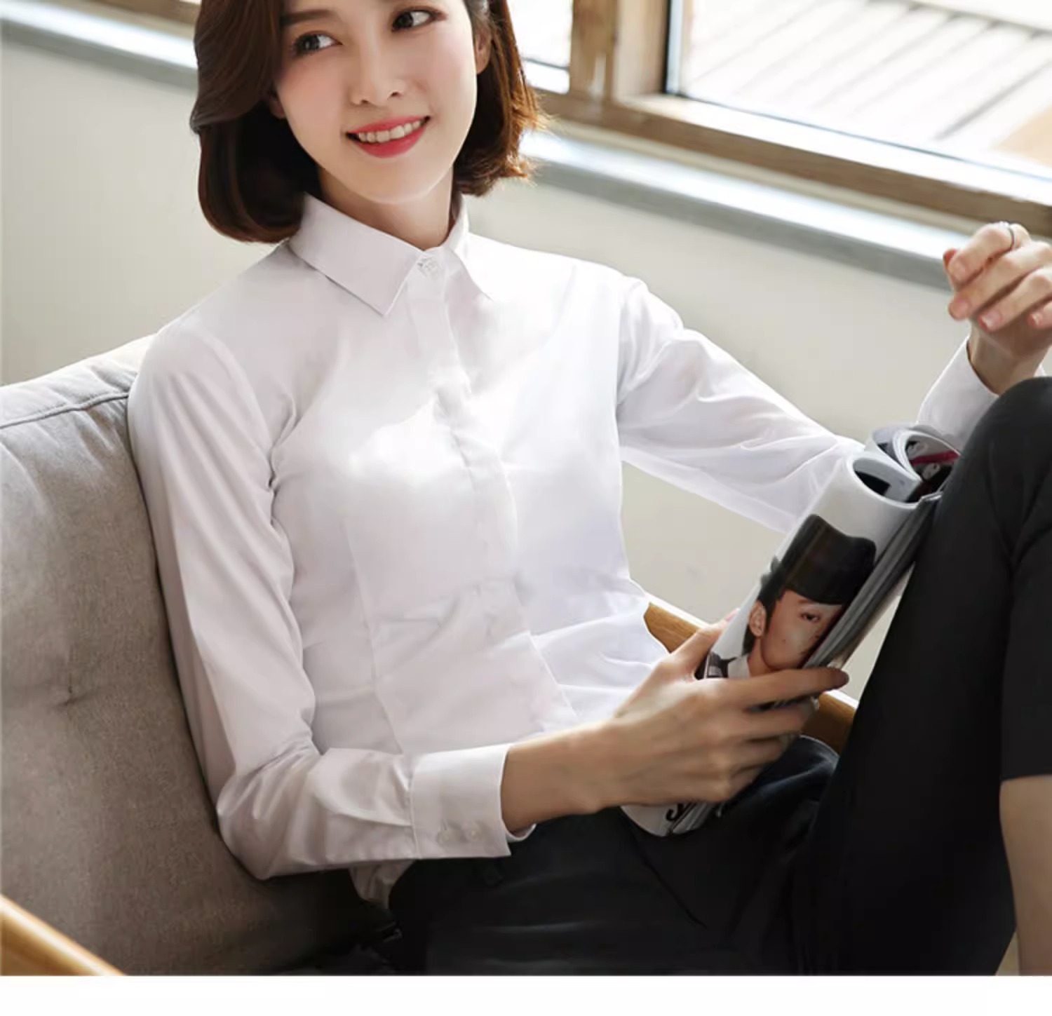 스트레치 화이트 셔츠 여성용 긴팔 프로페셔널 2023 봄과 여름 새로운 탑 툴링 스퀘어 칼라 셔츠 여성용 원피스 작업복스토어 가기