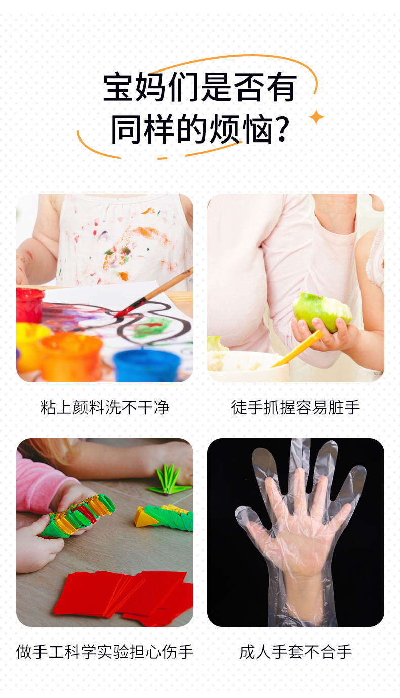 어린이 식품 등급 일회용 장갑 단일 독립 소형 패키지 두꺼운 어린이 아기 취사, 그림, 엔터테인먼트 및 놀이