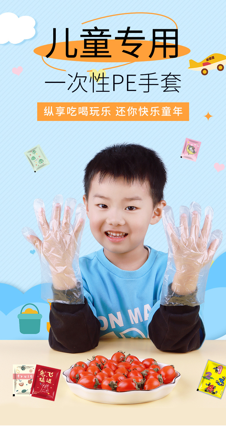 어린이 식품 등급 일회용 장갑 단일 독립 소형 패키지 두꺼운 어린이 아기 취사, 그림, 엔터테인먼트 및 놀이스토어 가기