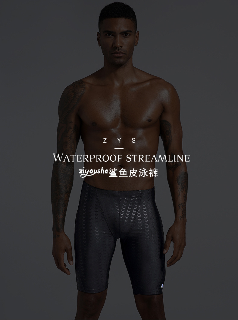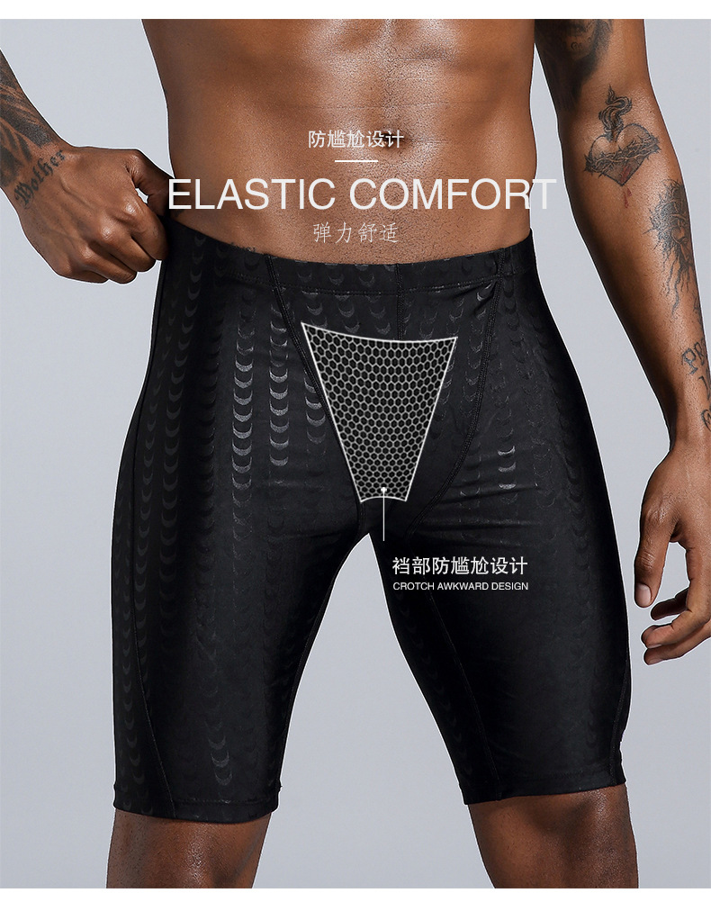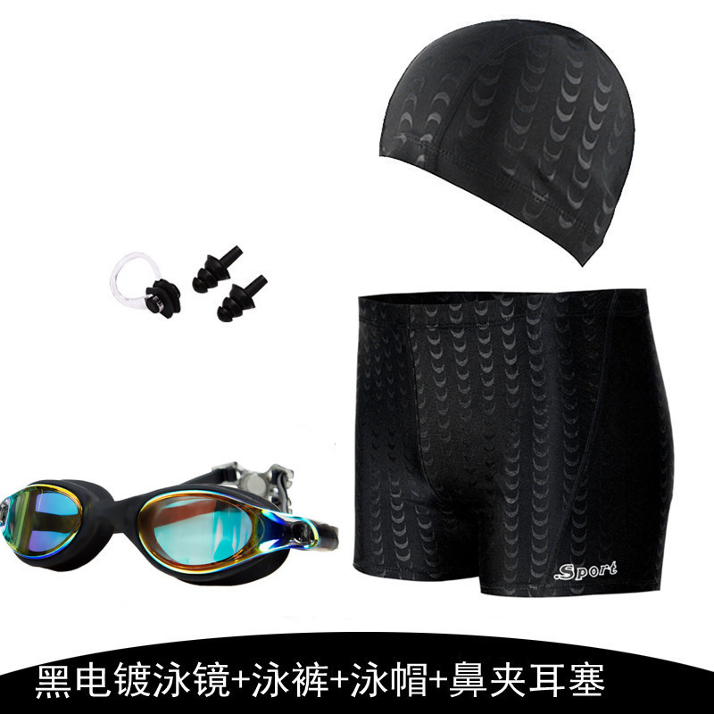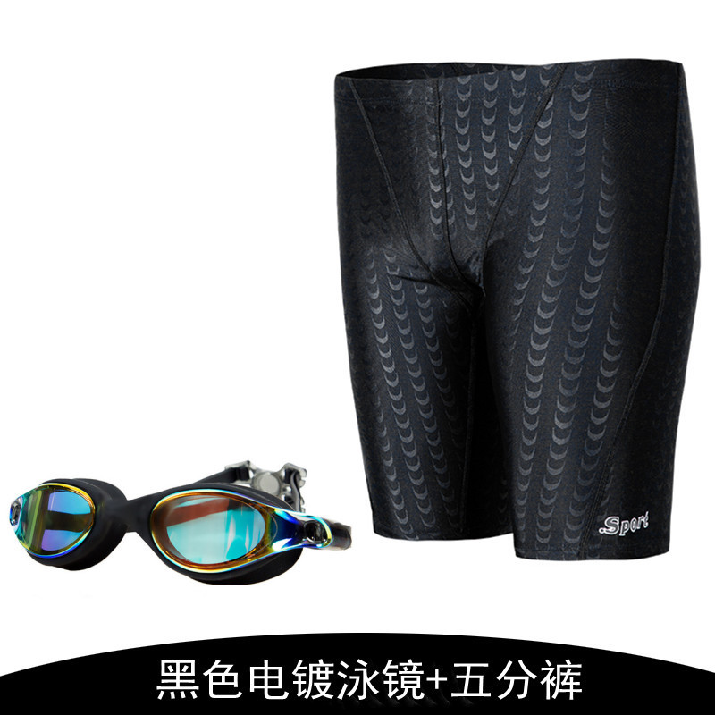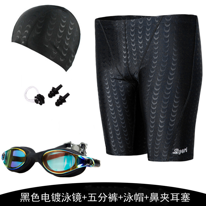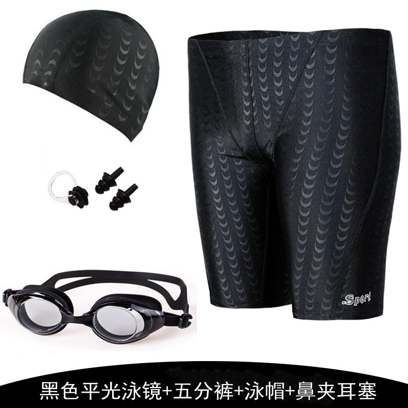 공장 수영 트렁크 남자의 5 속건 수영 트렁크 남자의 수영복 수영 장비 모조 상어 피부 수영 모자 수영 고글 세트