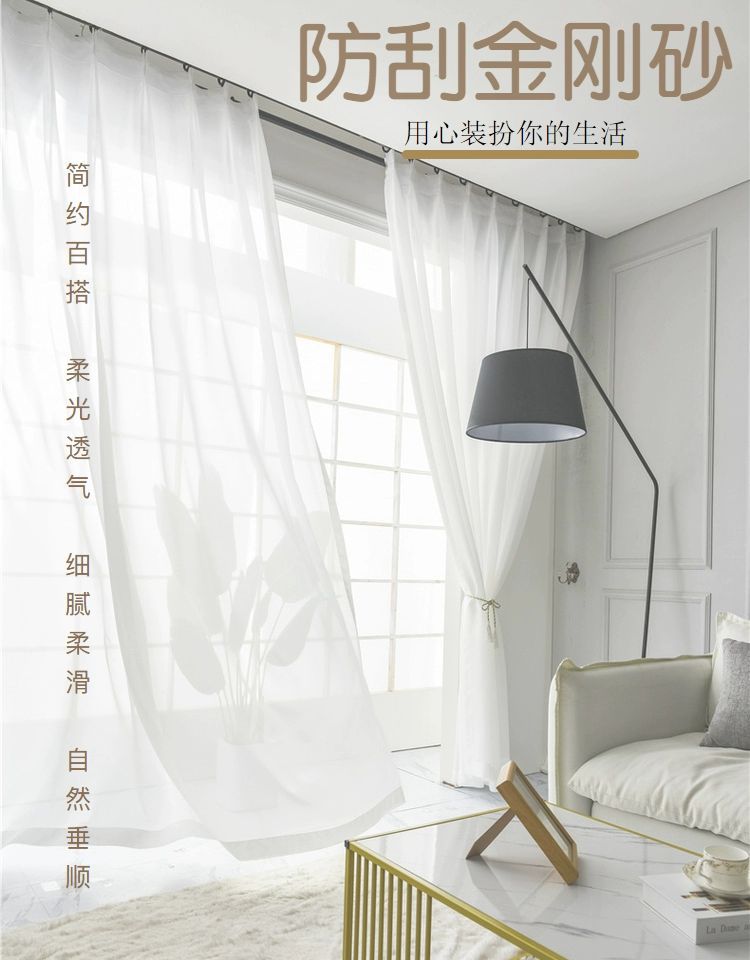 수직 흰색 거즈 커튼 투명 다이아몬드 원사 침실 모래 음영 쉬폰 거즈 발코니 흰색 거즈 커튼스토어 가기