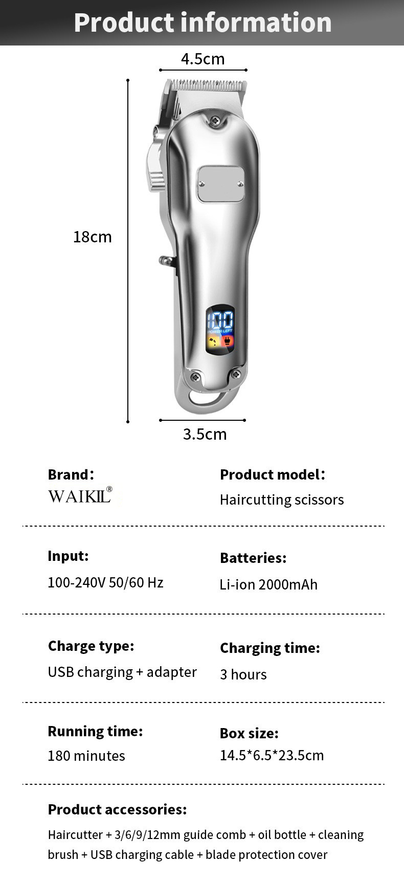 아마존 SHEIN 인기 전문가용 전기 이발기 전기 클리퍼 디지털 디스플레이 오일 헤드 클리퍼 전기 이발기