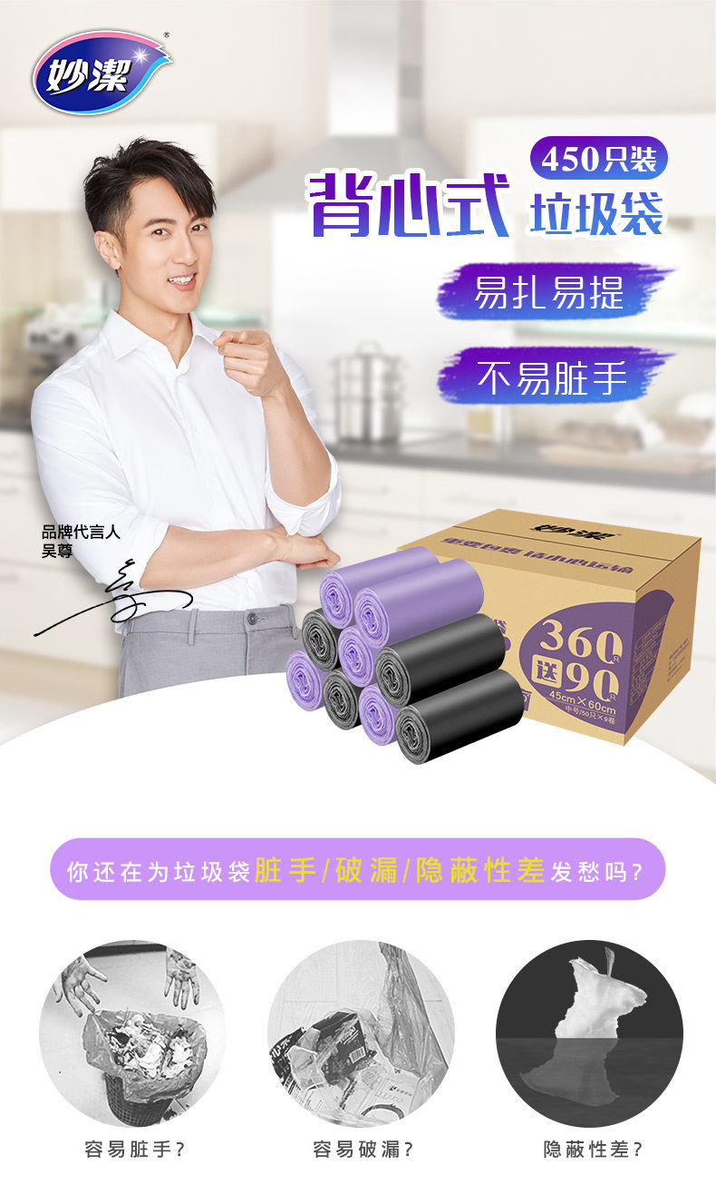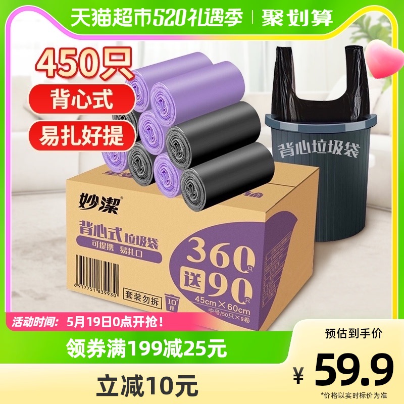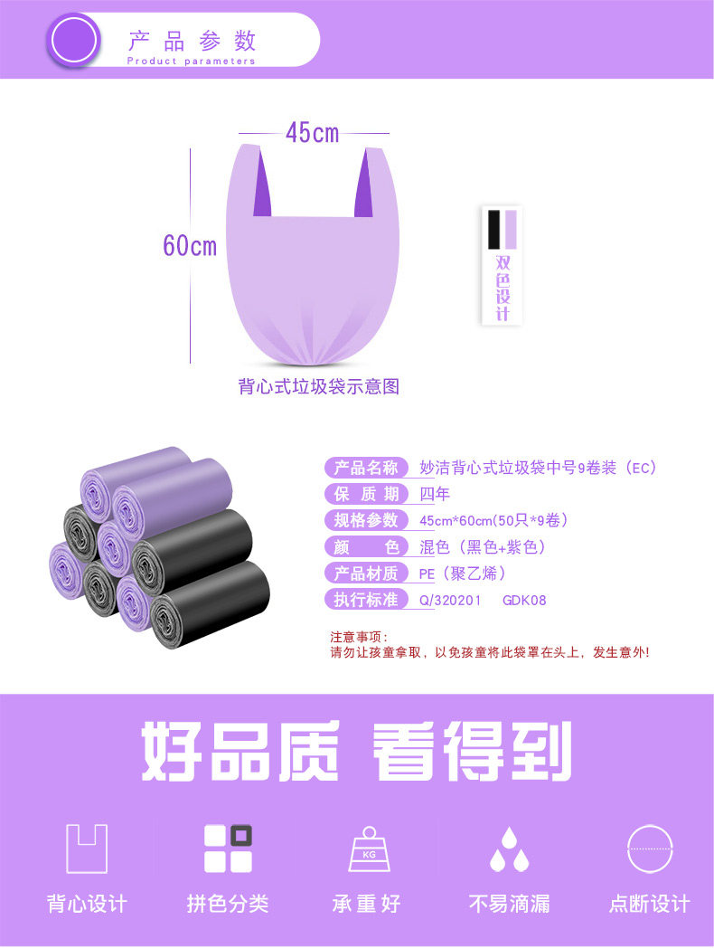 JW Miaojie 쓰레기 봉투 가정용 조끼 휴대용 두꺼운 주방 상업용 피크닉 저렴한 대형 및 중형 스몰 사이즈 50*9스토어 가기