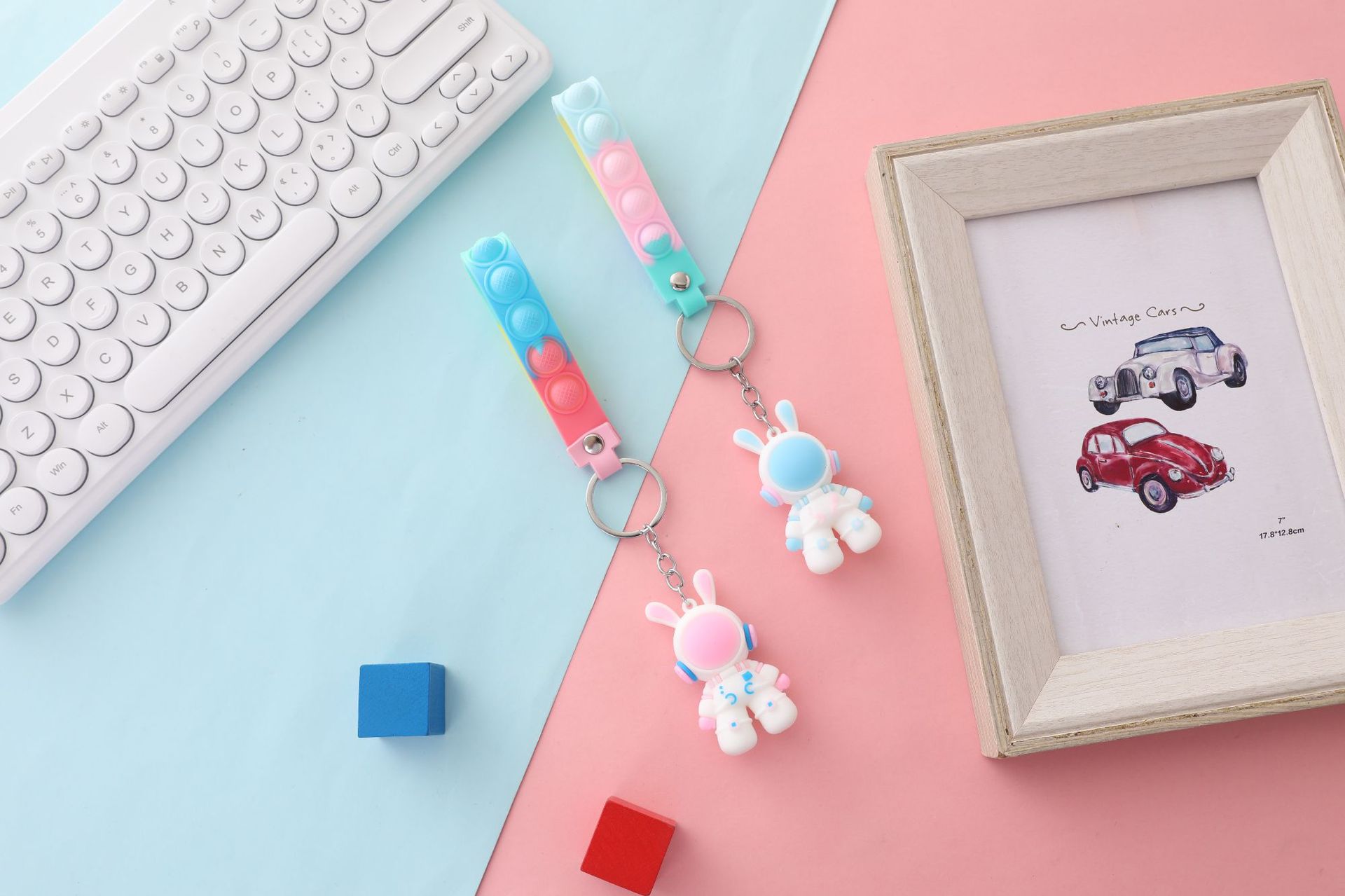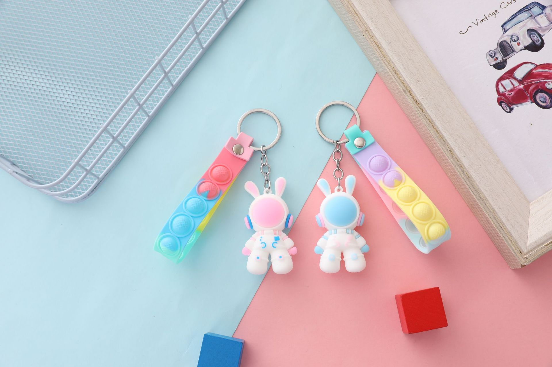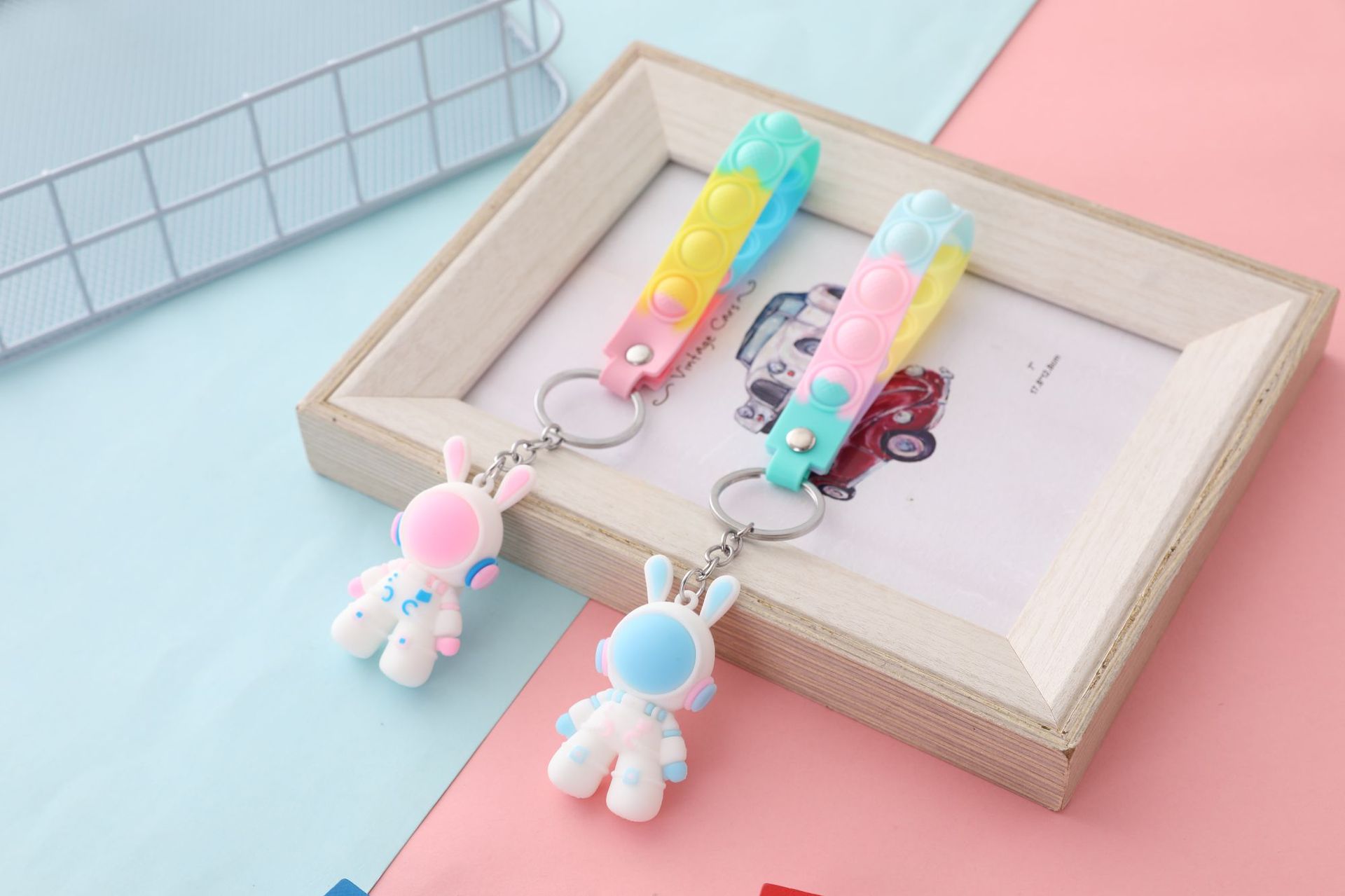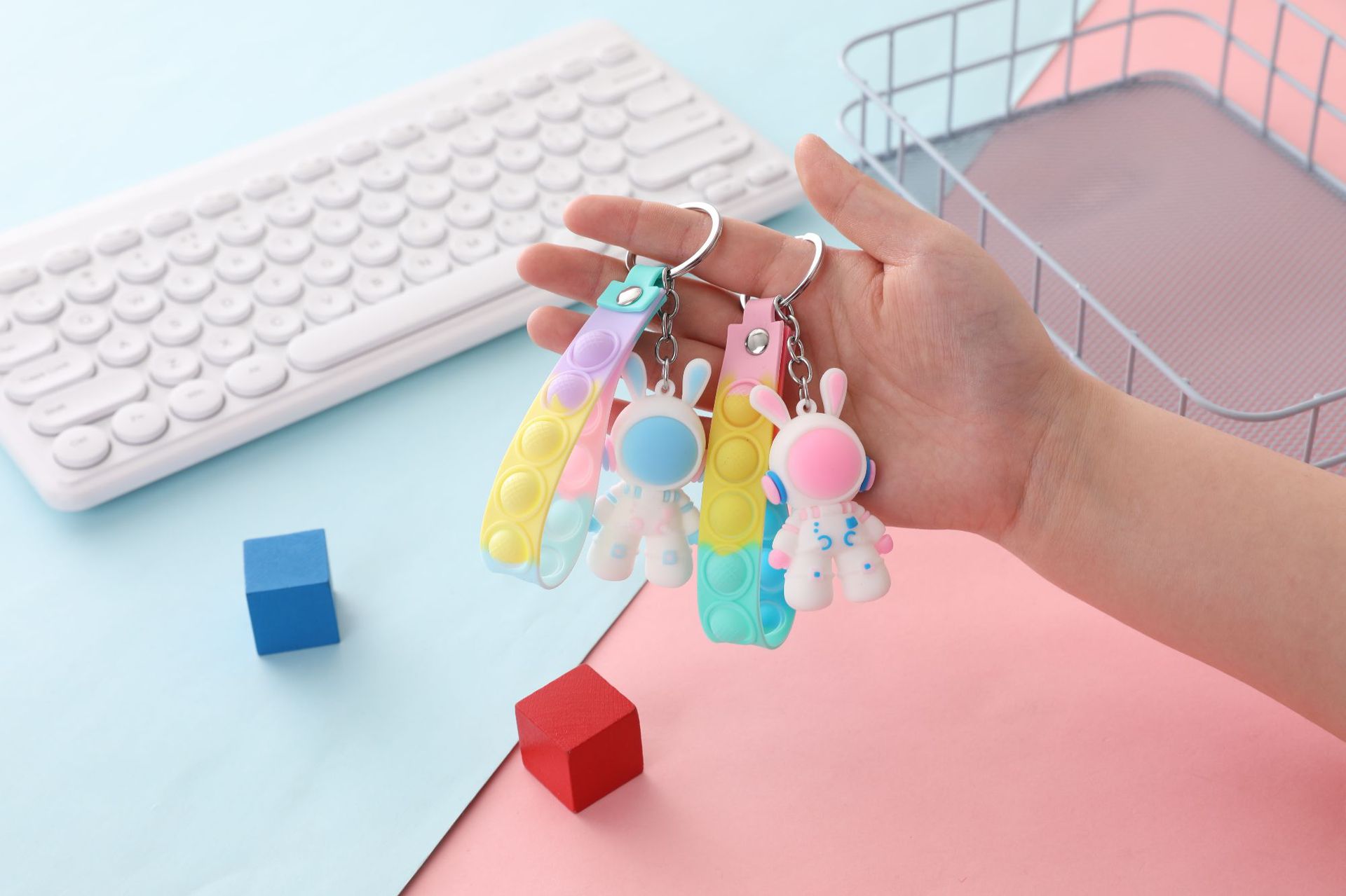 만화 우주 토끼 열쇠 고리 3D 입체 부드러운 고무 돌리 가방 펜던트 우주 비행사 자동차 열쇠 고리 작은 선물스토어 가기