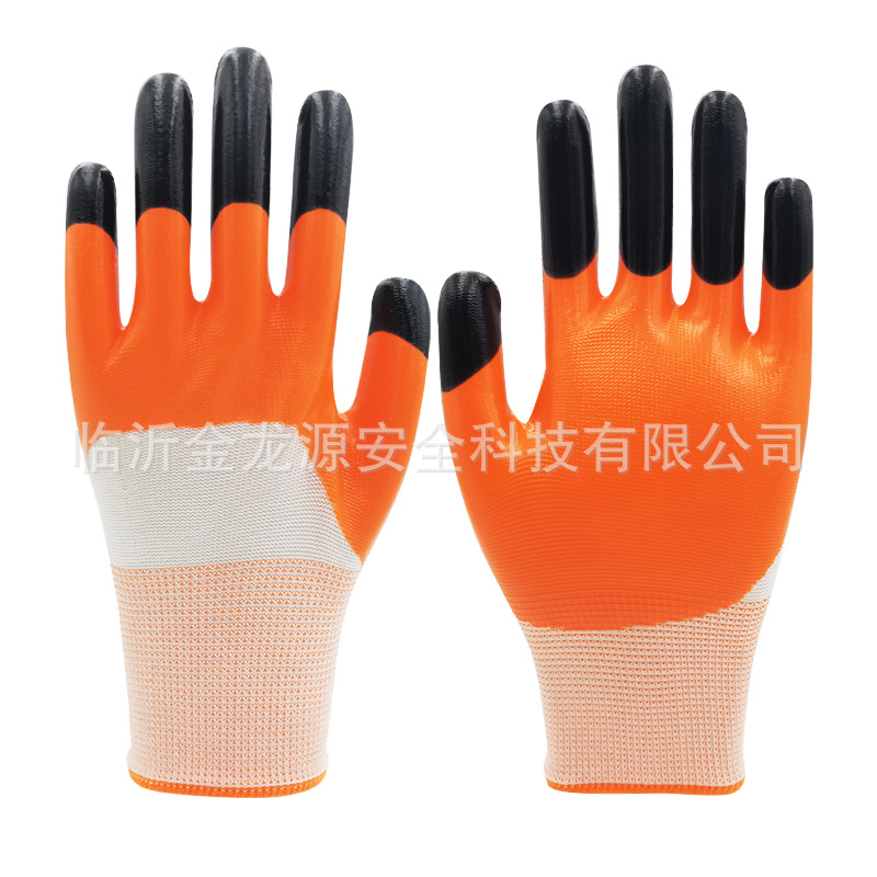 노동 보호 장갑 도매 니트릴 세미 행잉 강화 손가락 농축 내마모성 보호 미끄럼 방지 나일론 Ding Qing 작업 장갑