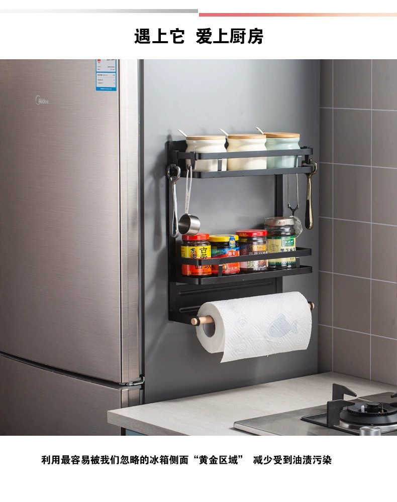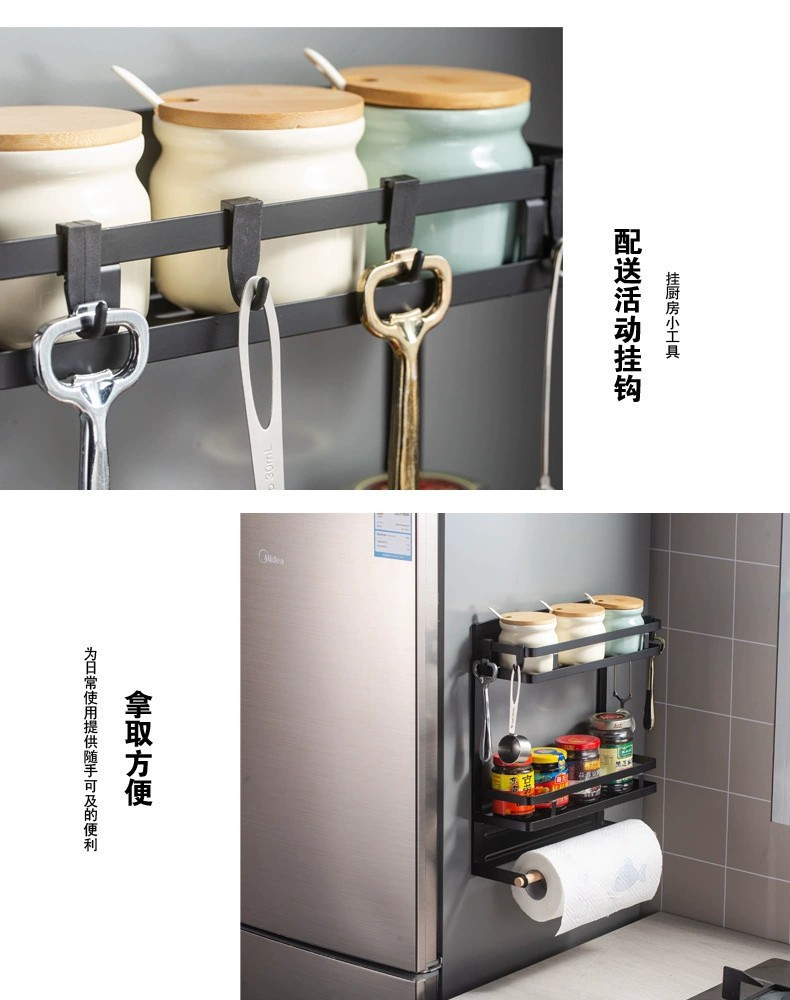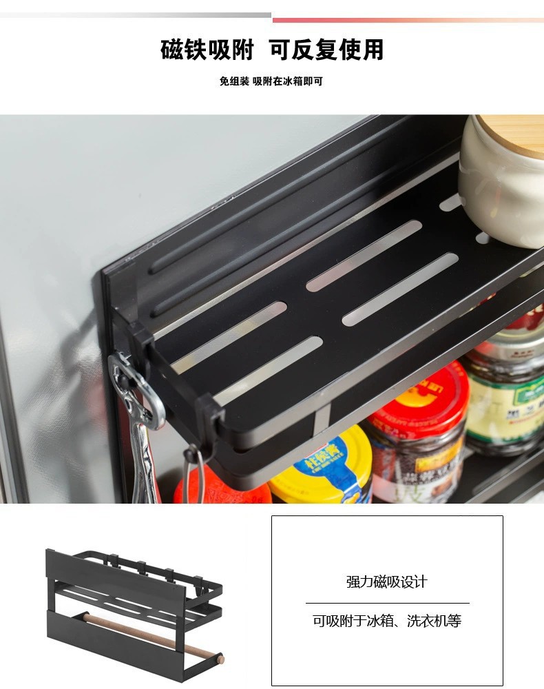 냉장고 스토리지 랙 사이드 벽 랙 원활한 가정용 주방 스토리지 랙 마그네틱 흡입 펀치 프리 전자 레인지 스토리지 랙