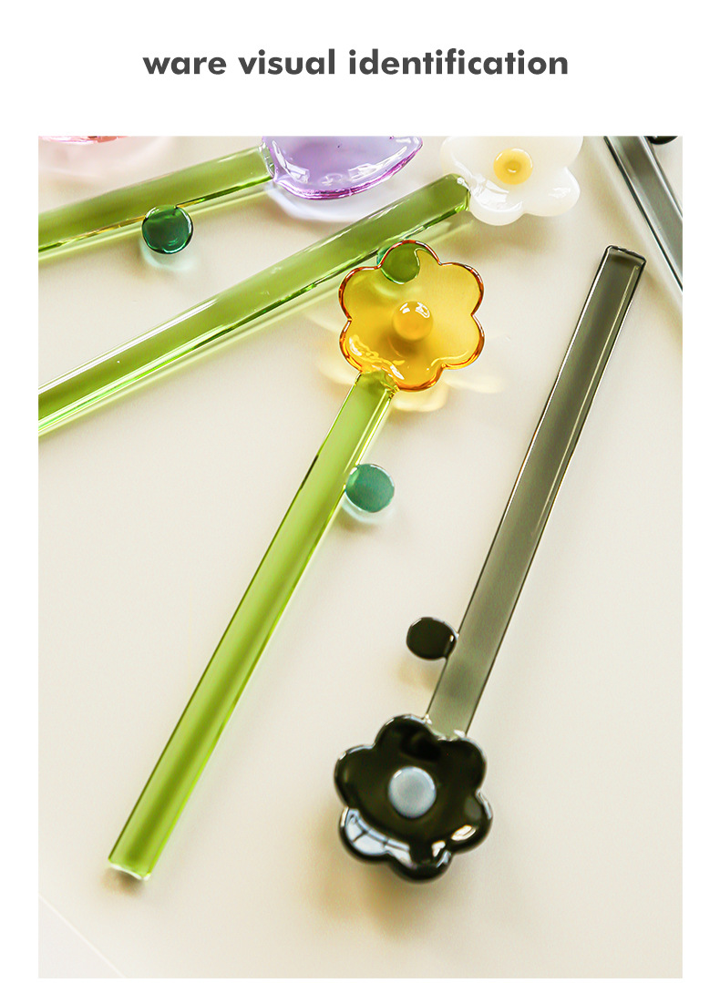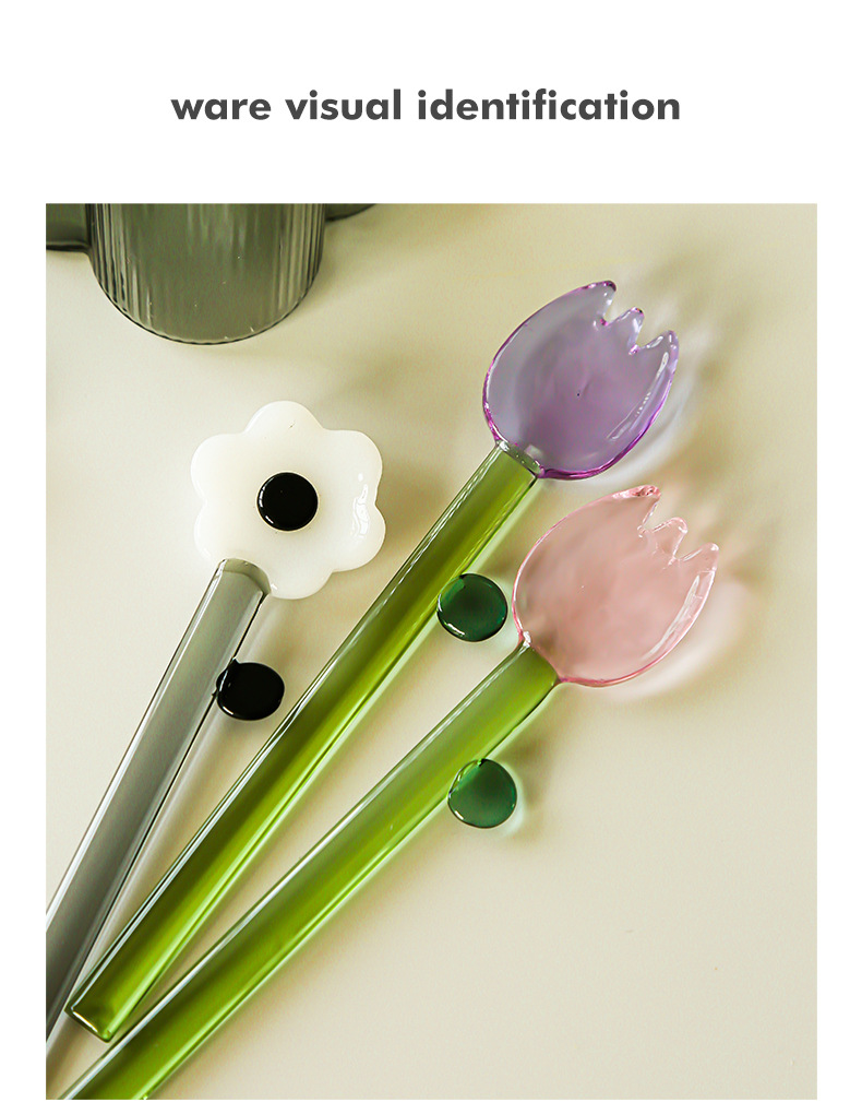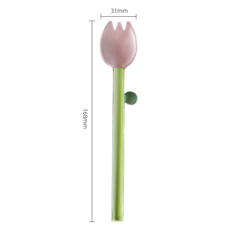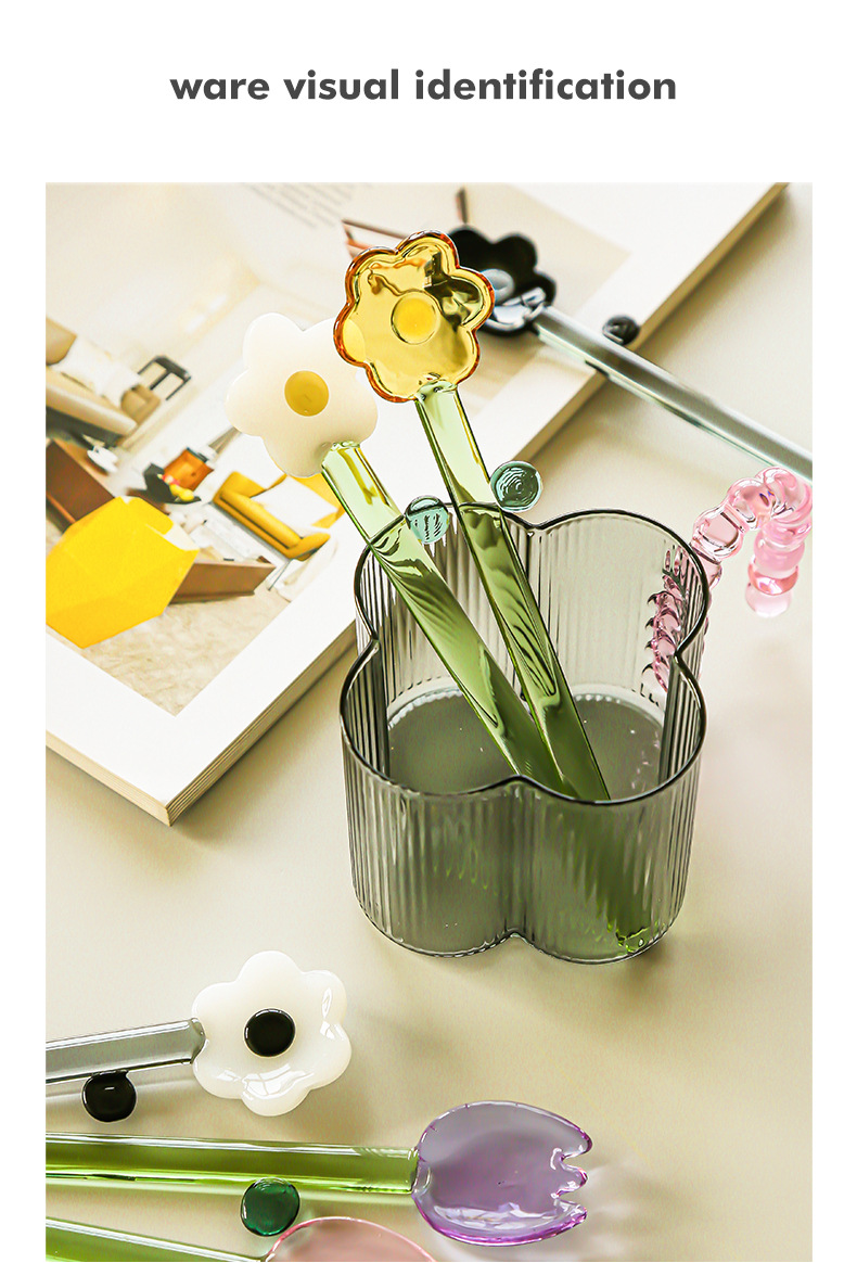 크리 에이 티브 높은 붕규산 색 투명 유리 스푼 긴 손잡이 귀여운 꽃 아이스크림 디저트 스푼 커피 믹싱 스푼 스틱