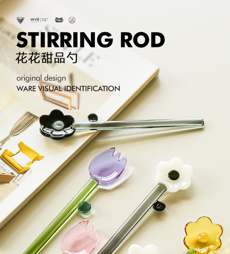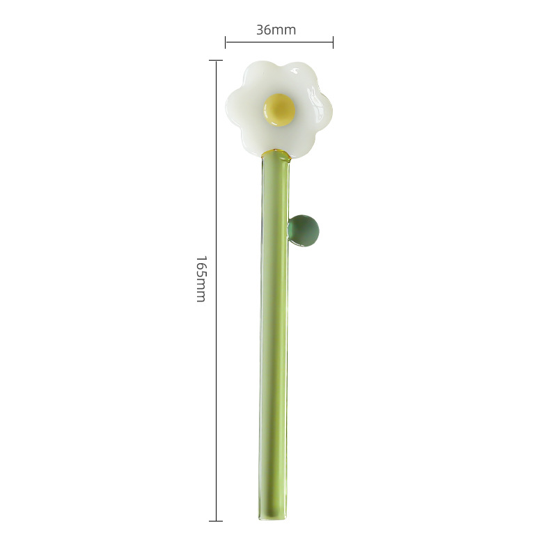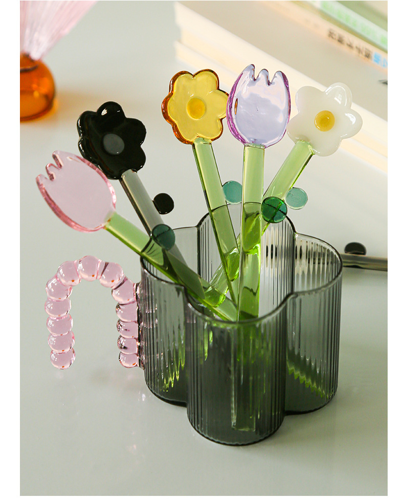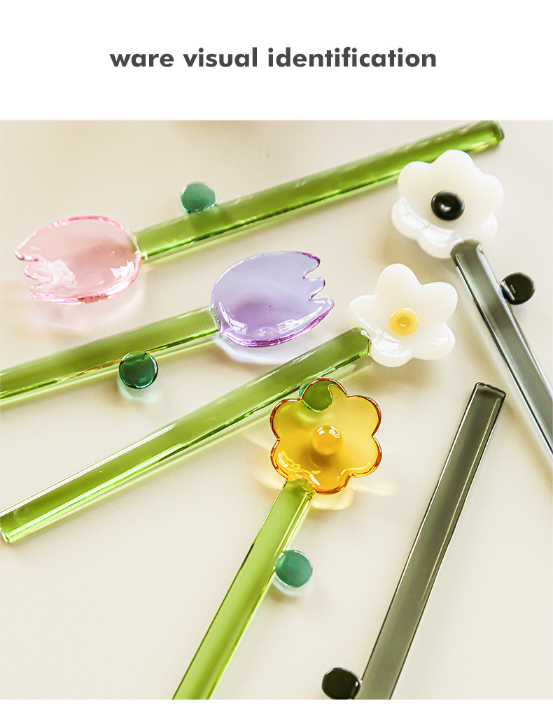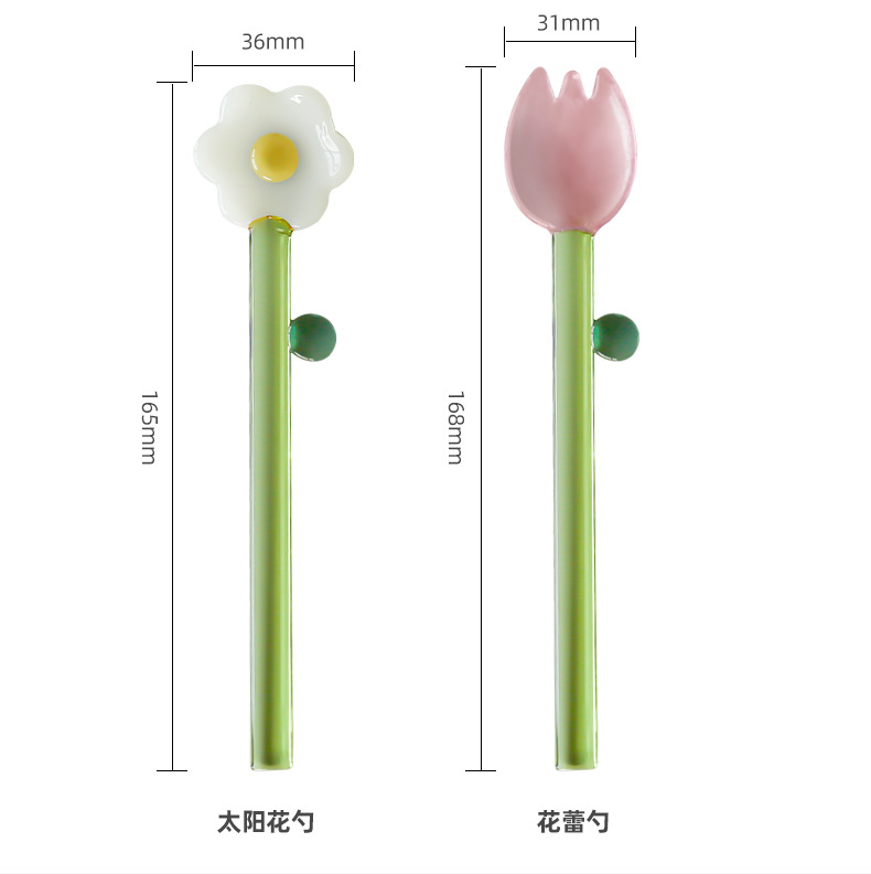 크리 에이 티브 높은 붕규산 색 투명 유리 스푼 긴 손잡이 귀여운 꽃 아이스크림 디저트 스푼 커피 믹싱 스푼 스틱