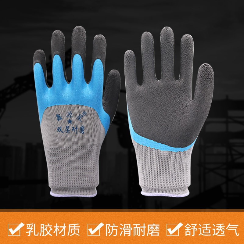 노동 장갑 내마모성 라텍스 강화 손가락 접착제 딥 미끄럼 방지 작업 현장 작업 노동 장갑 도매스토어 가기