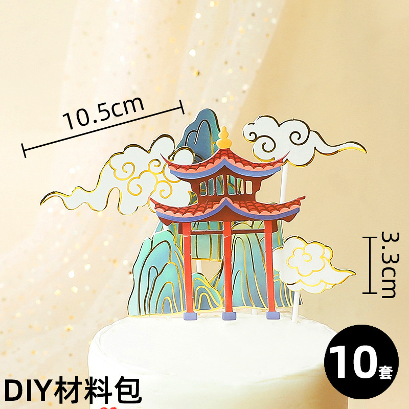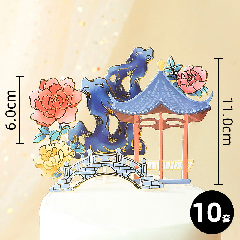 전국 조수 스타일 중국식 케이크 플러그인 장식 금실 플라워 브릿지 로커 크레인 팬 웨이브 스크린 카드 새해스토어 가기