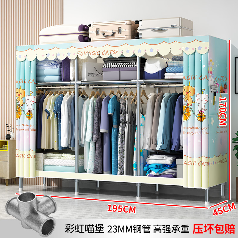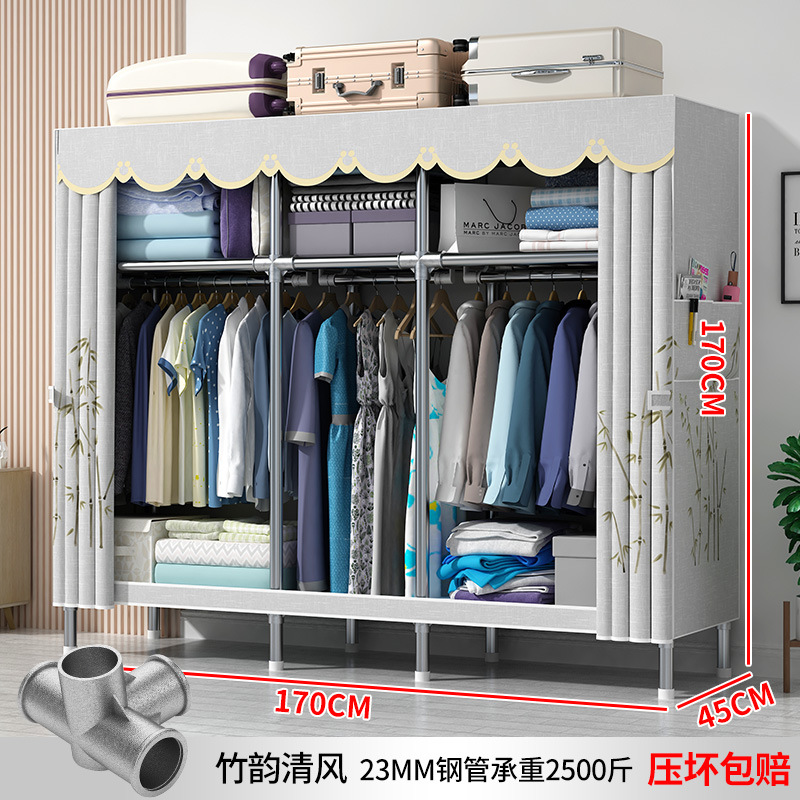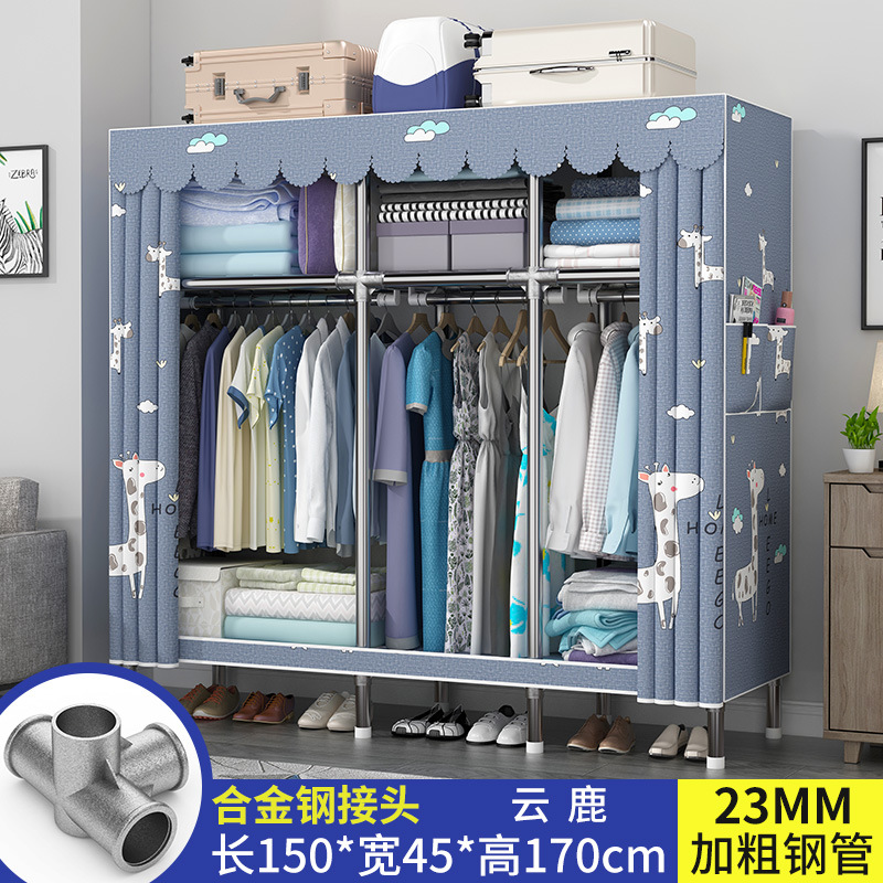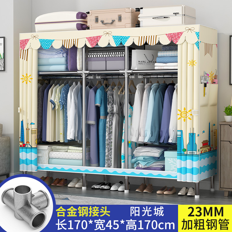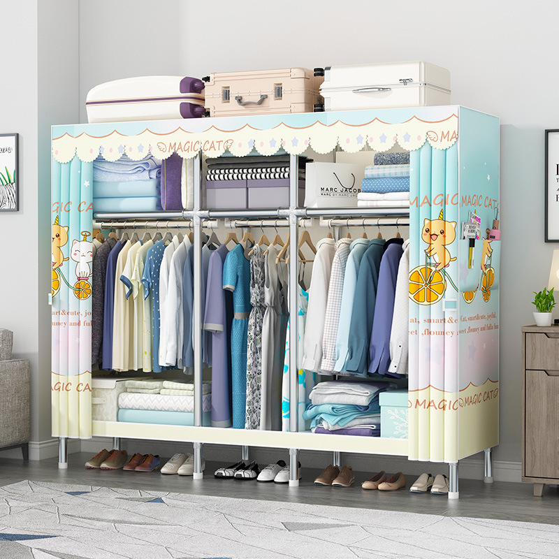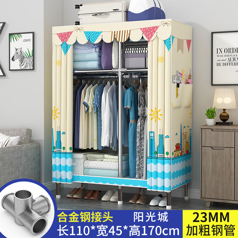 옷장 가정용 간단한 침실 천 옷장 강력하고 내구성 폐쇄 방진 교수형 옷장 기숙사 대용량 수납장