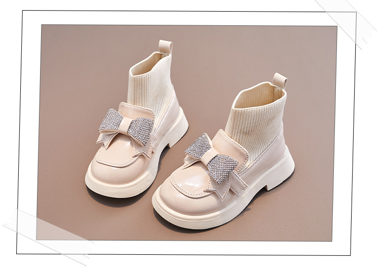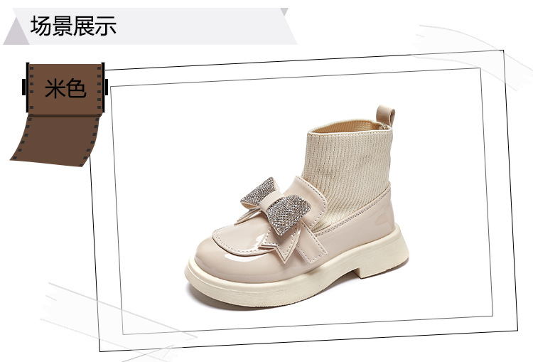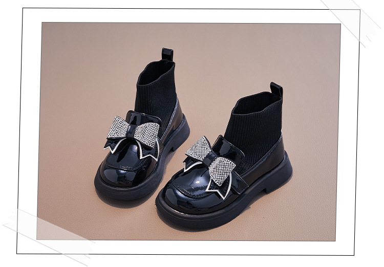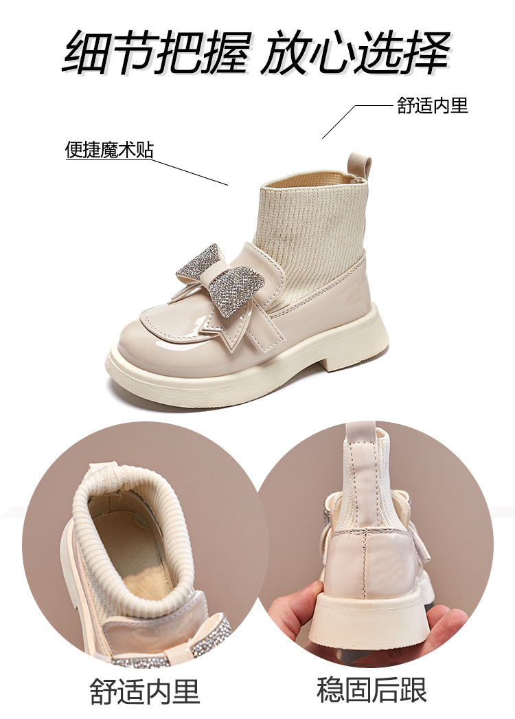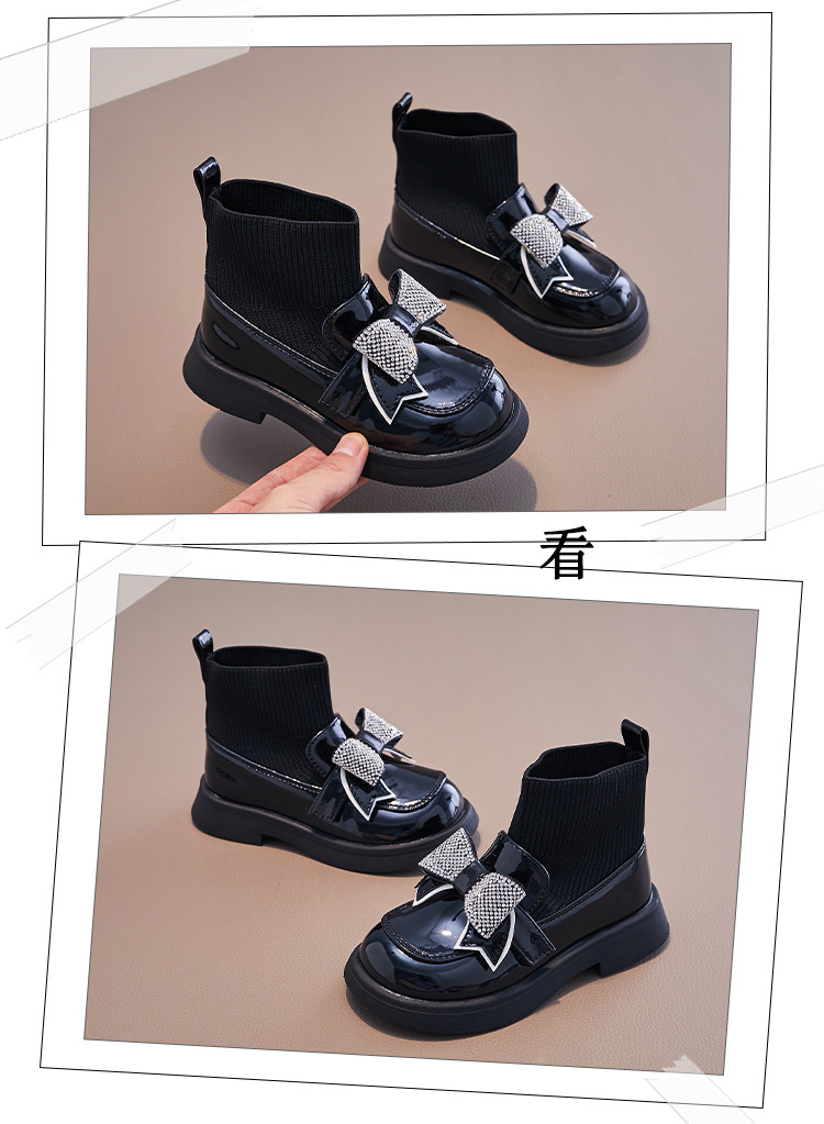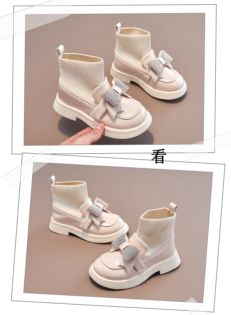 여자 가죽 신발 2025 봄 새로운 여자 싱글 부츠 여자 니트 영국 짧은 부츠 나비 매듭 부츠 어린이 가죽 부츠스토어 가기