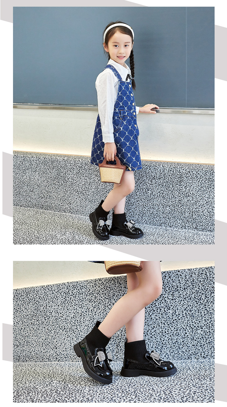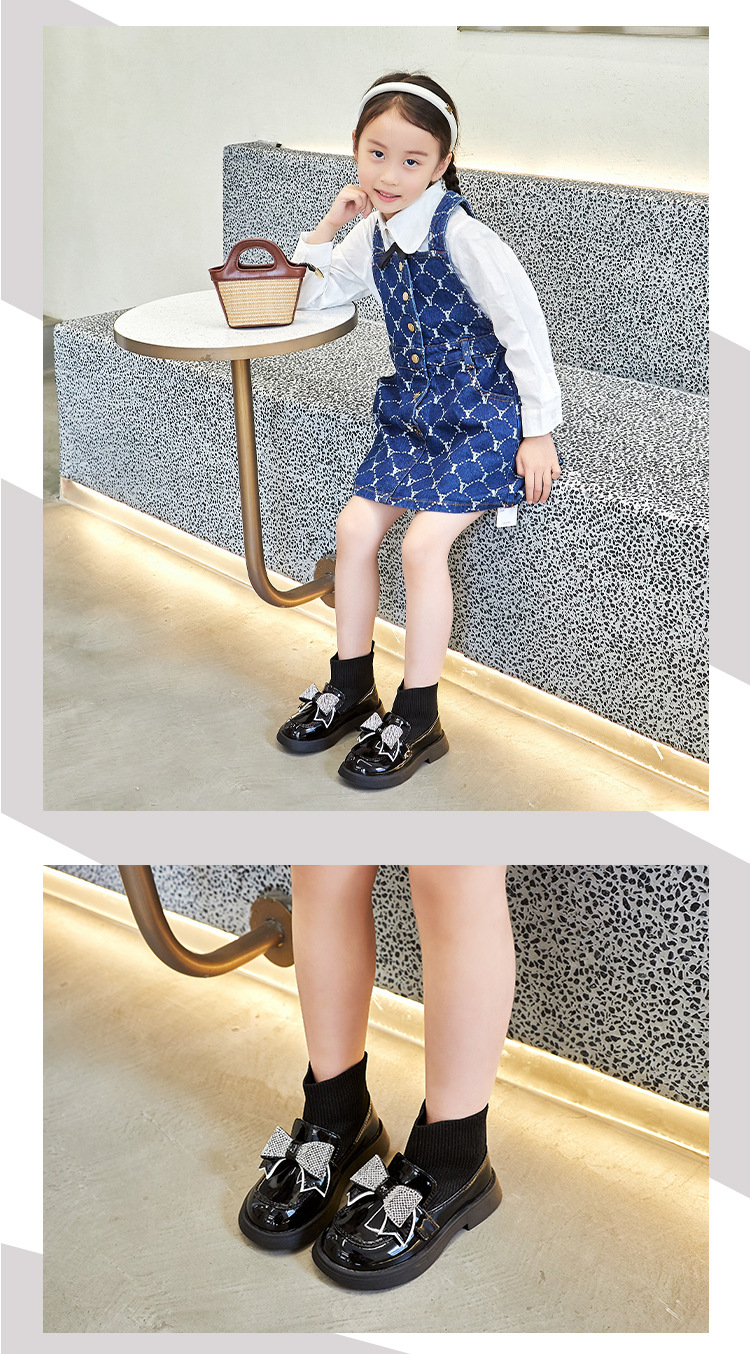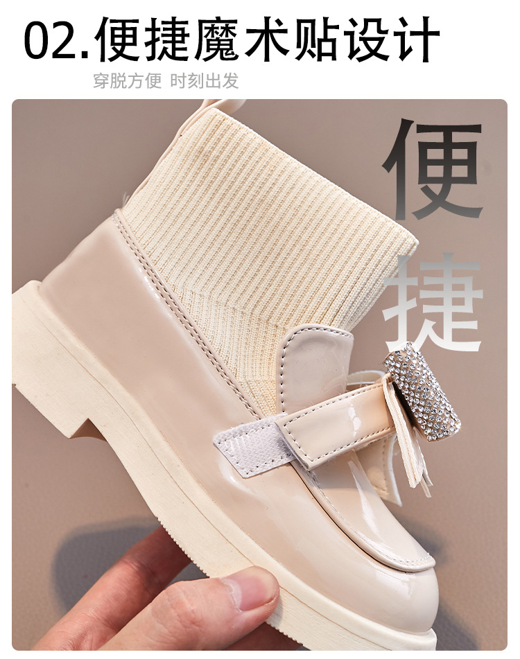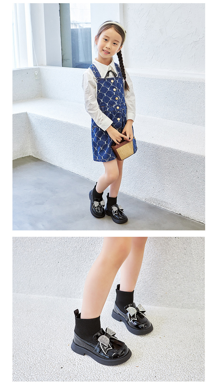 여자 가죽 신발 2025 봄 새로운 여자 싱글 부츠 여자 니트 영국 짧은 부츠 나비 매듭 부츠 어린이 가죽 부츠스토어 가기