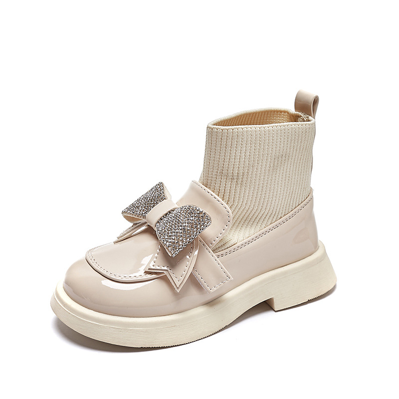여자 가죽 신발 2025 봄 새로운 여자 싱글 부츠 여자 니트 영국 짧은 부츠 나비 매듭 부츠 어린이 가죽 부츠