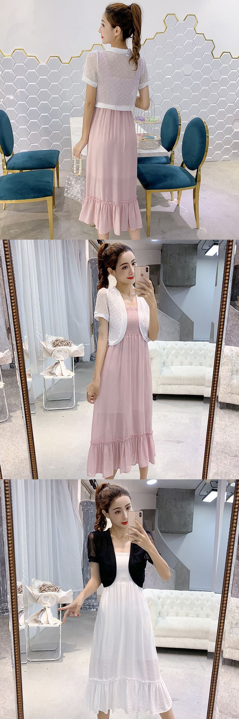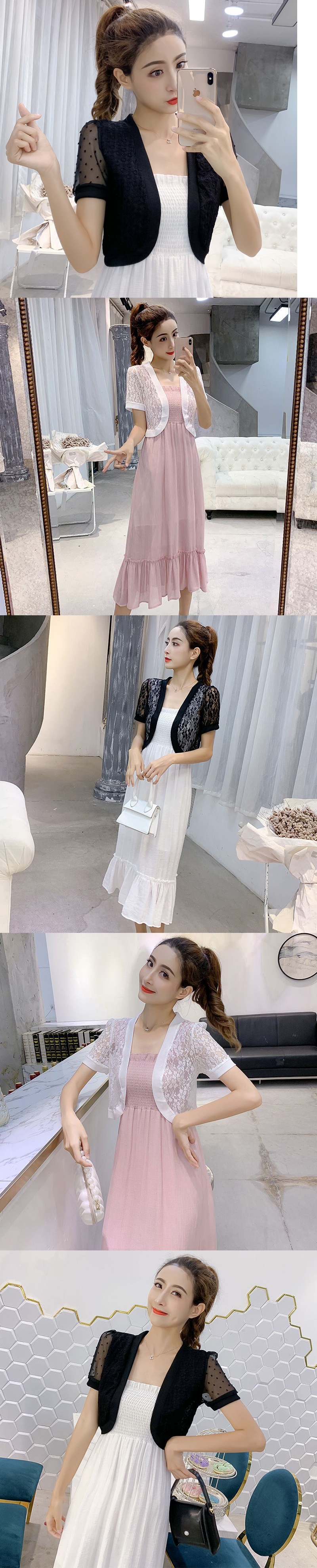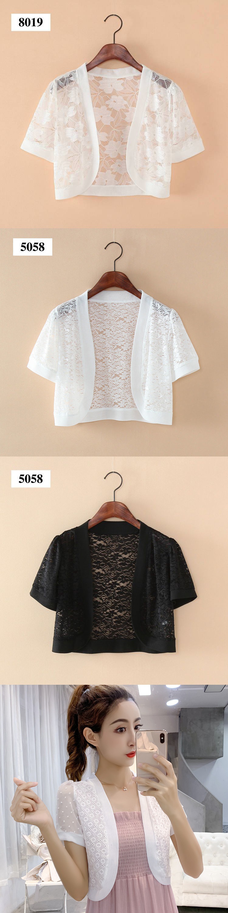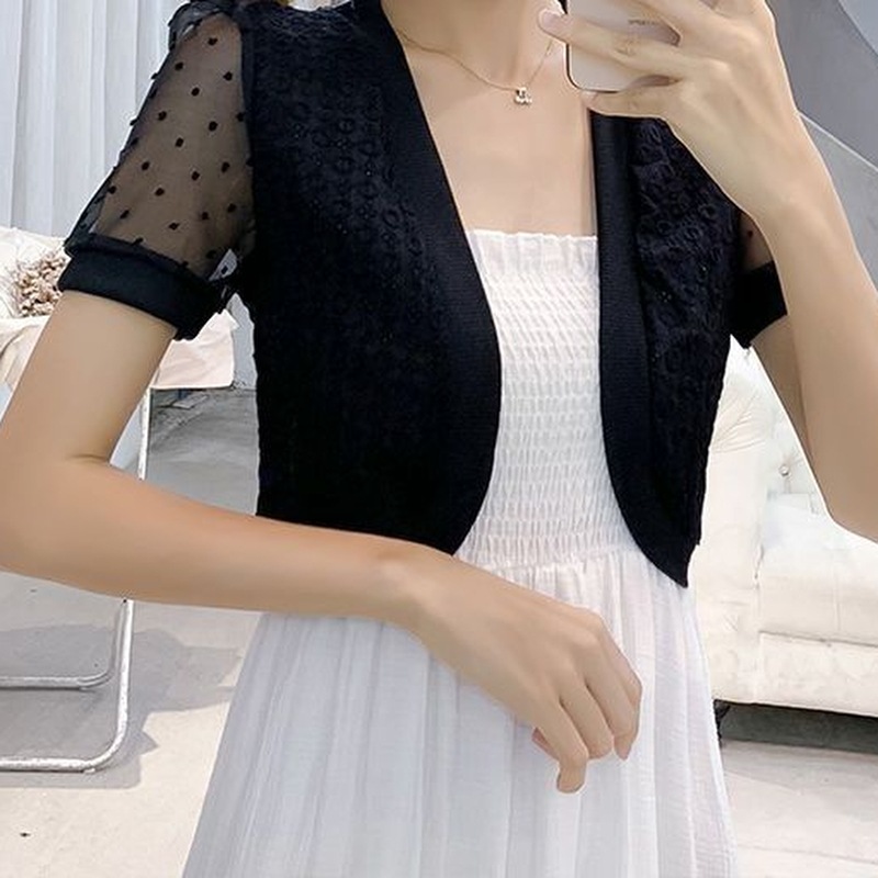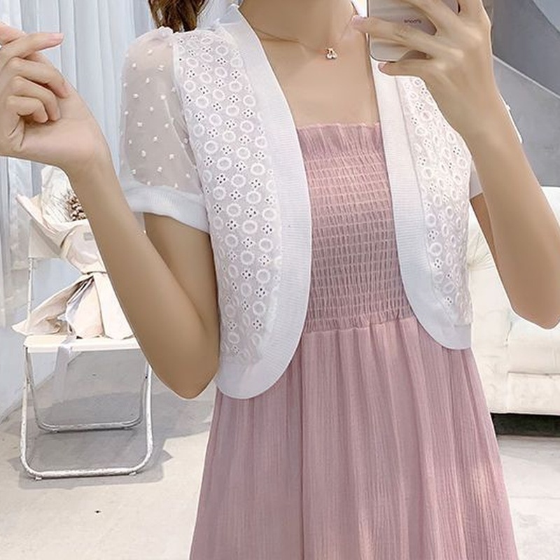 엄선된 패셔너블한 여름 신상 반팔 시폰 숄 레이스 가디건 숏 코트 얇은 스타일로 여성스러운 분위기를 더해줍니다스토어 가기