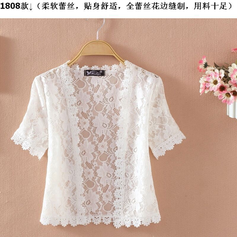 엄선된 패셔너블한 여름 신상 반팔 시폰 숄 레이스 가디건 숏 코트 얇은 스타일로 여성스러운 분위기를 더해줍니다