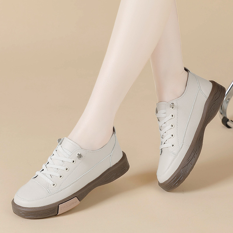 여성 신발 2023 새로운 여름 통기성 가죽 포레스트 검프 슈즈 여성용 플랫 모든 매치 폭발 작은 흰색 Desang 신발스토어 가기