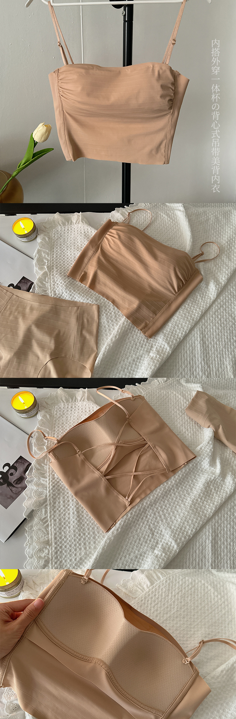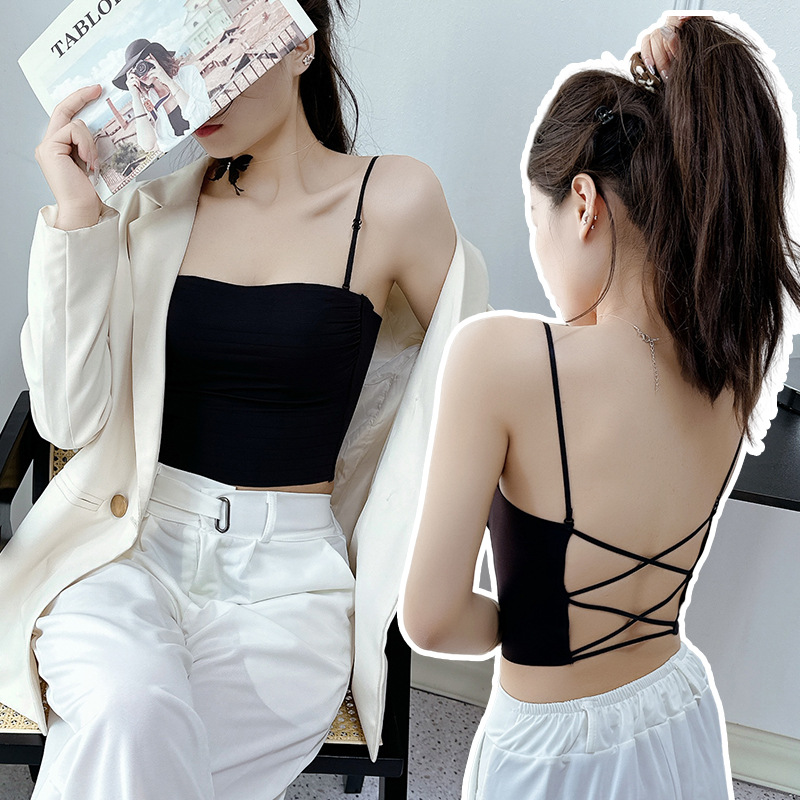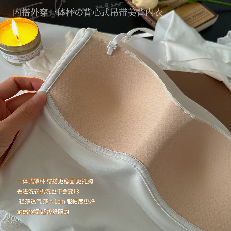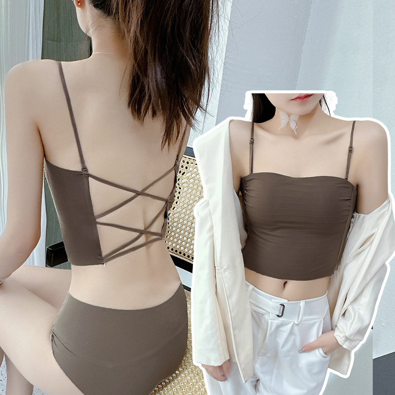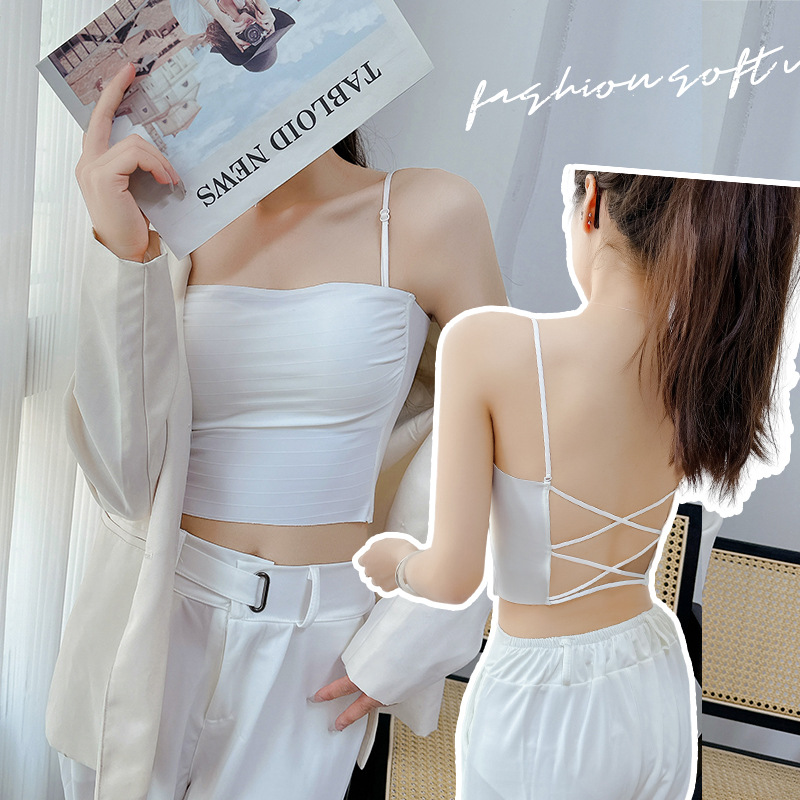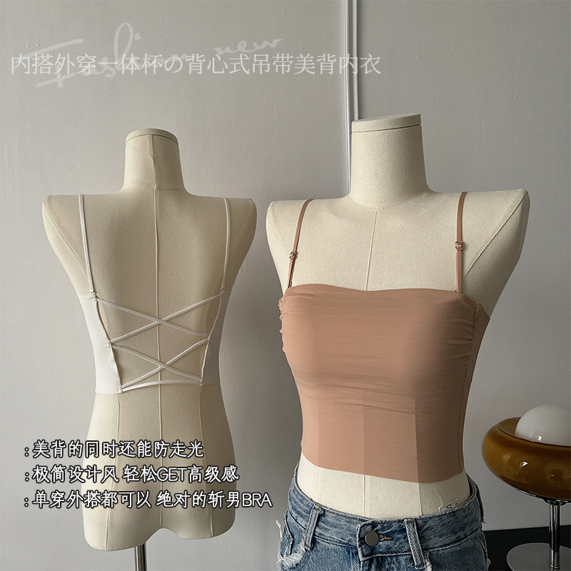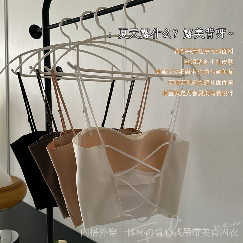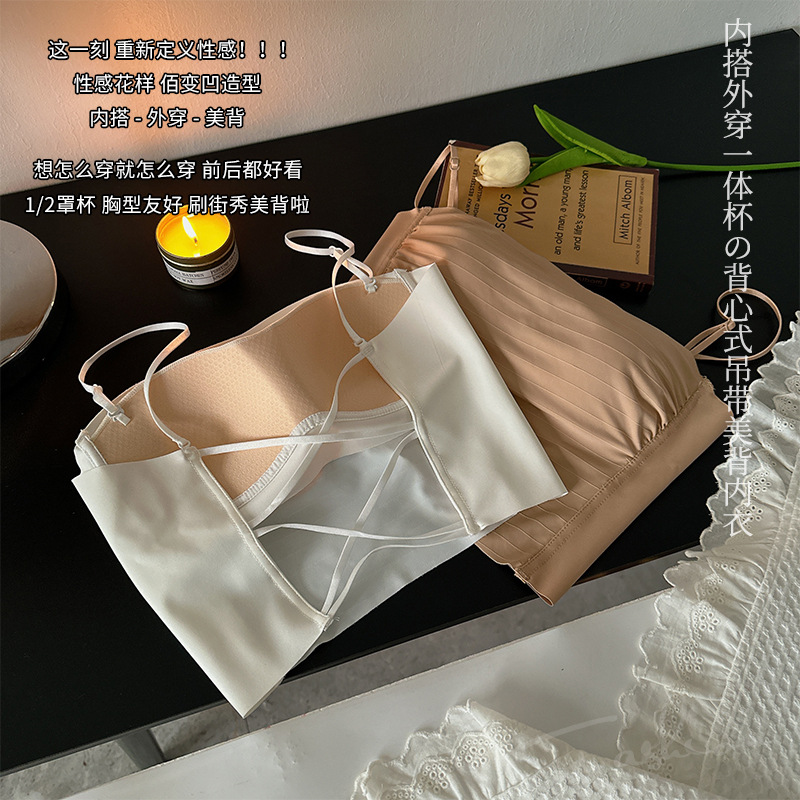 핫걸 백리스 얇은 캐미솔 스타일 심리스 속옷 여름 얇은 여성 푸시업 작은 가슴 아름다운 등 섹시한 브라스토어 가기