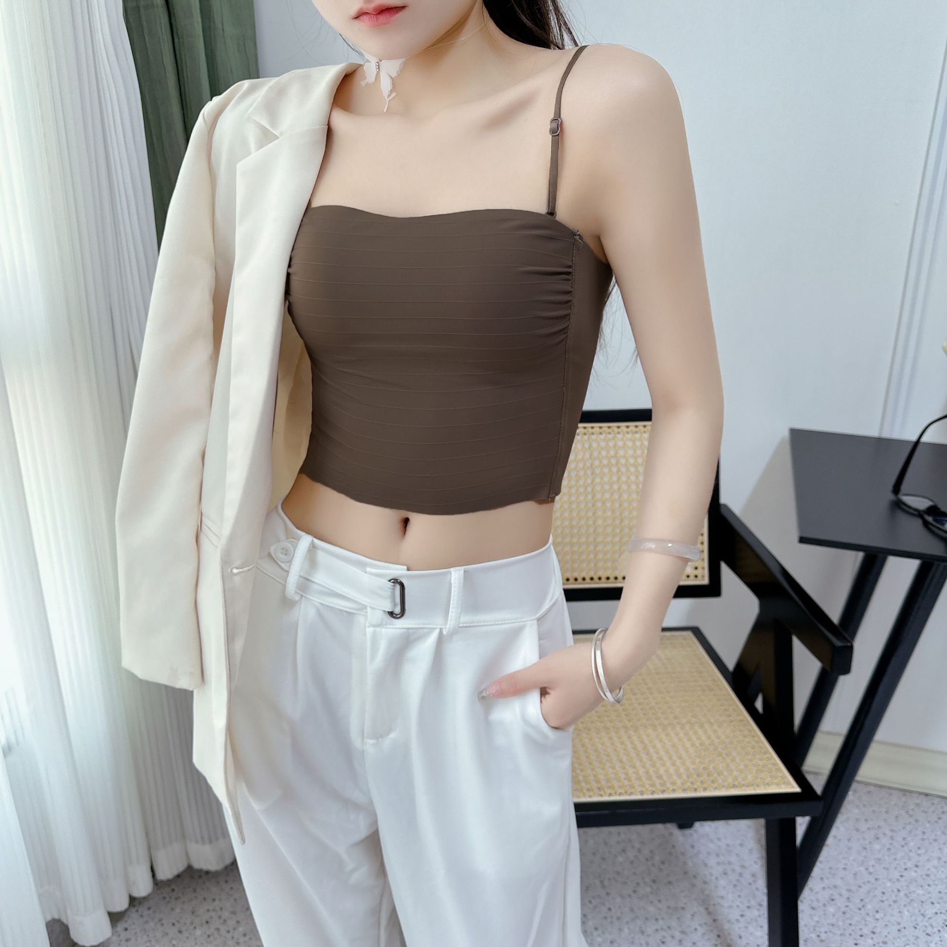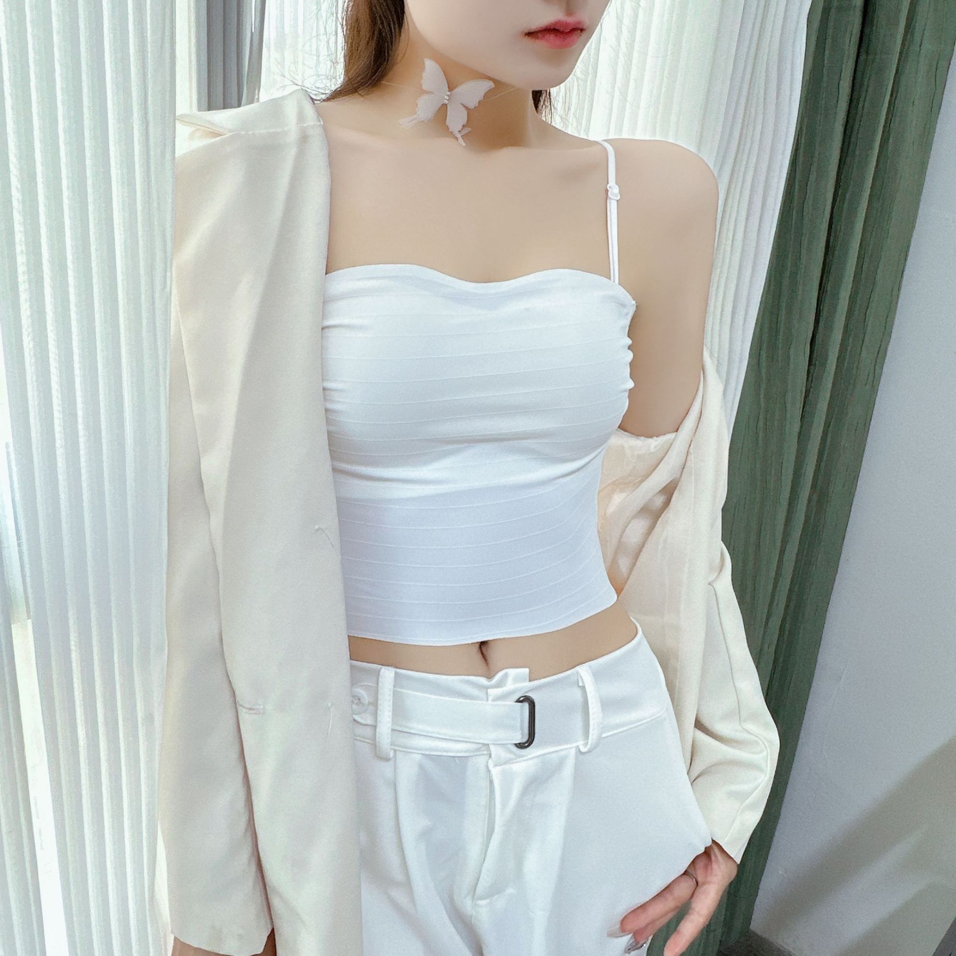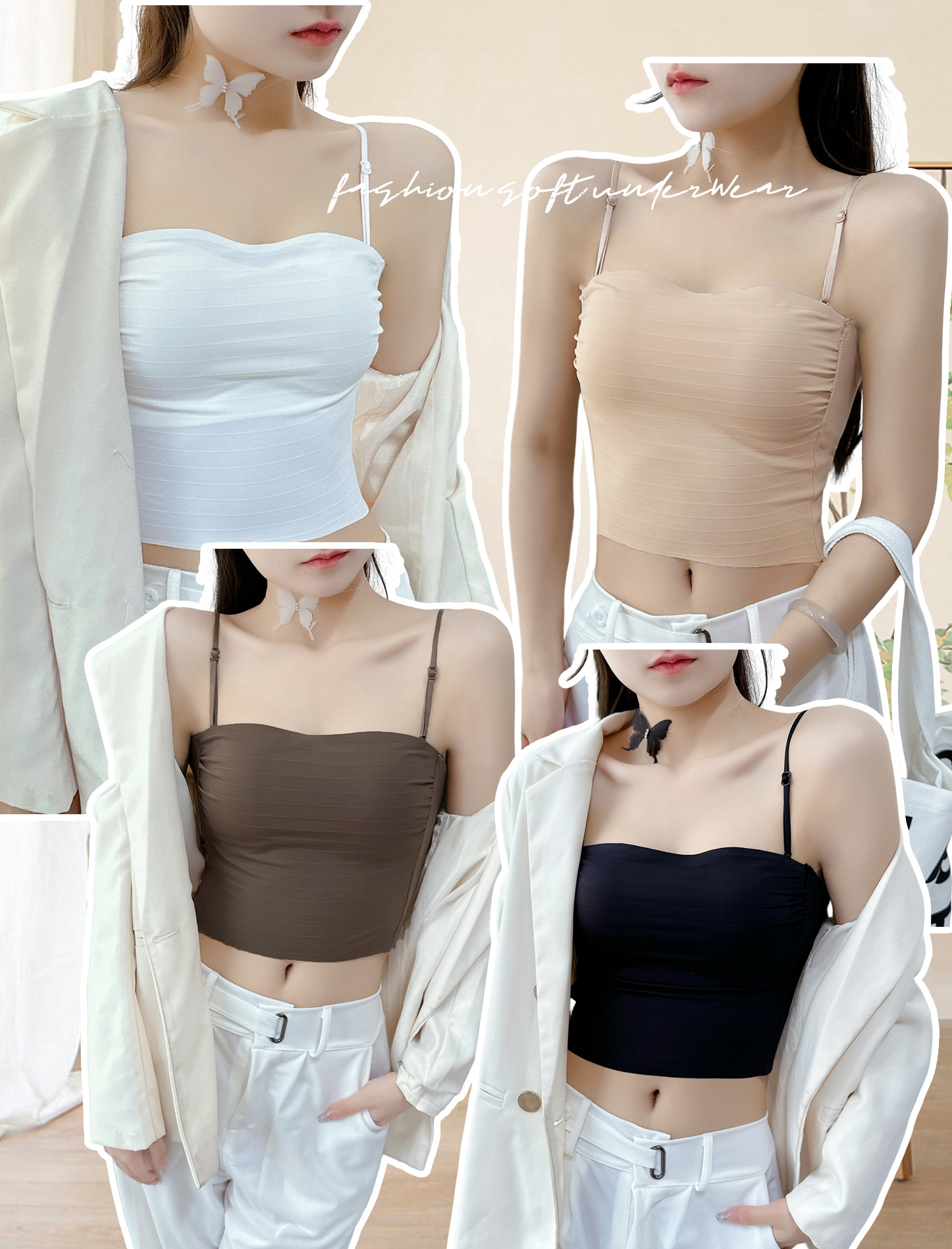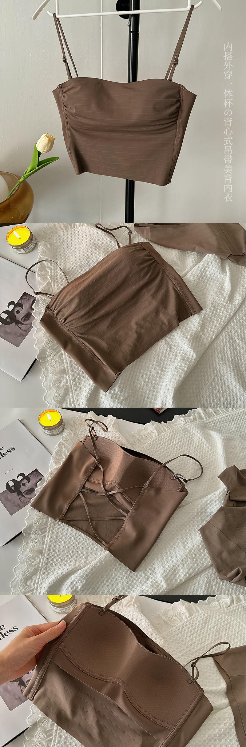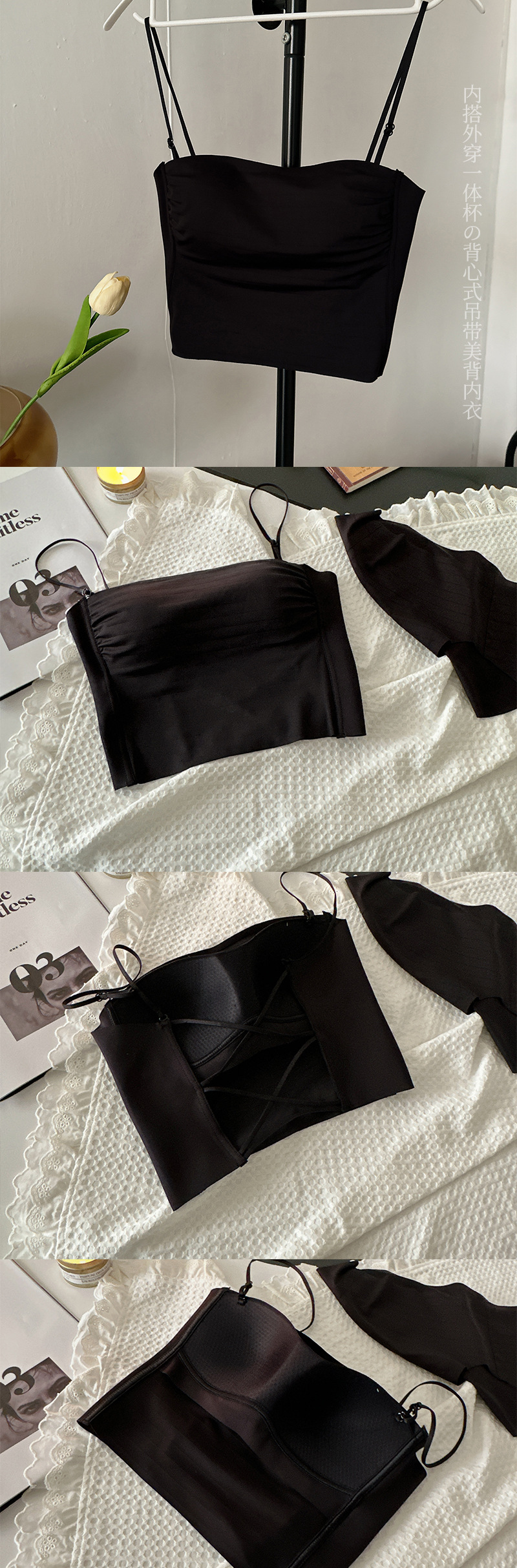 핫걸 백리스 얇은 캐미솔 스타일 심리스 속옷 여름 얇은 여성 푸시업 작은 가슴 아름다운 등 섹시한 브라스토어 가기