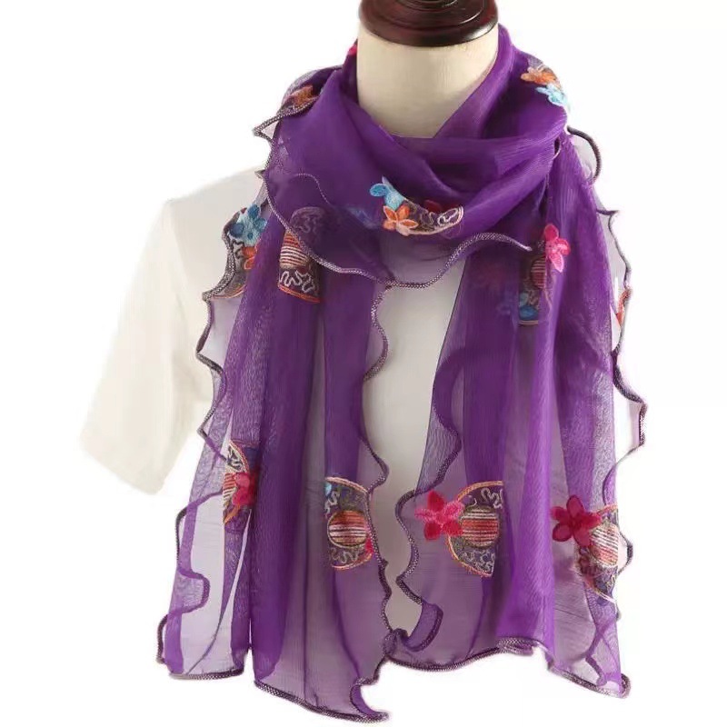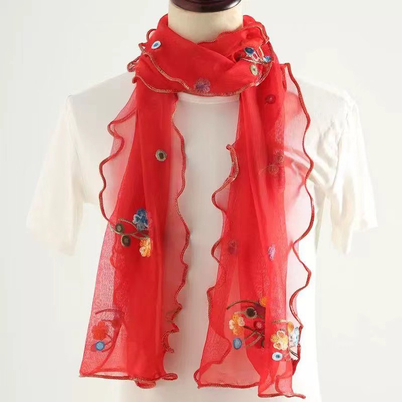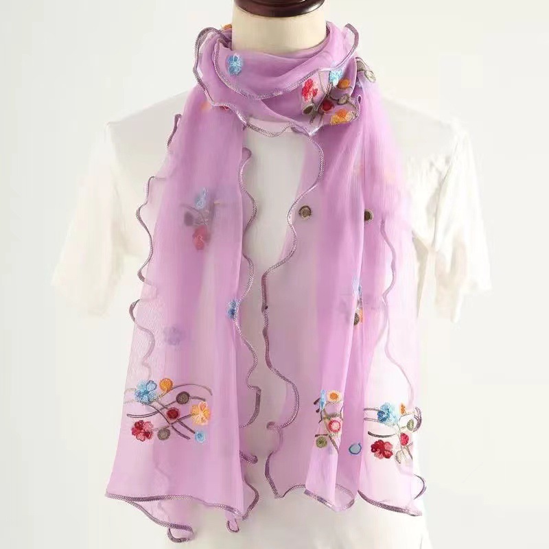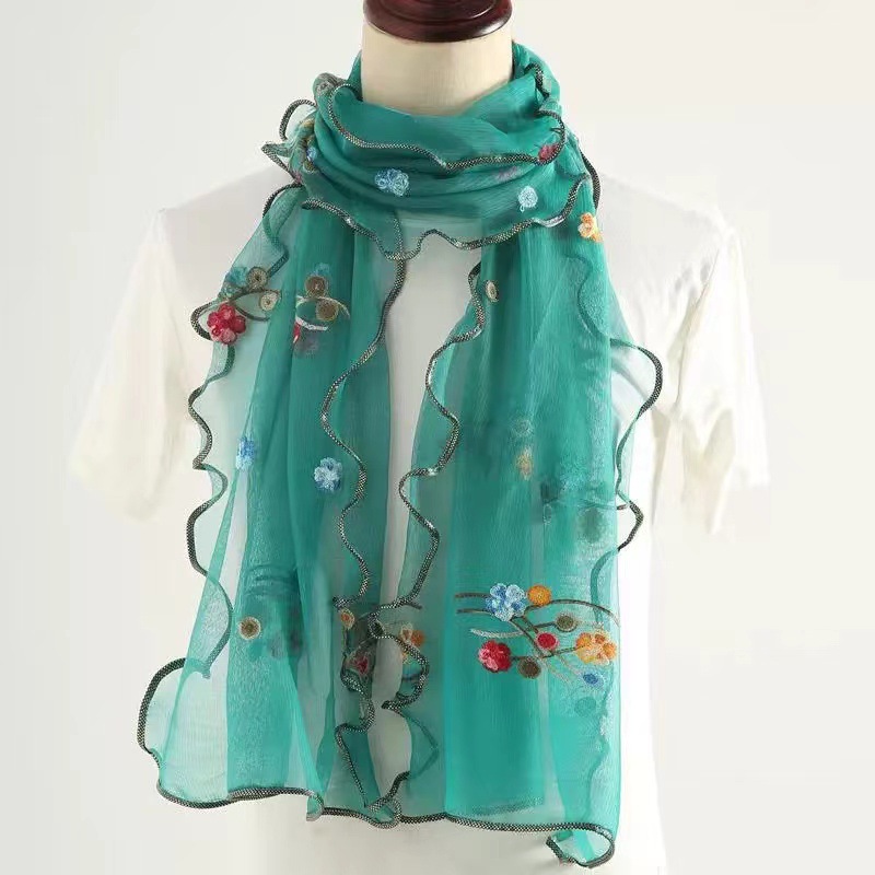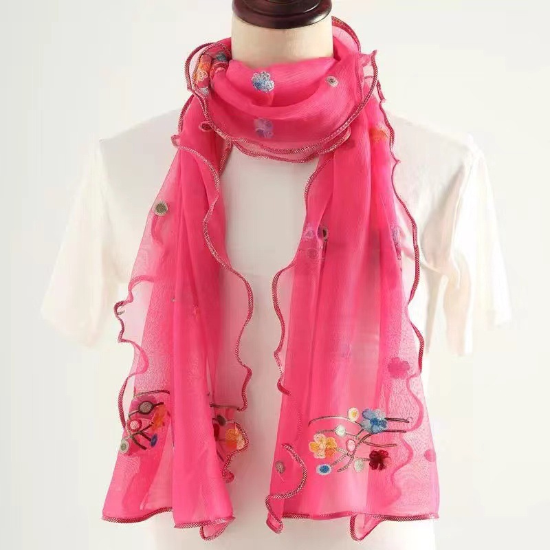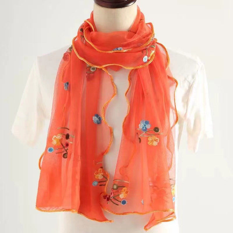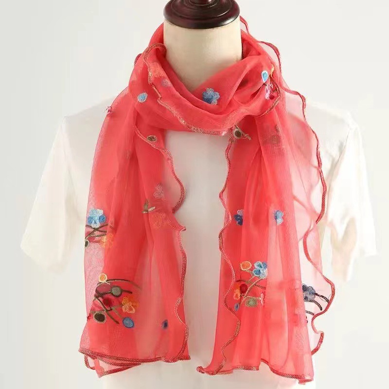 자수 매화 실크 스카프 여성의 가을과 겨울 따뜻한 패션 모든 경기 봄과 가을 한국식 얇은 긴 메쉬 테두리 스카프