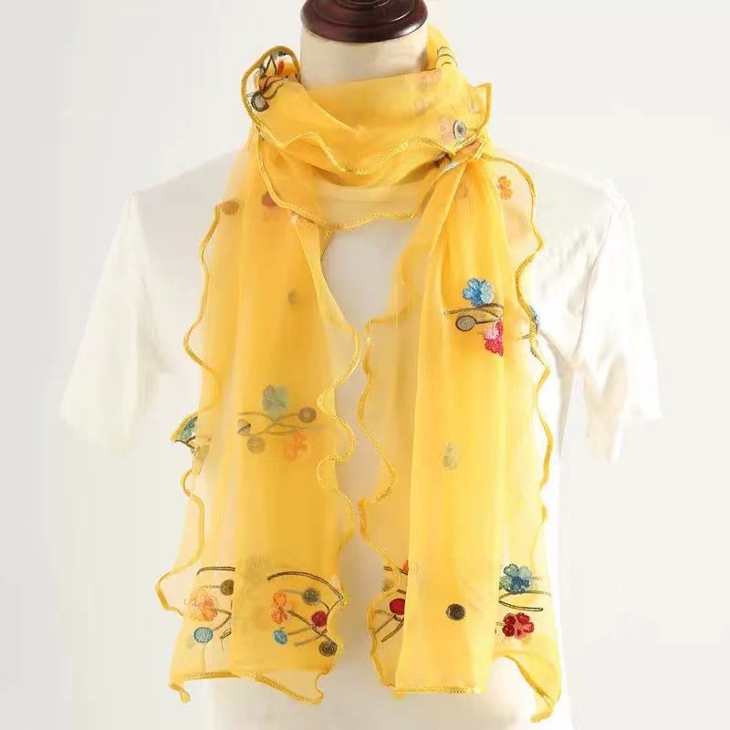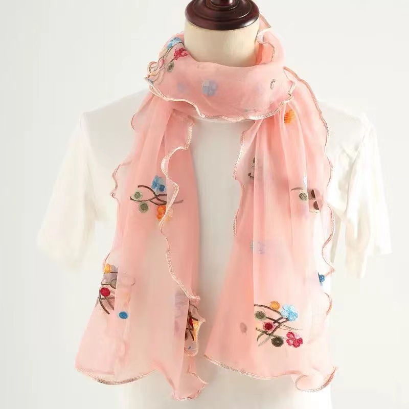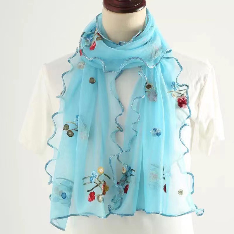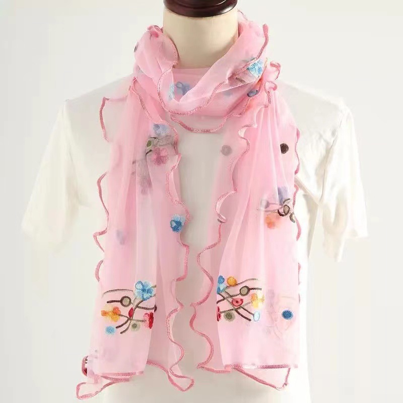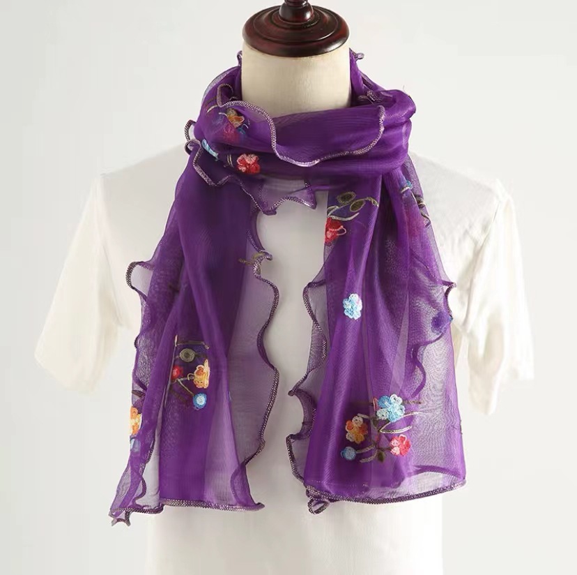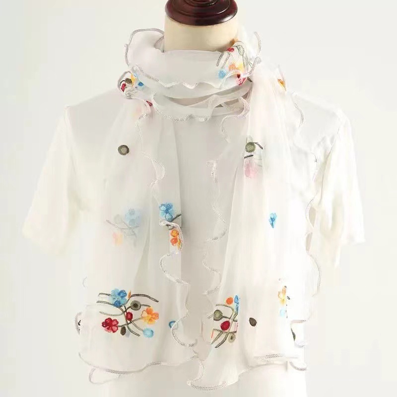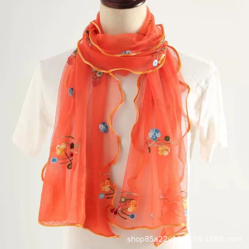 자수 매화 실크 스카프 여성의 가을과 겨울 따뜻한 패션 모든 경기 봄과 가을 한국식 얇은 긴 메쉬 테두리 스카프스토어 가기