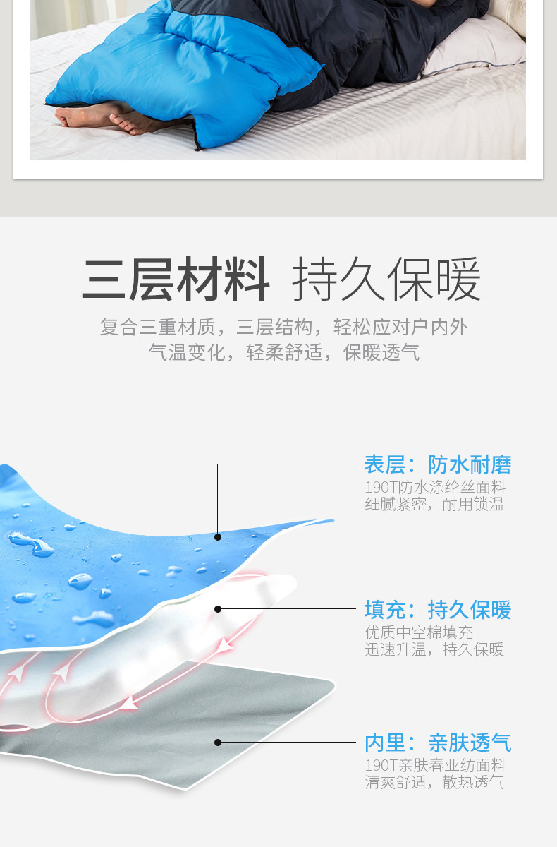 수천 개의 화려한 파도 야외 캠핑 침낭 1800g 두꺼운 속이 빈 면 기계 빨 침낭 야외 성인 침낭