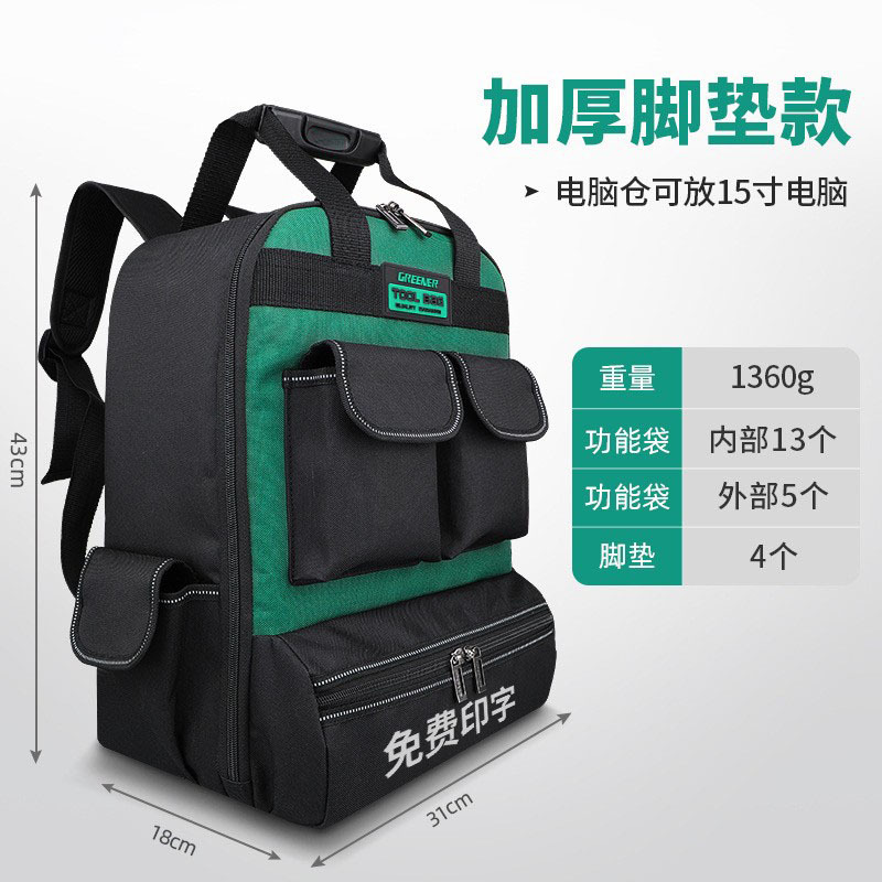 그린우드 배낭 도구 가방 강하고 튼튼한 전기 배낭 캔버스 보관 가방 두꺼운 하드웨어 다기능 유지 보수 상자