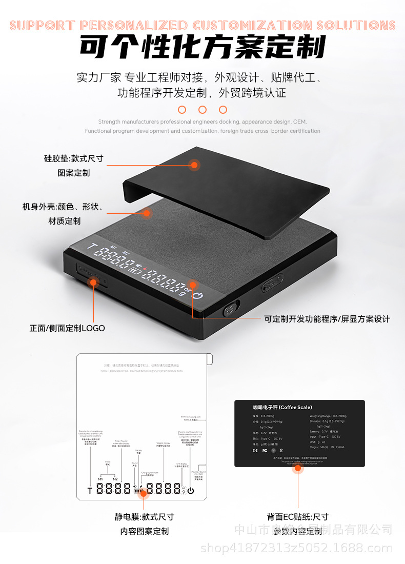 이탈리아식 핸드드립 커피 저울 다기능 스마트 그램 저울 타이머 기능 포함 방수 패드 LED 화면 커피 전자 저울