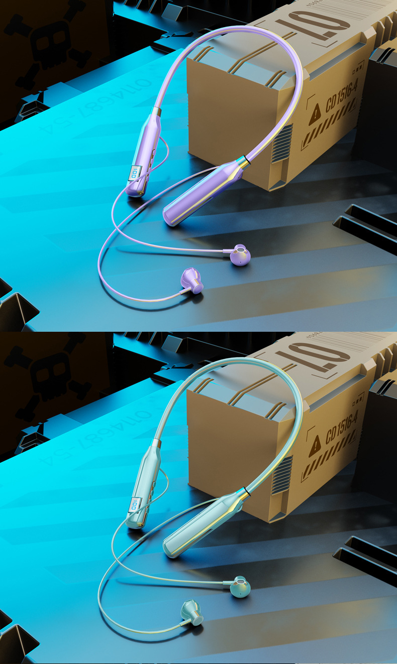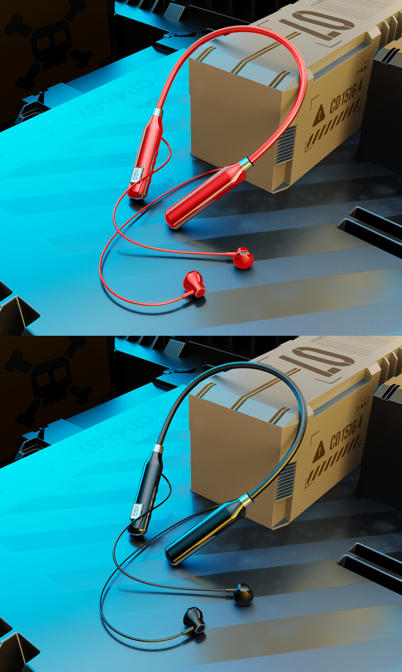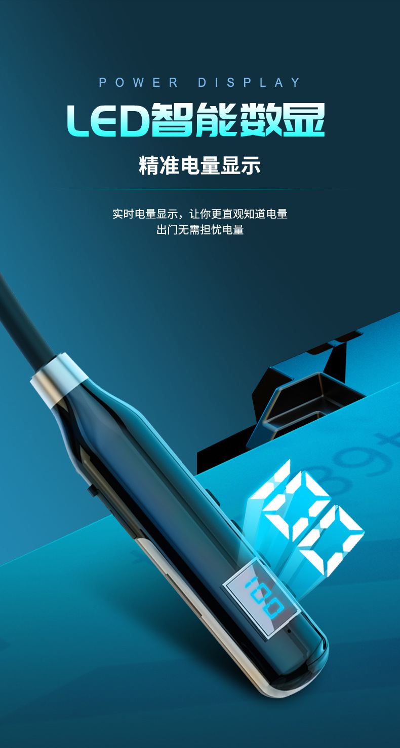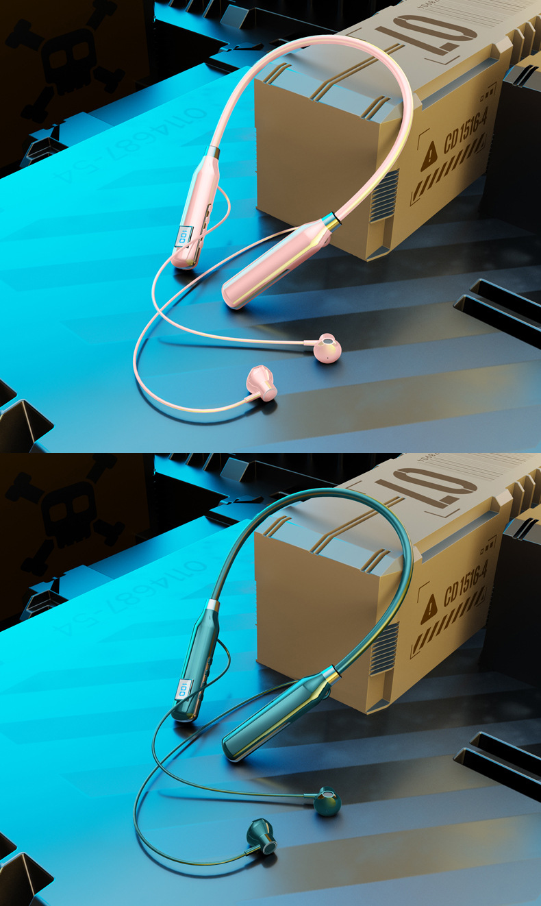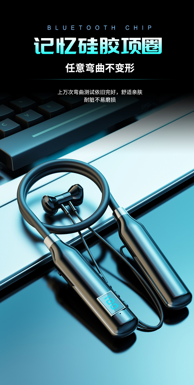 크로스 보더 블루투스 새로운 헤드셋 인 이어 스포츠 디지털 디스플레이가있는 무선 교수형 목 블루투스 헤드셋