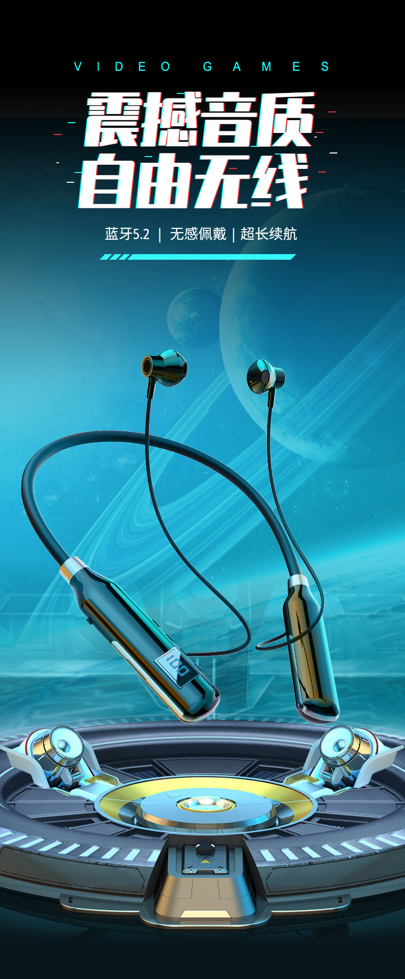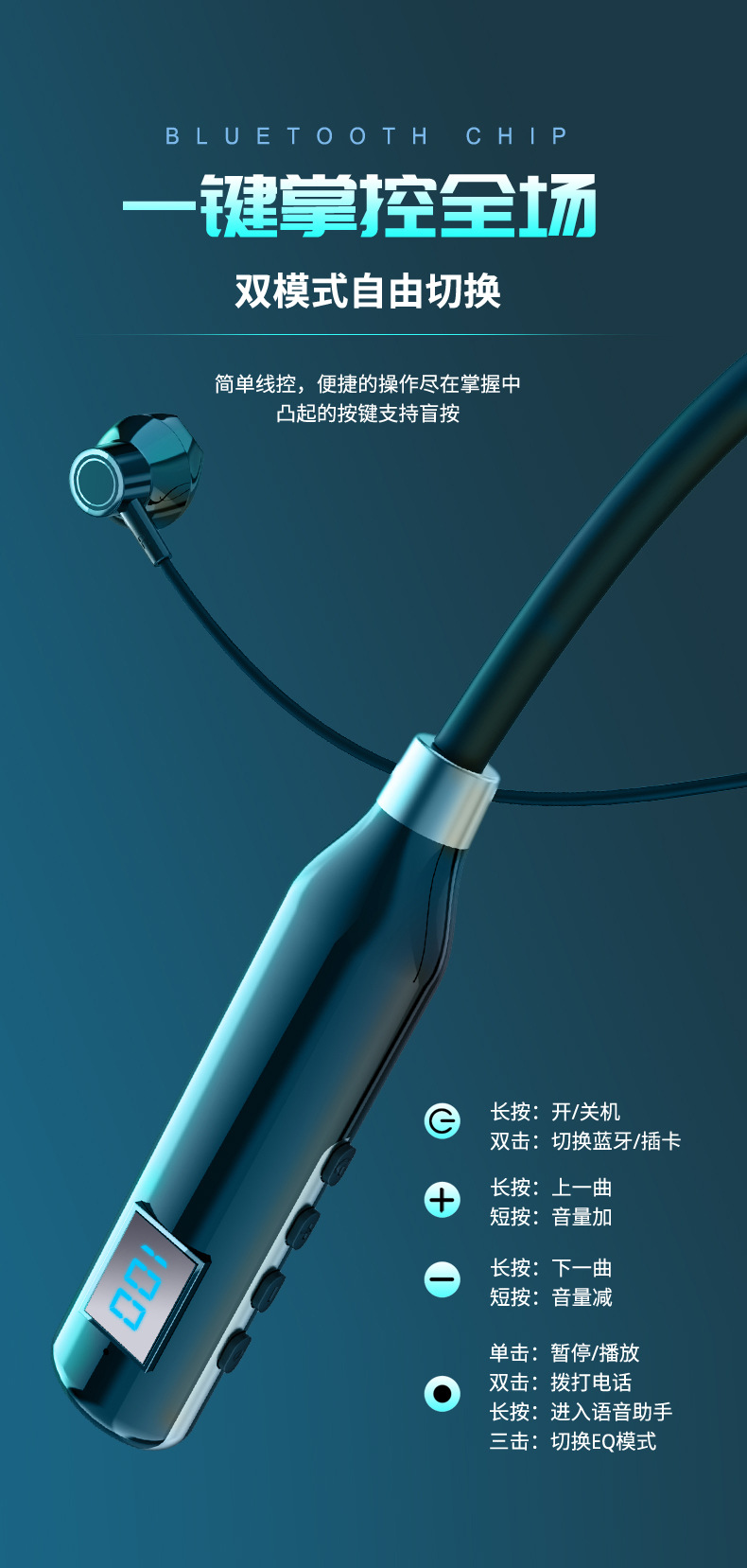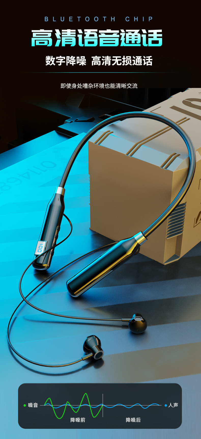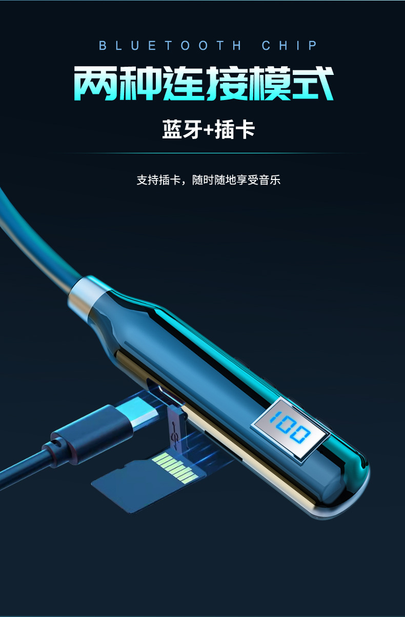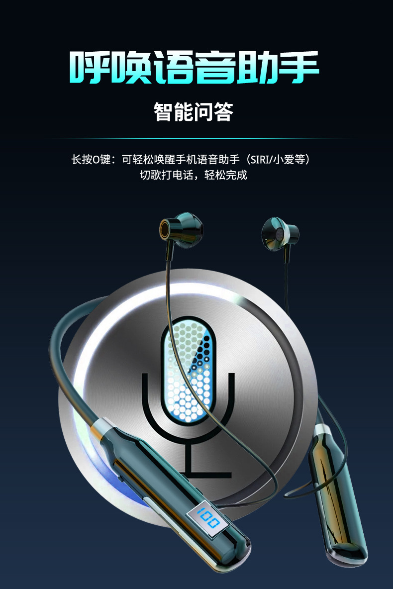 크로스 보더 블루투스 새로운 헤드셋 인 이어 스포츠 디지털 디스플레이가있는 무선 교수형 목 블루투스 헤드셋