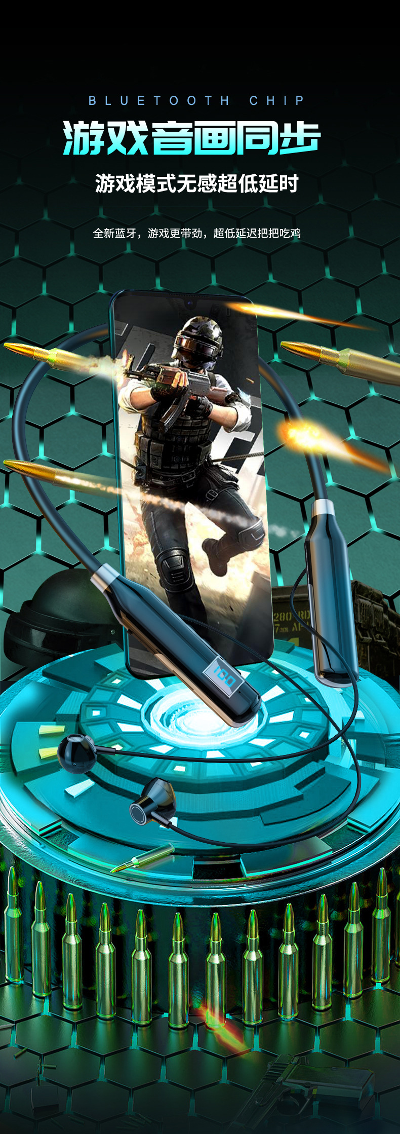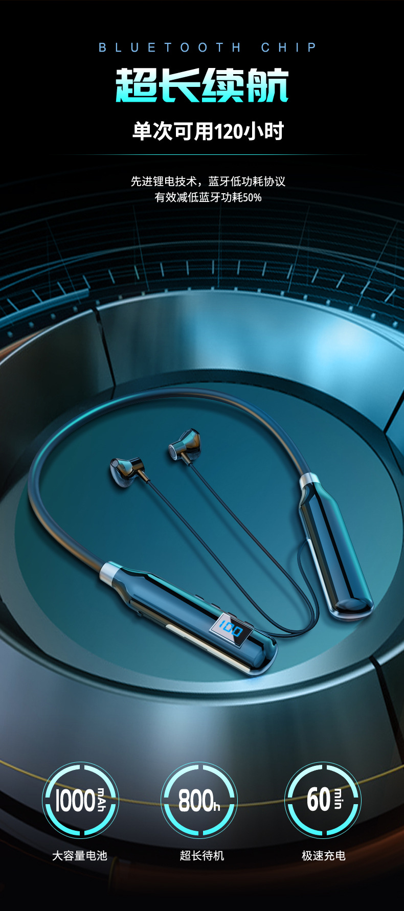 크로스 보더 블루투스 새로운 헤드셋 인 이어 스포츠 디지털 디스플레이가있는 무선 교수형 목 블루투스 헤드셋스토어 가기