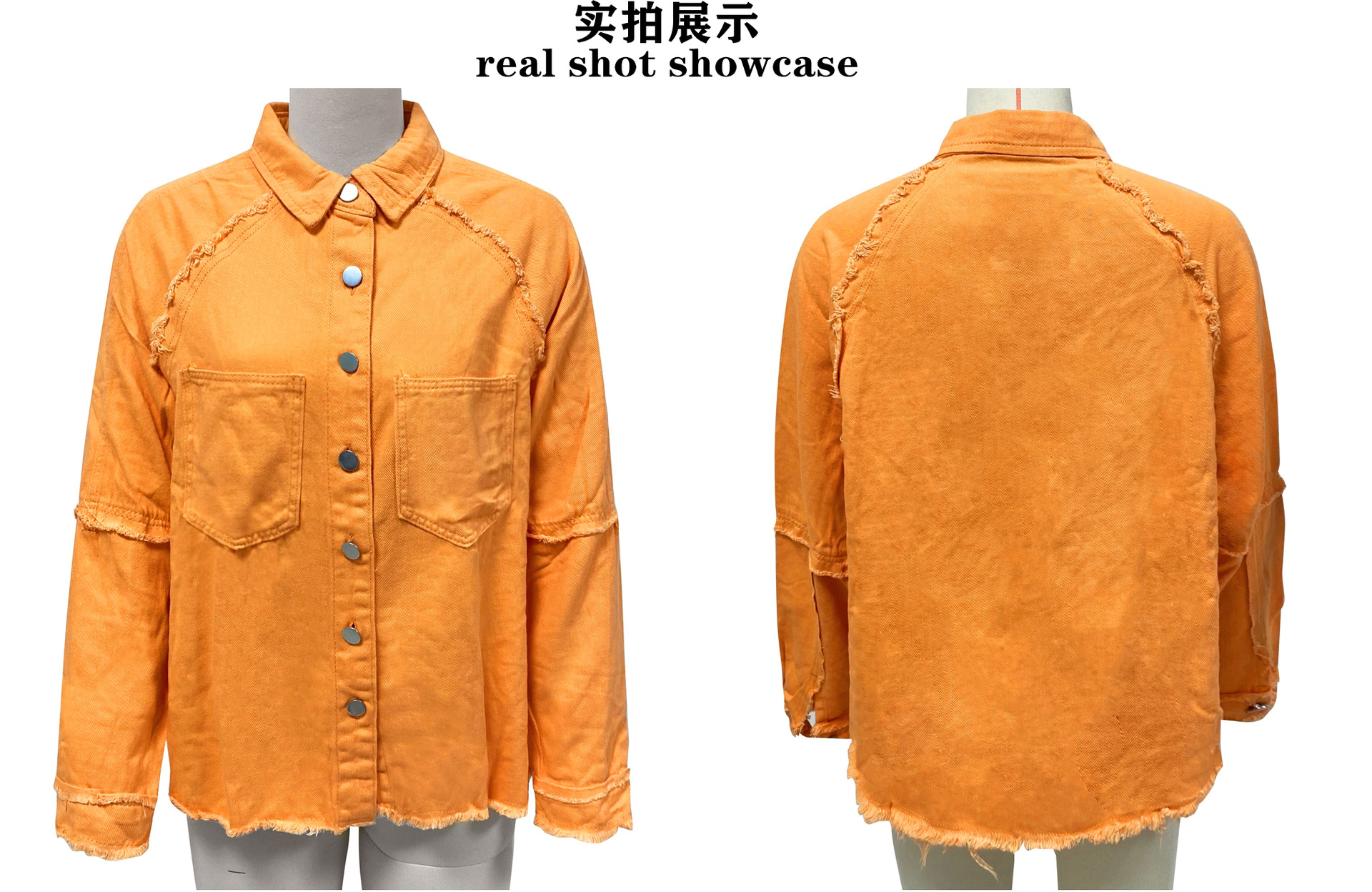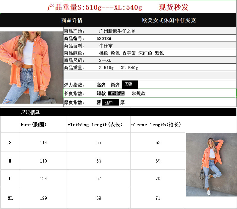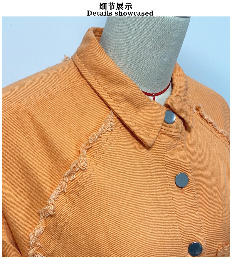 공장 직접 판매 2025 가을 유럽과 미국의 여성용 긴팔 데님 재킷 워싱 로우 에지 중간 길이 루즈 재킷 재고 있음