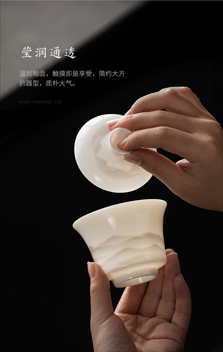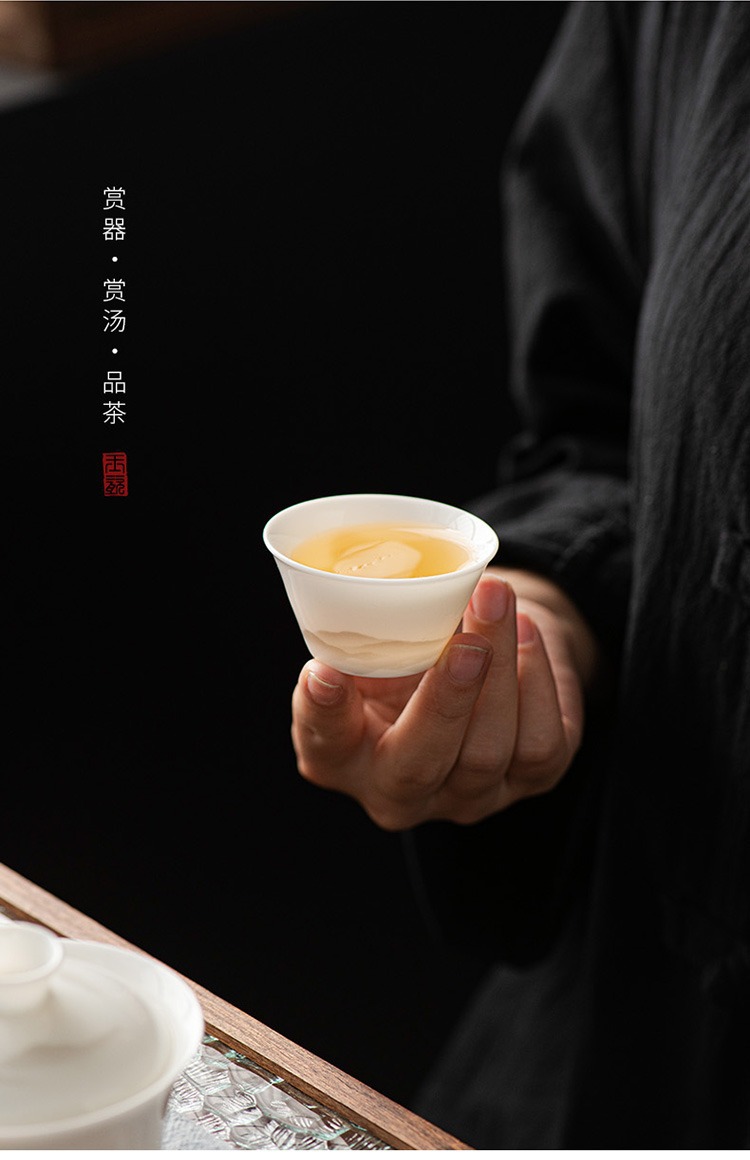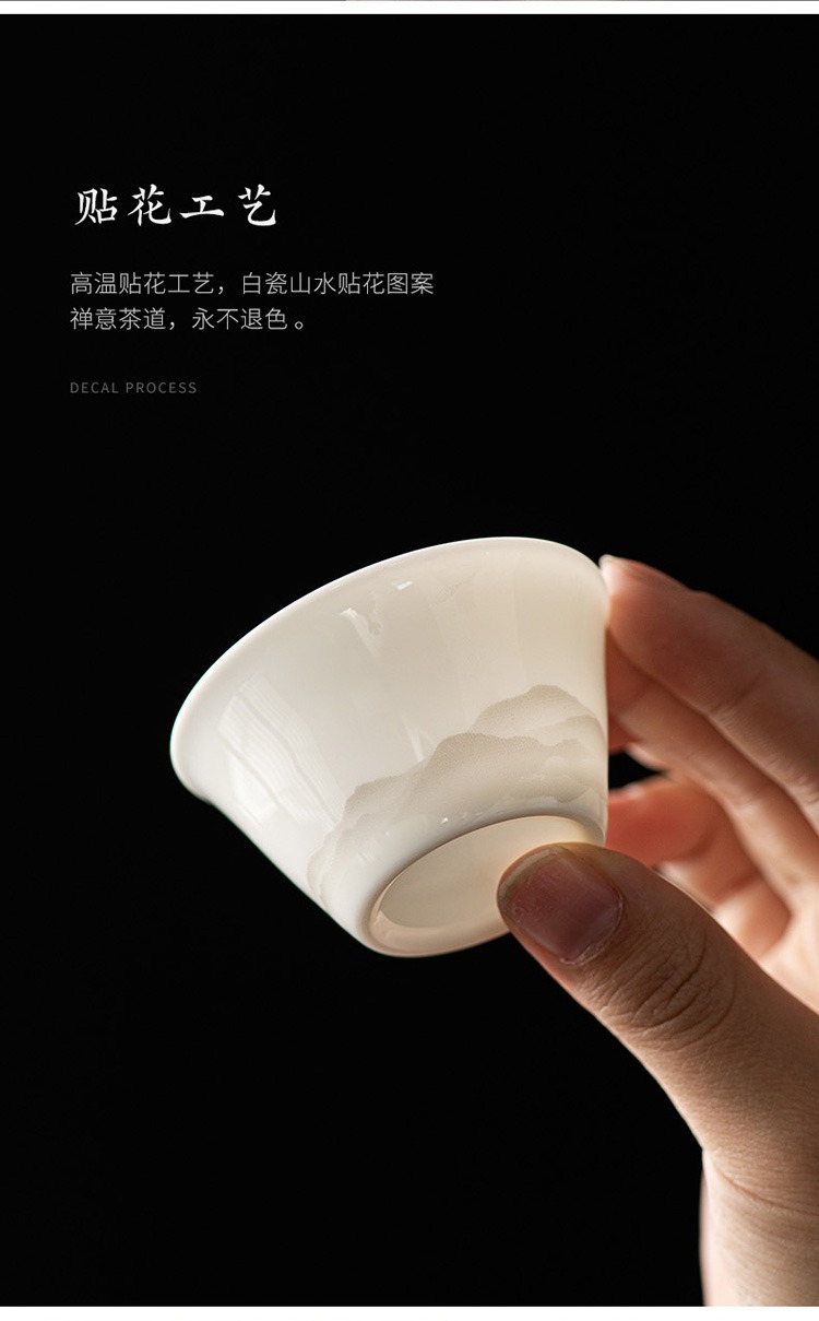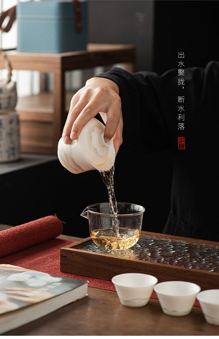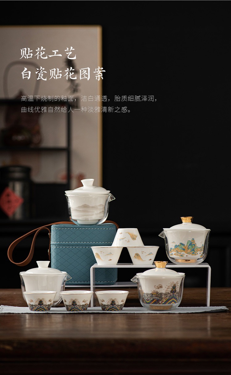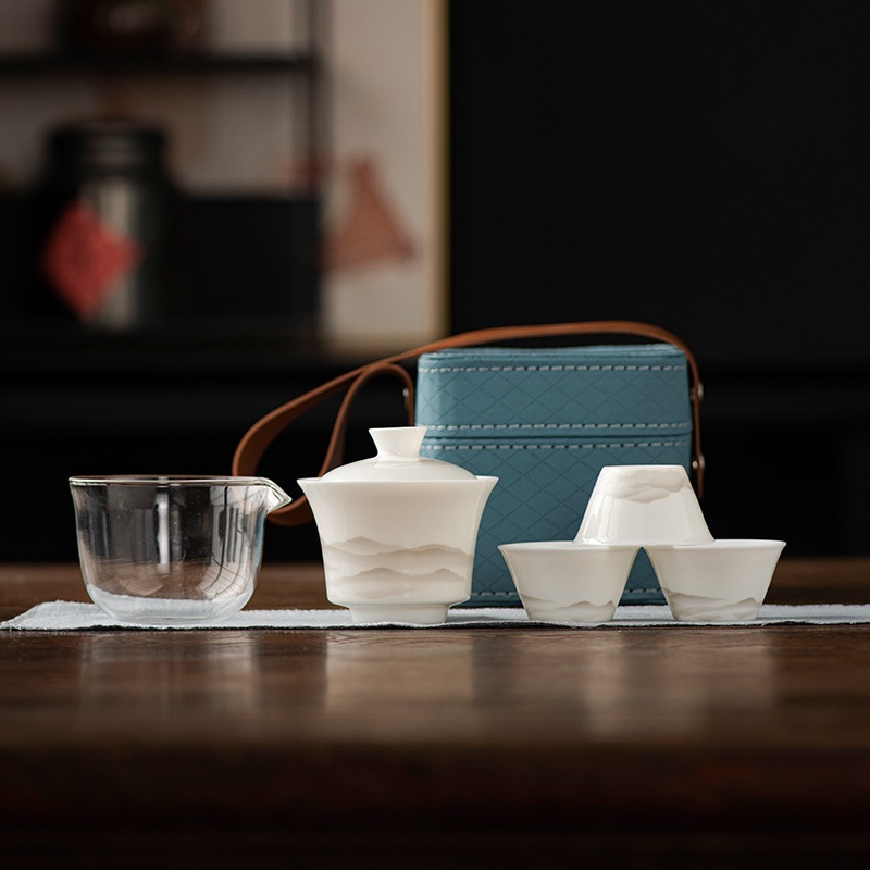 잉크 풍경 흰색 도자기 익스프레스 컵 한 냄비 세 컵 여행 차 세트 가죽 상자 휴대용 야외 커버 그릇 차 세트 세트스토어 가기