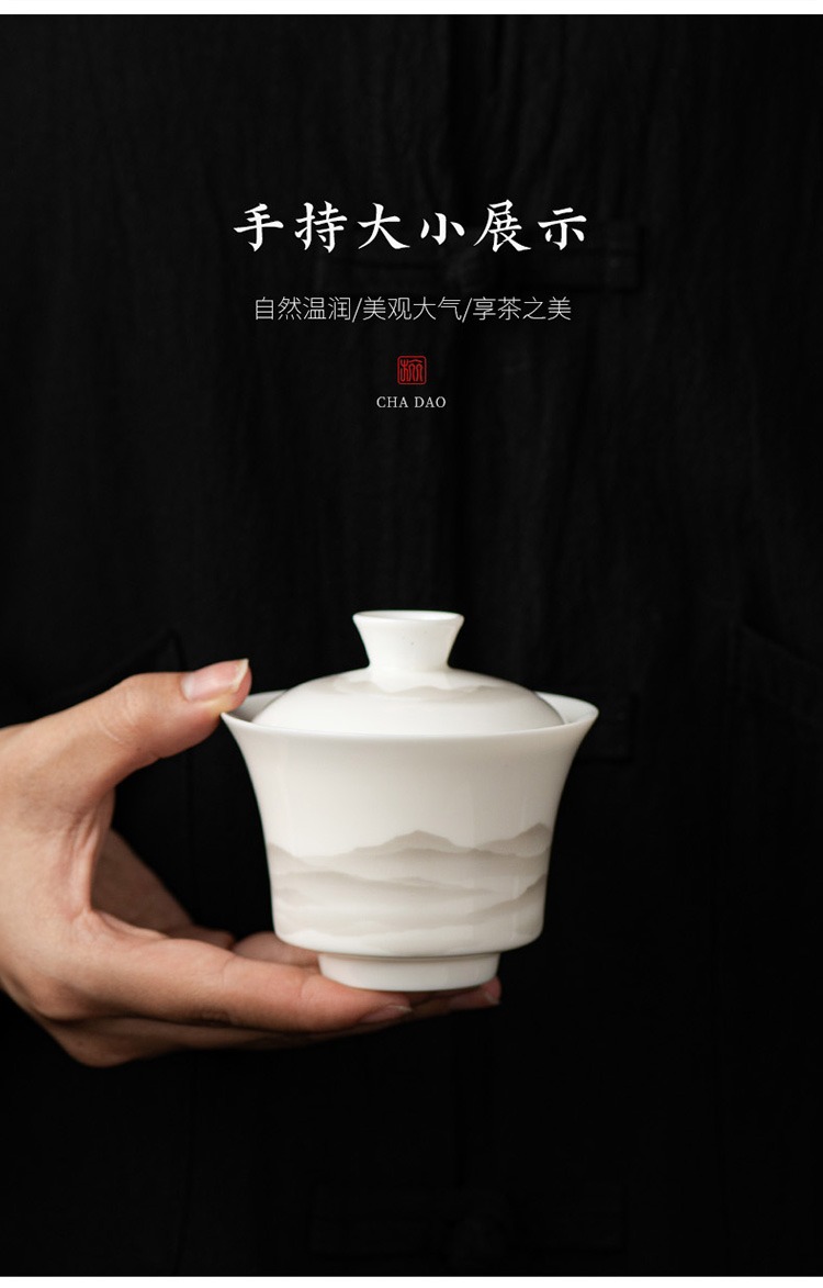 잉크 풍경 흰색 도자기 익스프레스 컵 한 냄비 세 컵 여행 차 세트 가죽 상자 휴대용 야외 커버 그릇 차 세트 세트