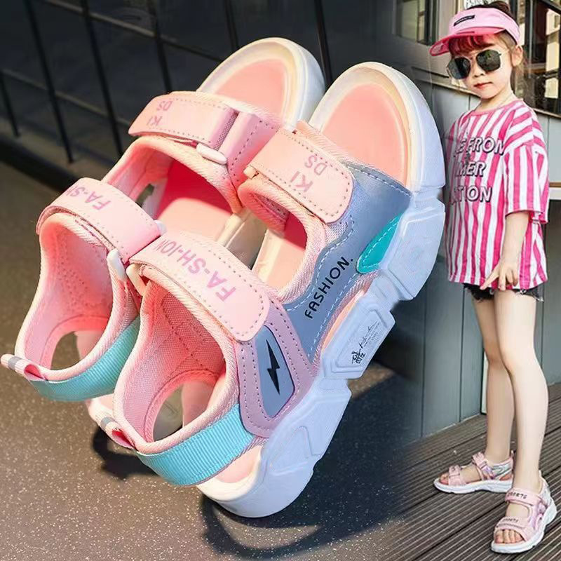 소녀 샌들 소년 샌들 비치 신발 2024 여름 새로운 어린이 공주 신발 큰 아이들과 소녀들을위한 슈퍼 라이트