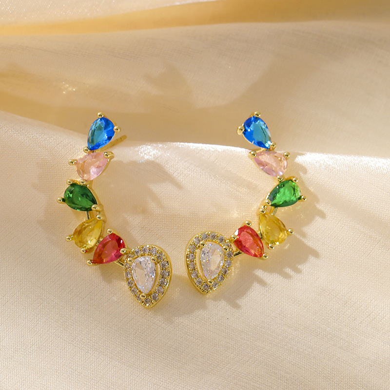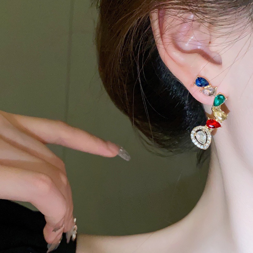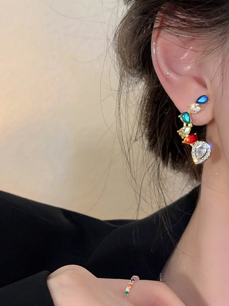 [구리 + 지르콘] 물방울 컬러 다이아몬드 귀걸이 하이 센스 틈새 디자인 라이트 럭셔리 귀걸이 여성용 2023 New