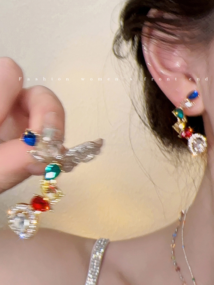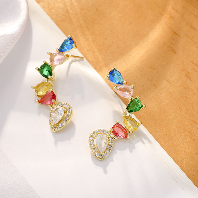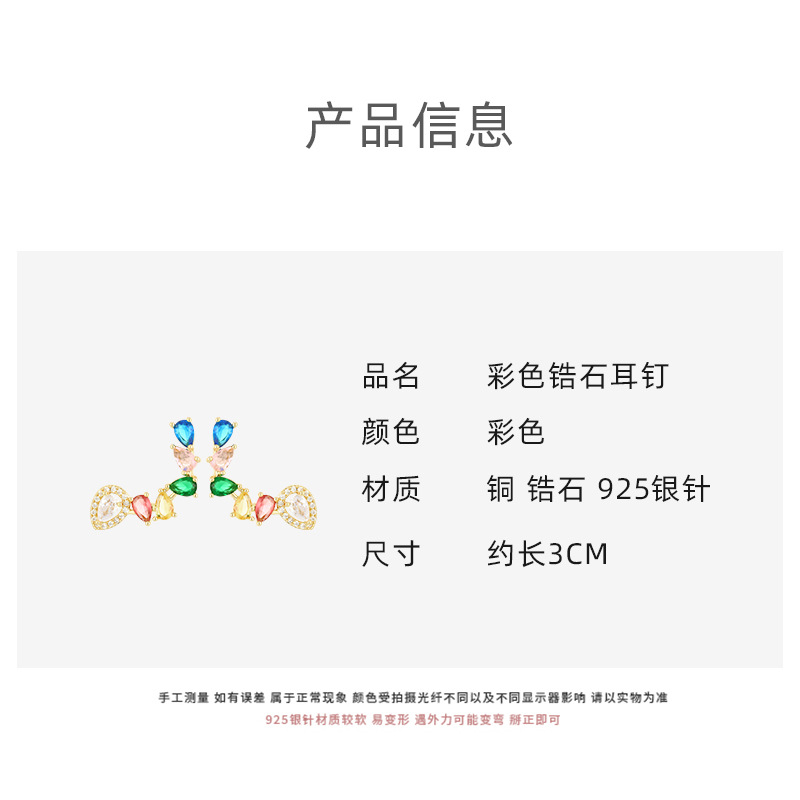 [구리 + 지르콘] 물방울 컬러 다이아몬드 귀걸이 하이 센스 틈새 디자인 라이트 럭셔리 귀걸이 여성용 2023 New스토어 가기