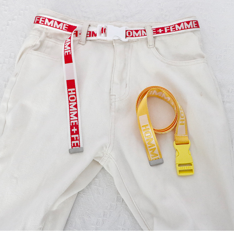 자카드 편지 독특한 캔버스 어린이 벨트 간단한 버클 색상 트렌디 장식 여성 스커트 외부 바지 벨트 여성