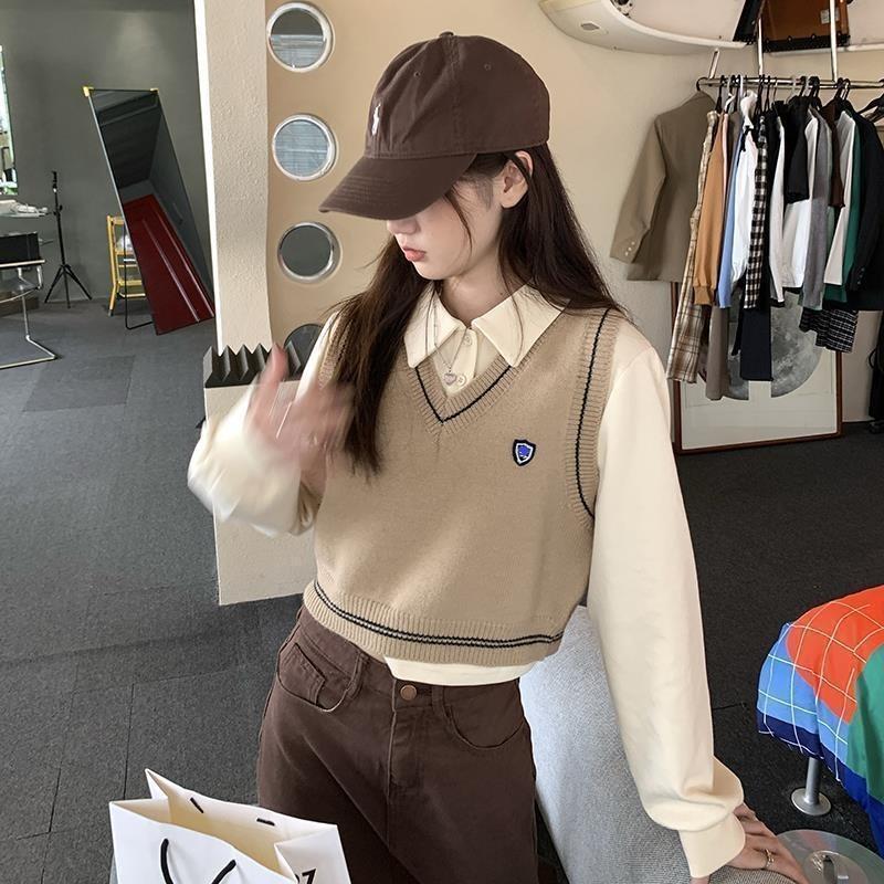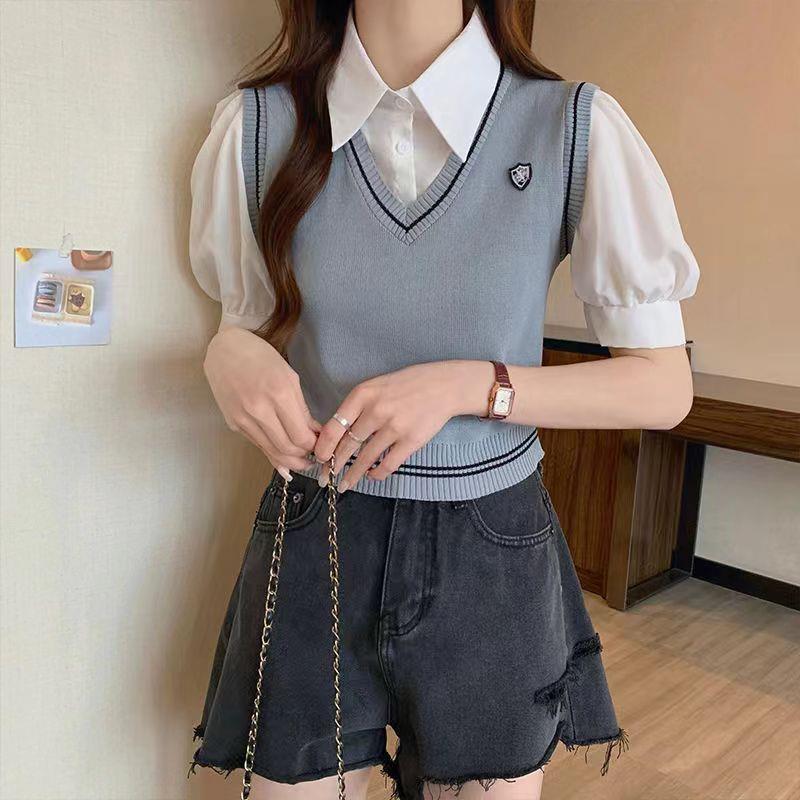 패션 2023 여름 일본식 일본과 한국 스타일 캐주얼 여성 조끼 아이스 쿨 실크 풀오버 V-넥 슬림 핏스토어 가기